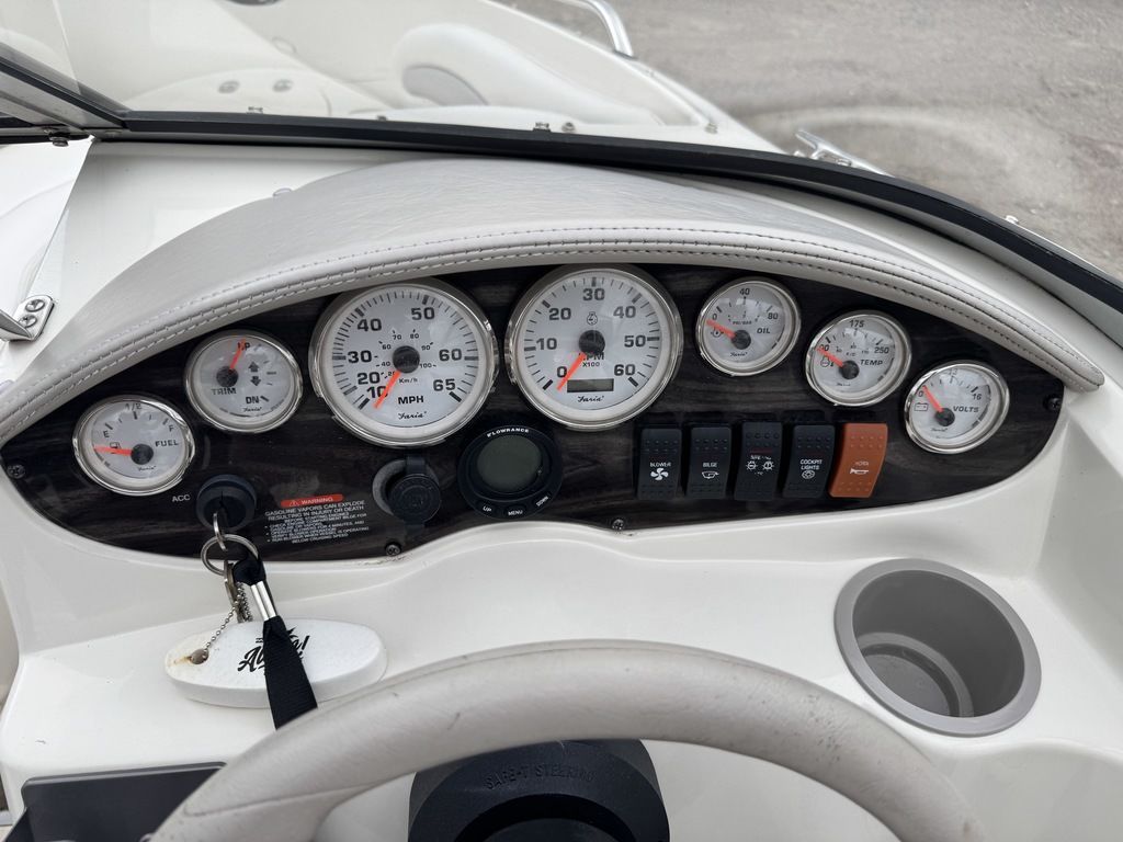 jump seats. The helm features a Tachometer, Speedometer, Fuel, Oil Pressure,