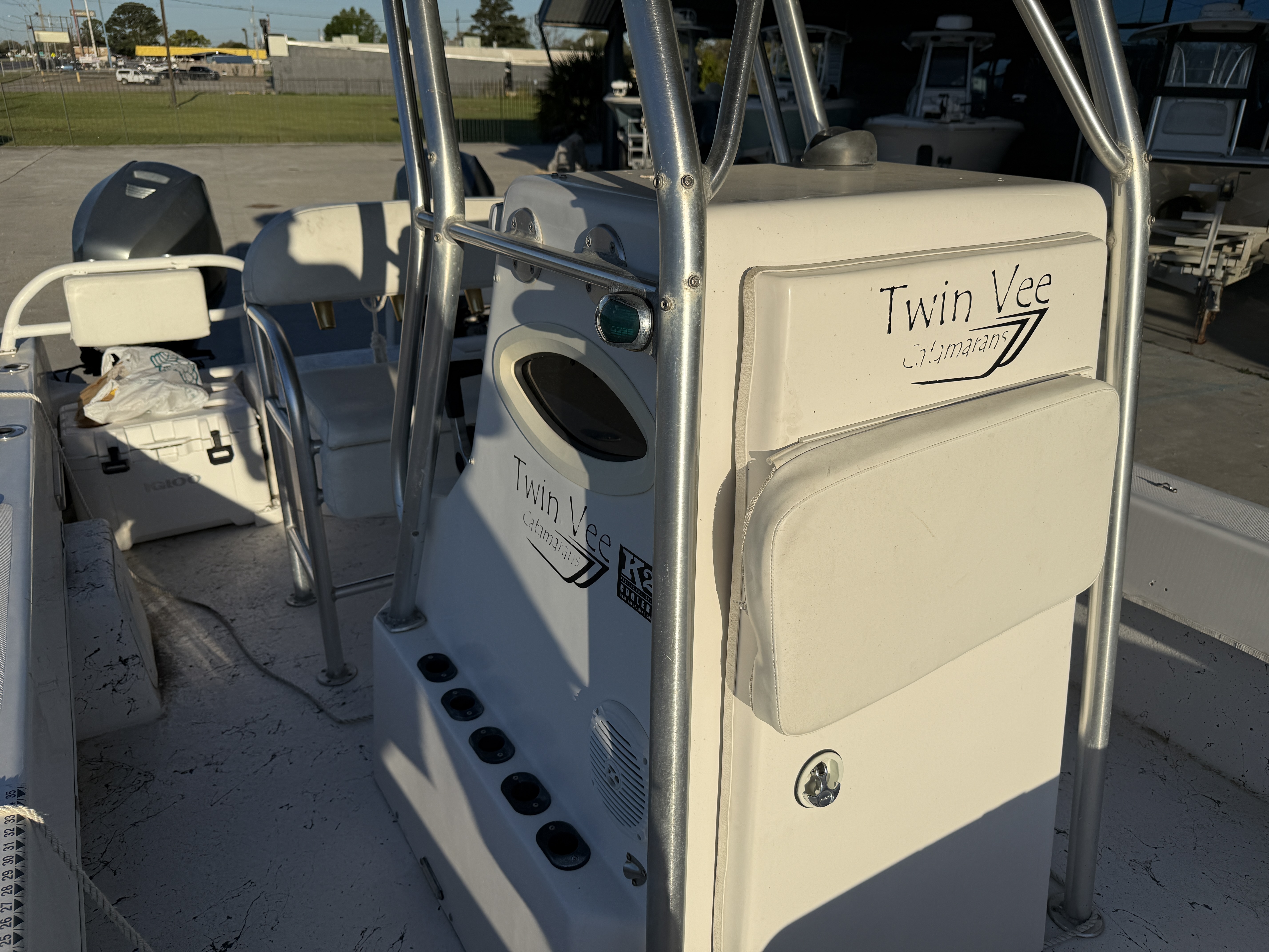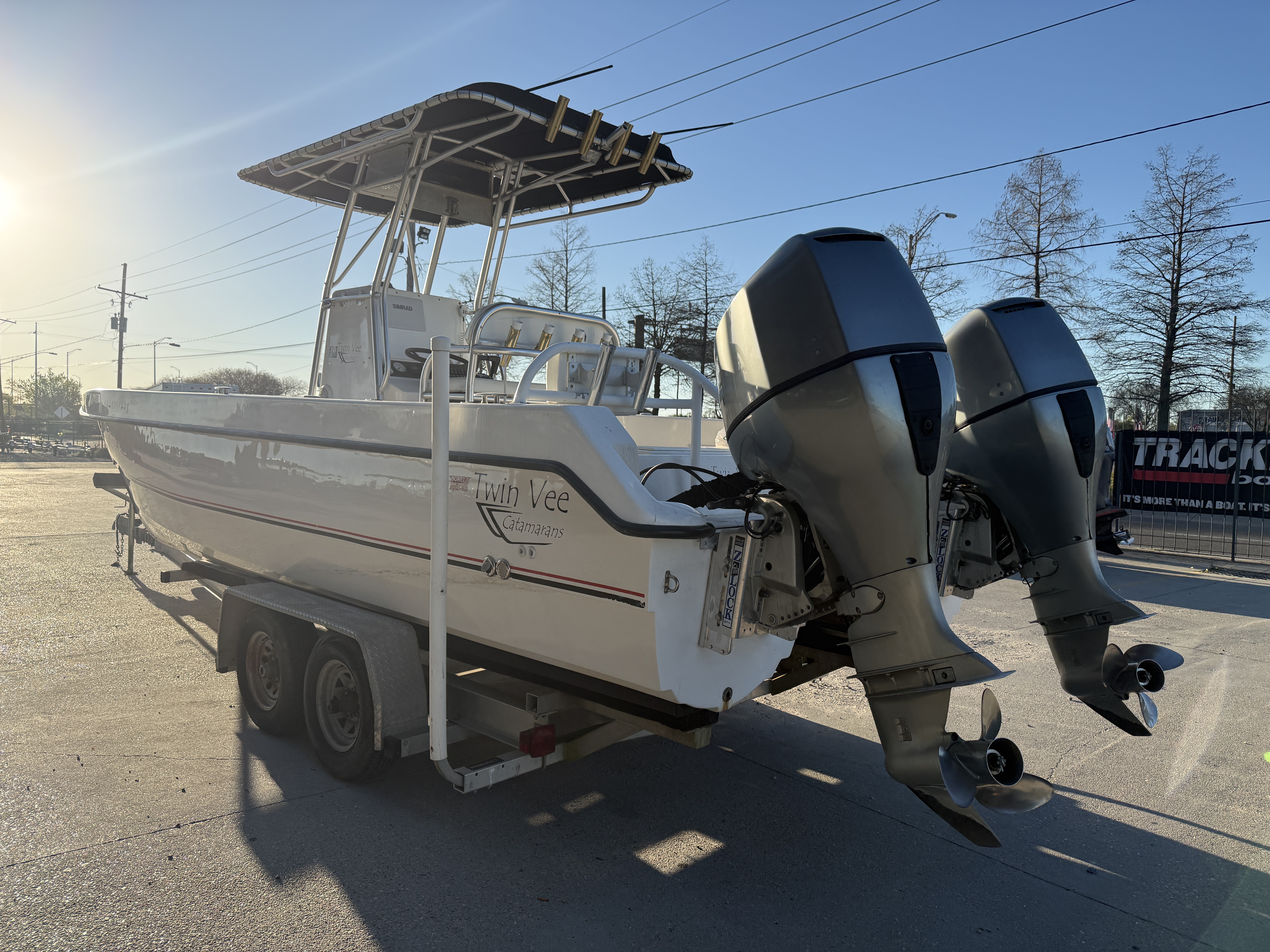 If your looking for a serious offshore fishing machine thats built for stability, range and efficiency, This Twin Vee checks all the boxes..