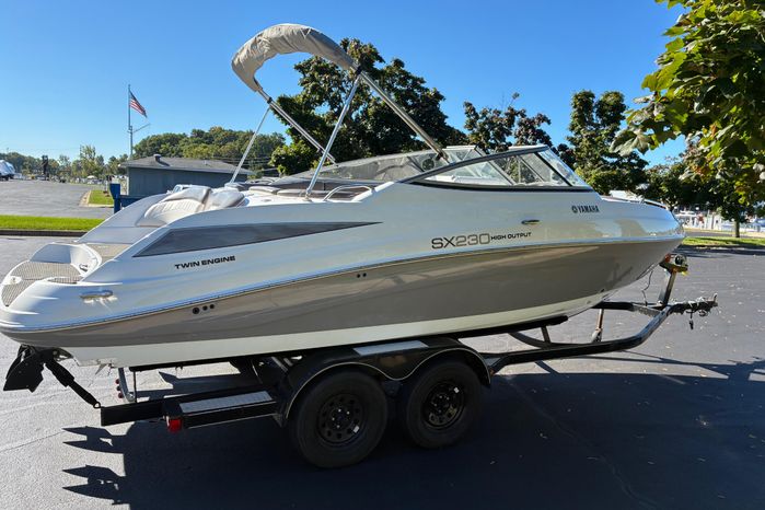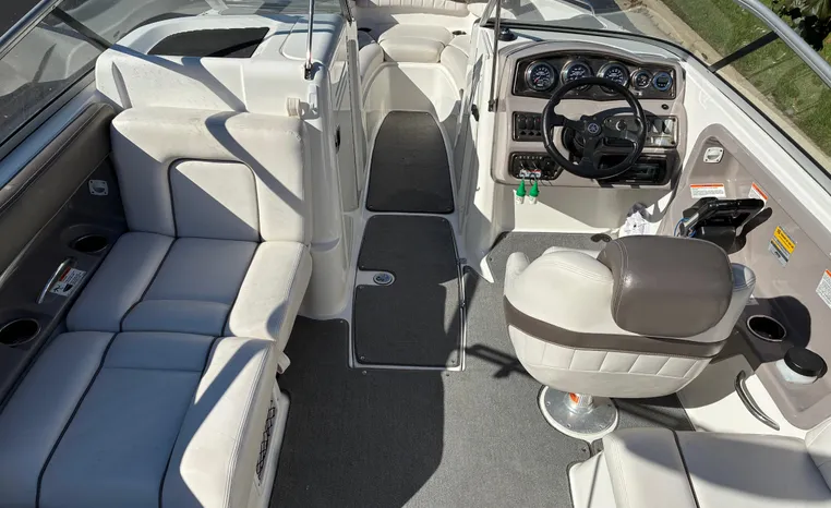 This sweet Yamaha SX 230 with twin 140 hp jet drives is guaranteed fun for the family! Ski, tube, and cruise in the river or on the Big Lake with your friends and family! This boat appears to have lived a cushy fresh-water life and it shows. The upholstery, canvas, and cockpit carpet are in excellent condition and entire boat shows pride of ownership. Includes the following options and features below: