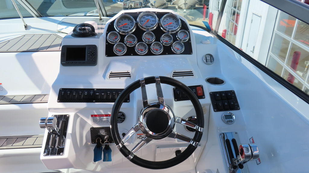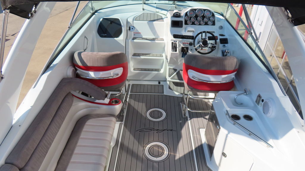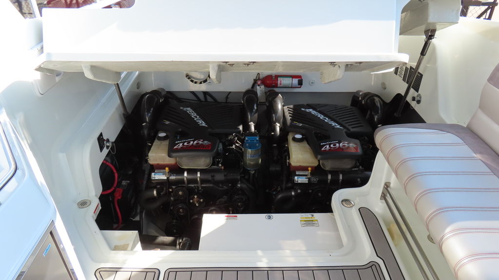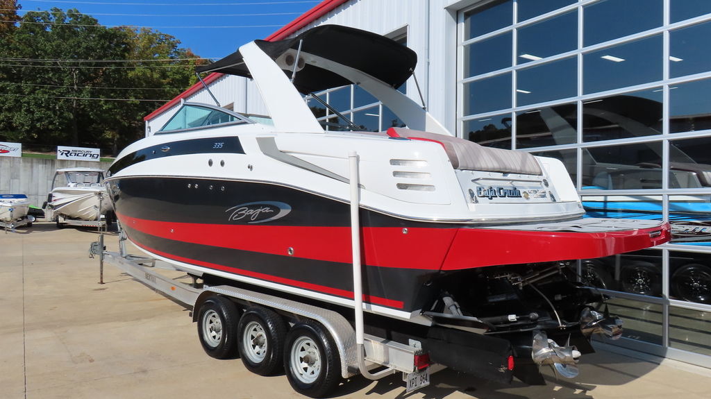 2008 Baja Performance 335 powered by Mercury 496 mag , Bravo 1x dual prop, Captains choice exhaust, Kplanes, Drive showers, Kohler generator, Shore power, Enclosed head with shower, Vacu flush head, Cabin sink, Microwave, Hot water Heater, Cabin flat panel TV, Cabin AC, Bimini top, Custom stereo, Cabin refrigerator, Deck sink, Deck refrigerator, Sea deck flooring, Alcantara interior, Dash blower, Garmin GPS, Livorsi gauges, Billet controls, Isotta steering wheel, Depth finder, Trailer included