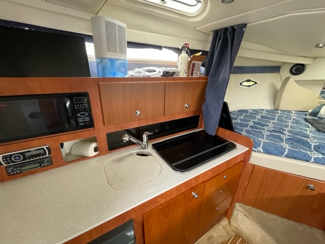 2008 Bayliner 300 Cruiser. Powered with twin Mercruiser 5.0L inboard/outboard motors with stainless steel couter rotating props. %00 hours on motors. Boat comes with radar arch, Garmin GPS, VHF, Stereo, extended swim platform with ladder, wet bar, galley, marine head with shower, aft cabin and trim tabs. Finacing Available!!