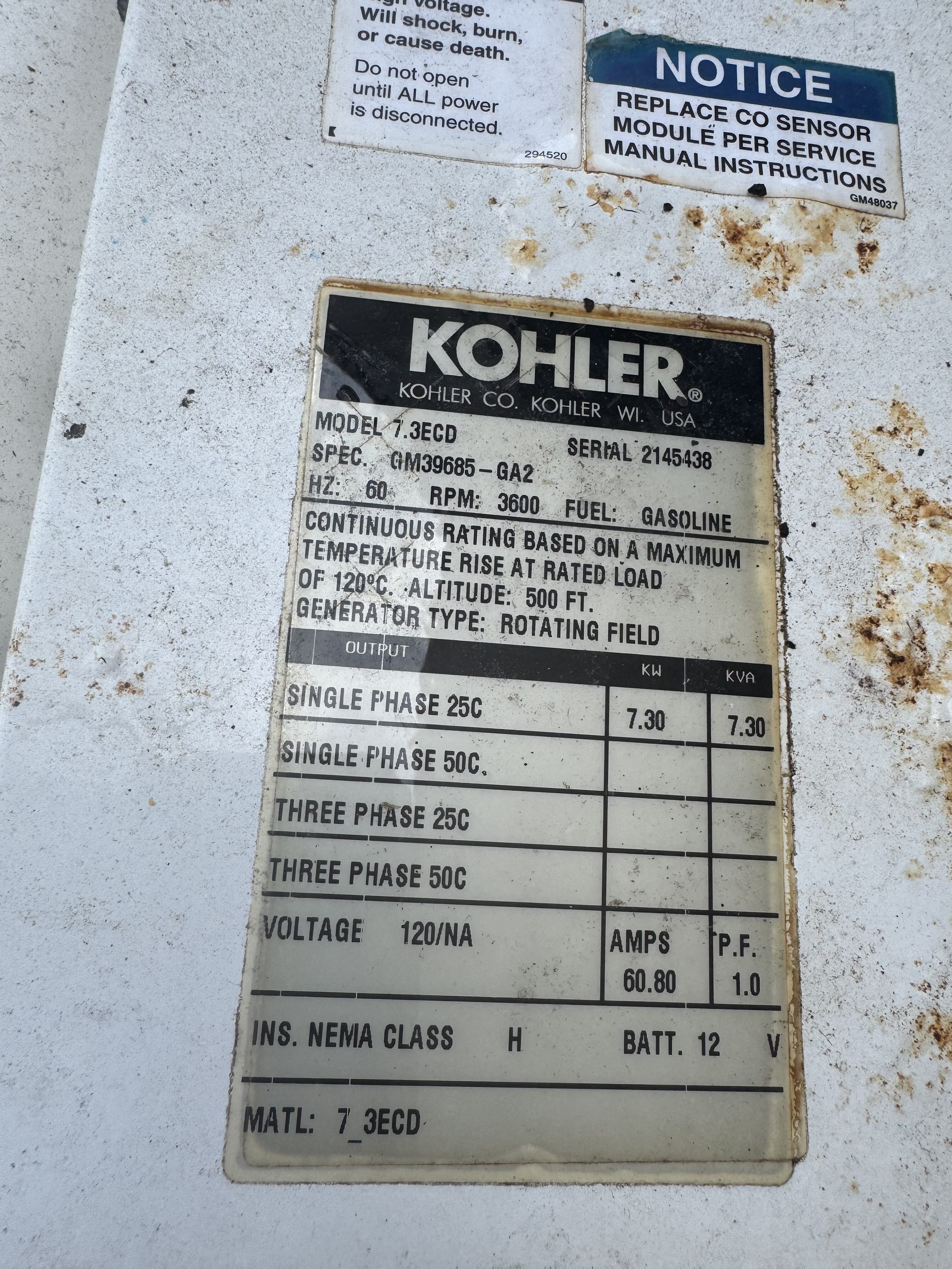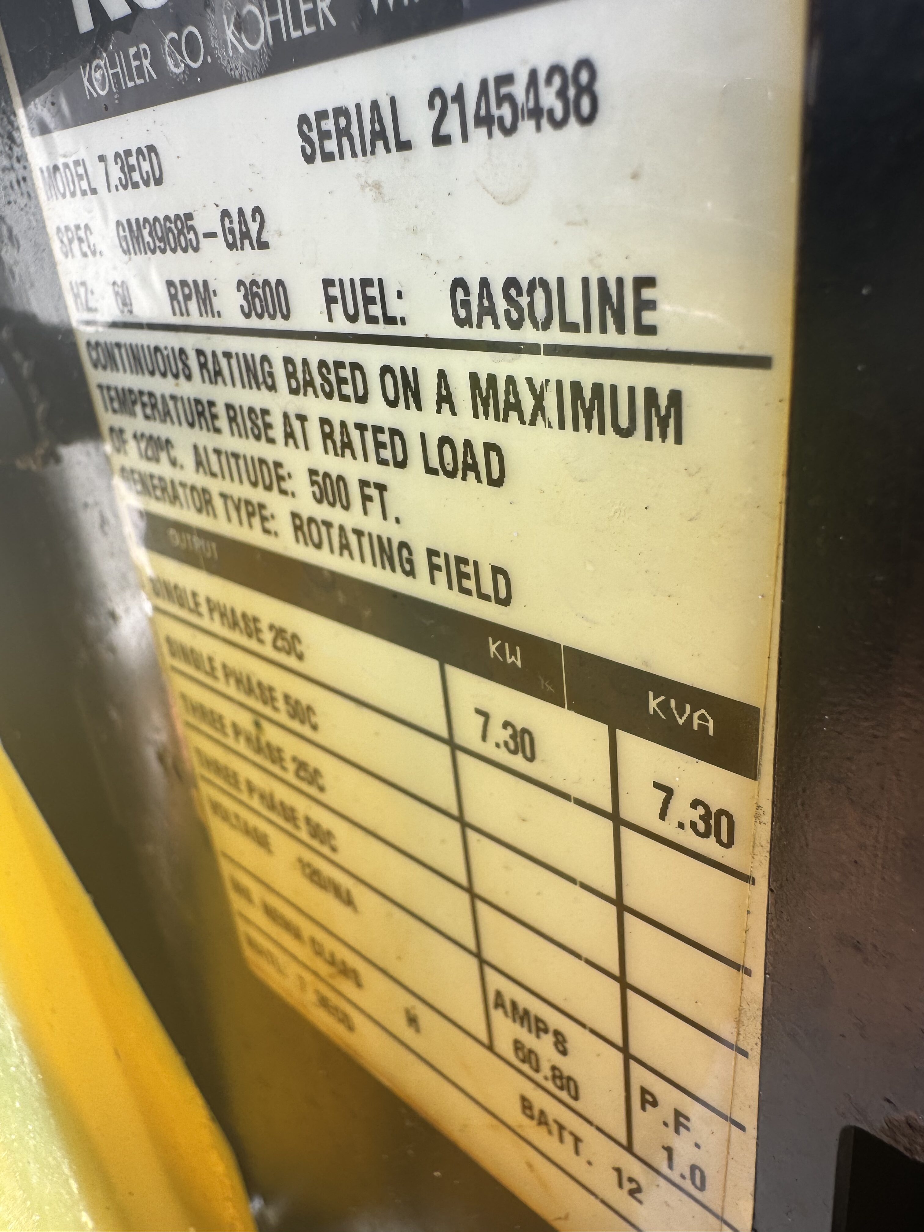 Kohler 7.3ECD Gasoline Generator (172hrs)