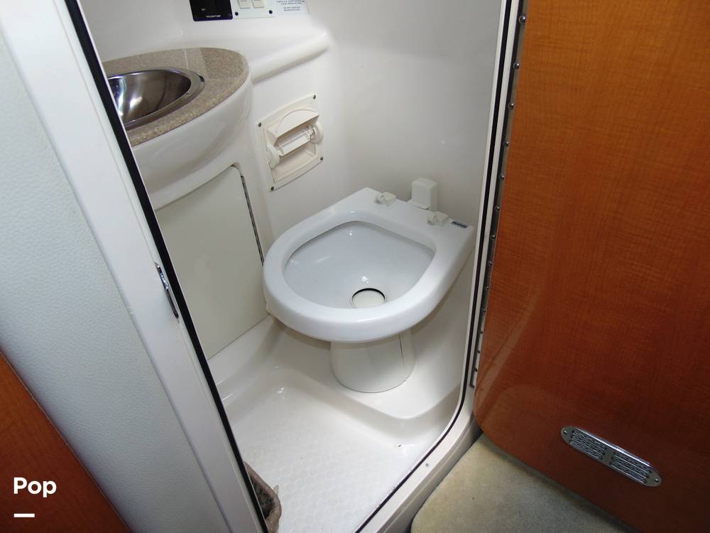 Below, lots of headroom and space to move around are welcome features of a boat of this size. A convertible dinette/ V-berth has lots of storage all around.