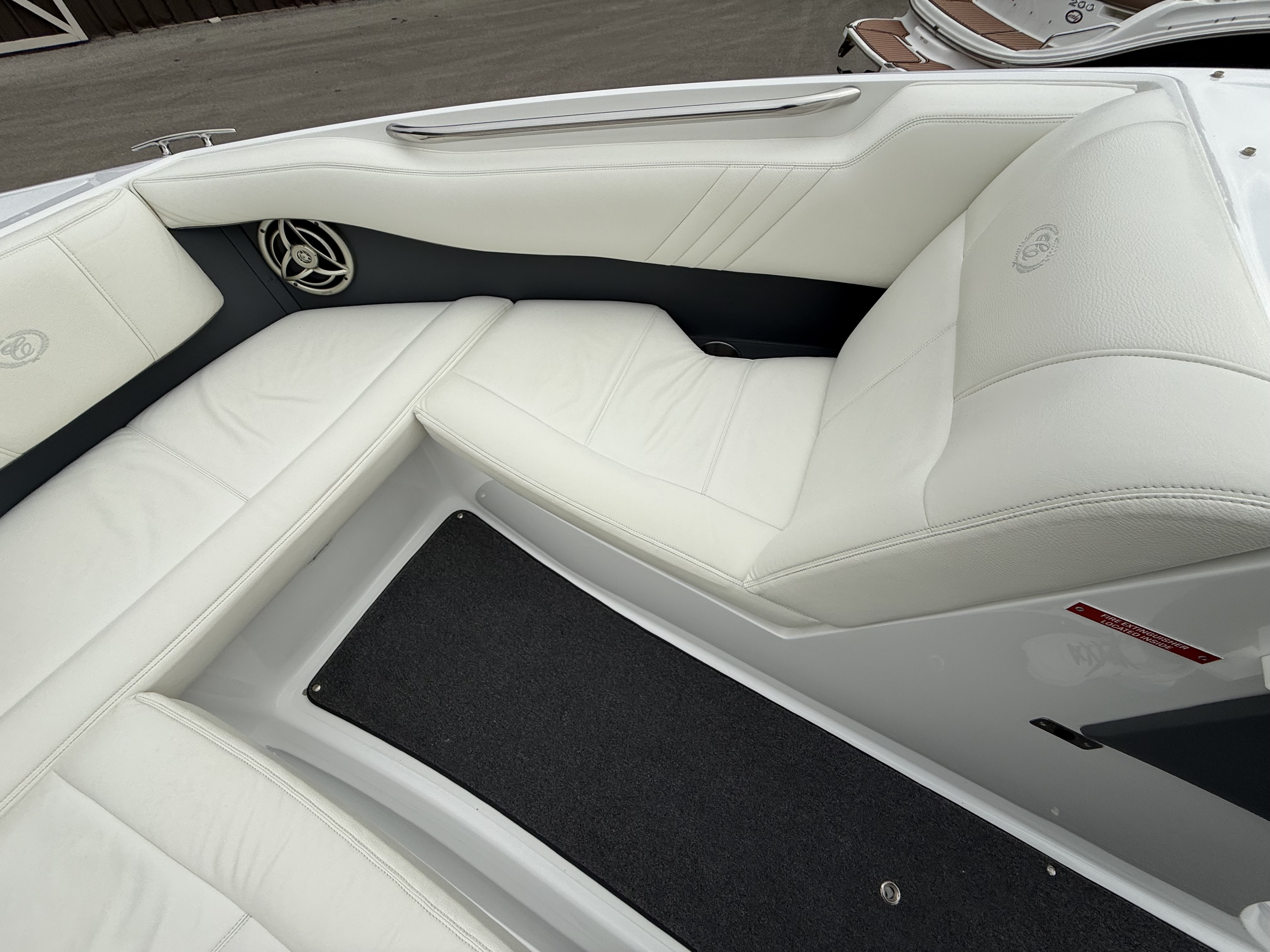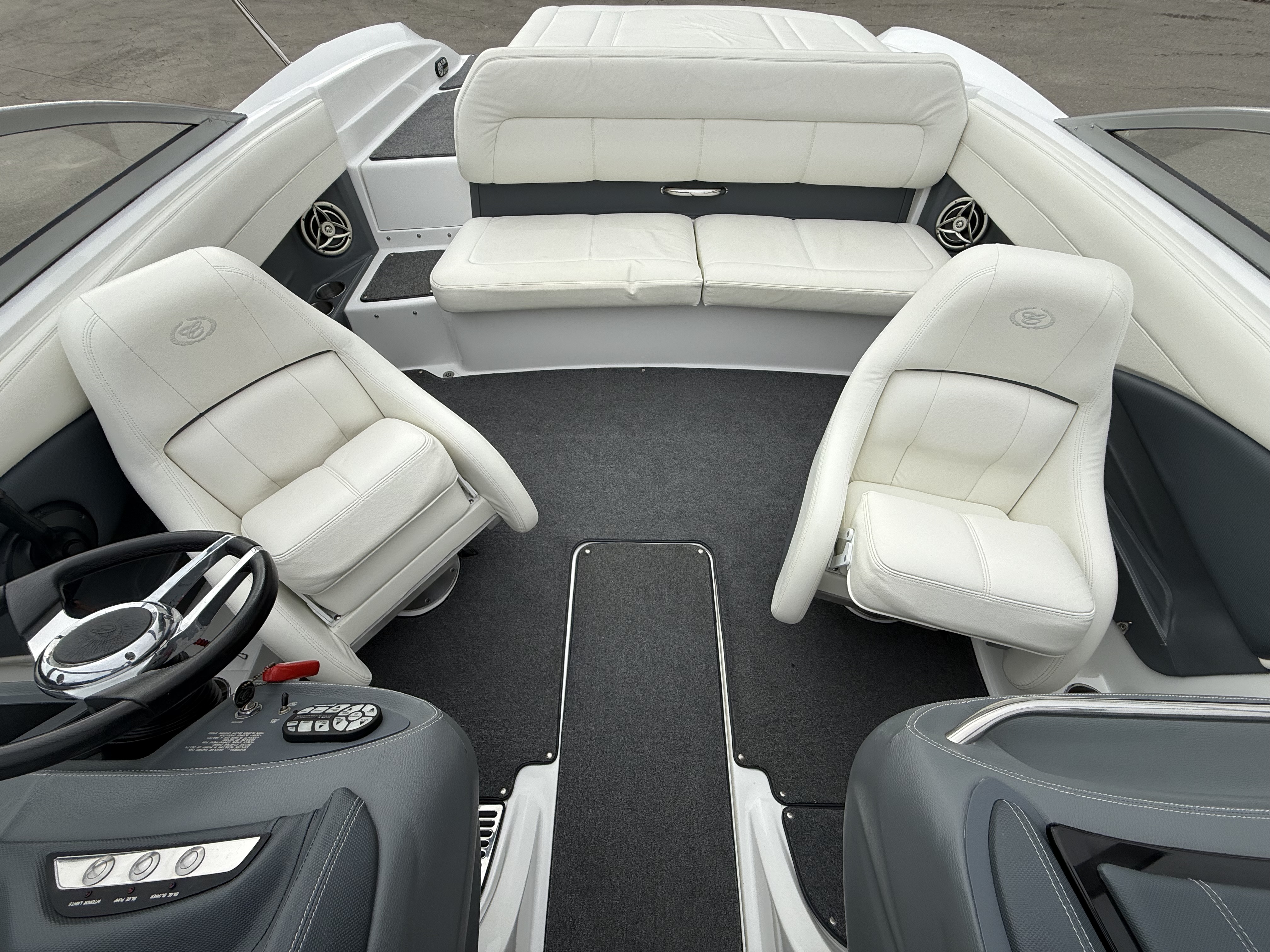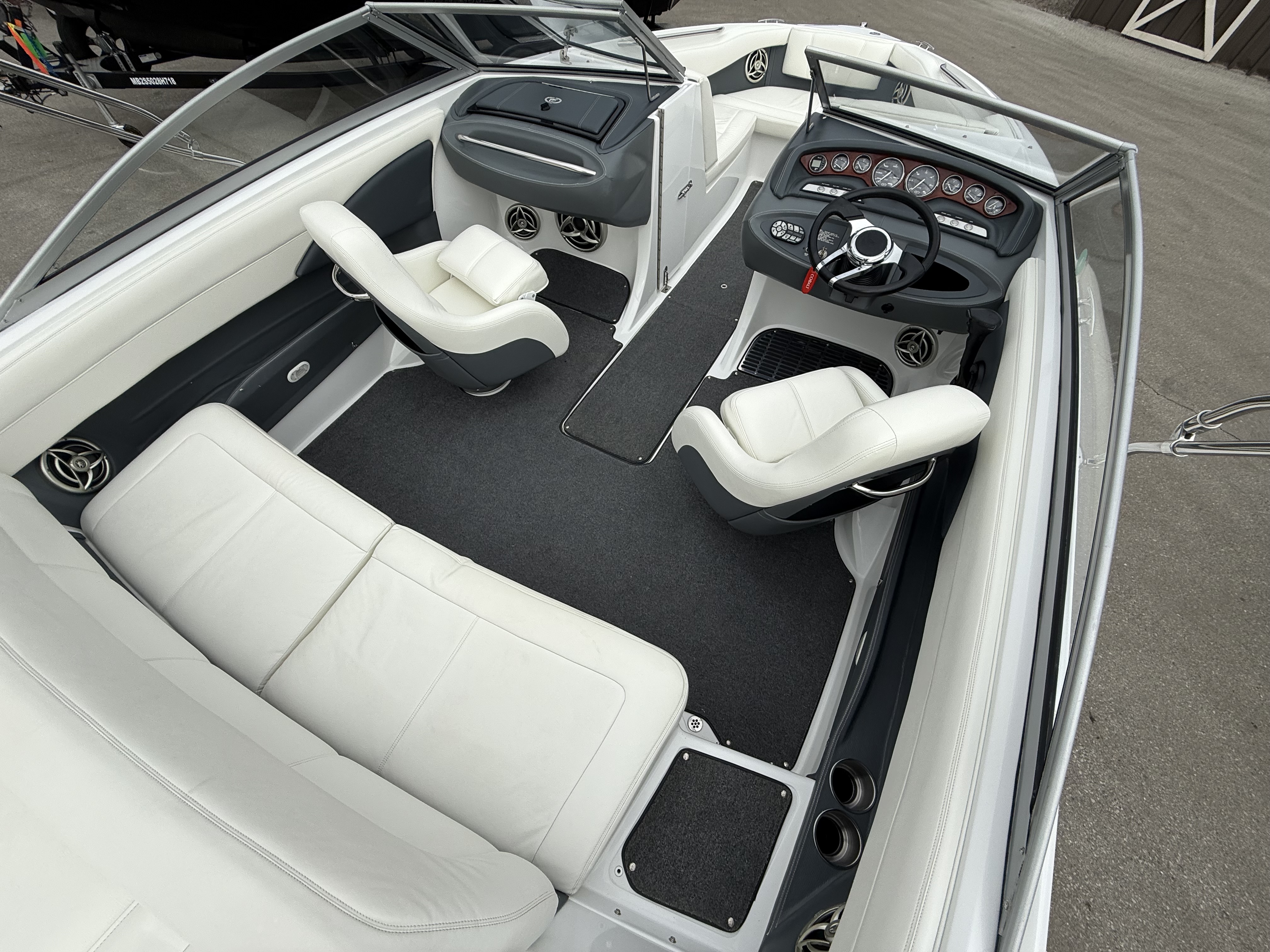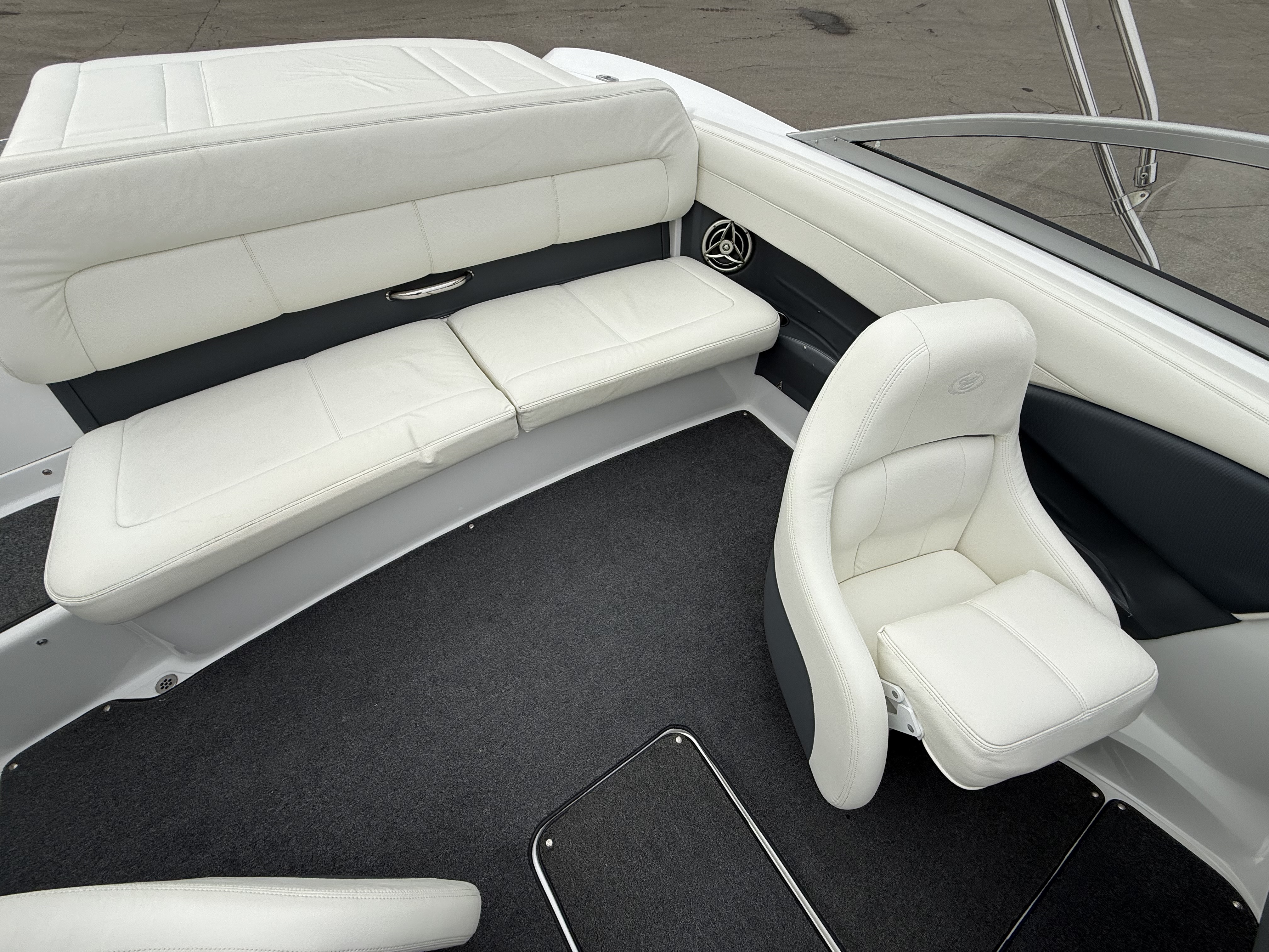 With just 407 hours and powered by a strong 350hp Mercury engine, this 20-foot bowrider delivers impressive performance in a manageable size. It’s quick out of the hole, smooth through chop, and perfectly suited for everything from cruising and watersports to relaxed evenings on the lake. Cobalt’s legendary hull design gives you a solid, confident ride that still feels sporty and responsive at the wheel.