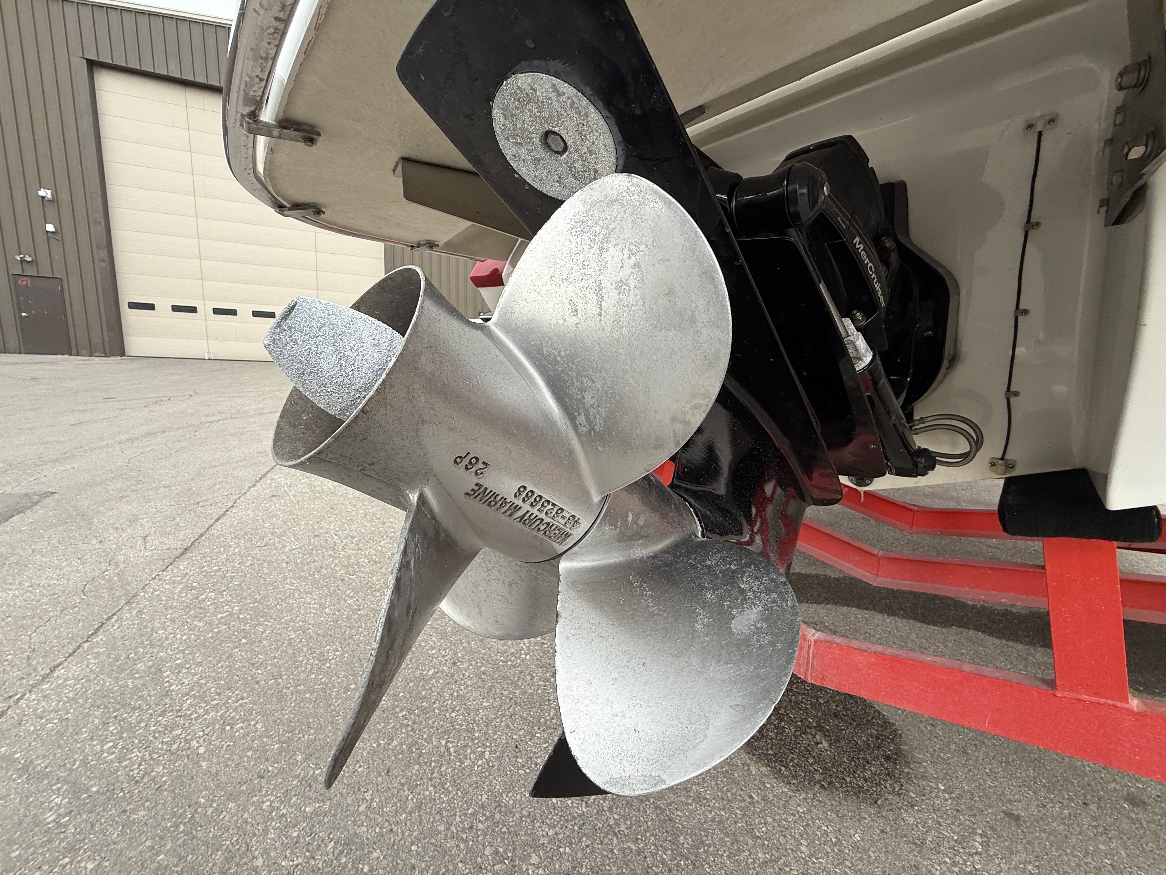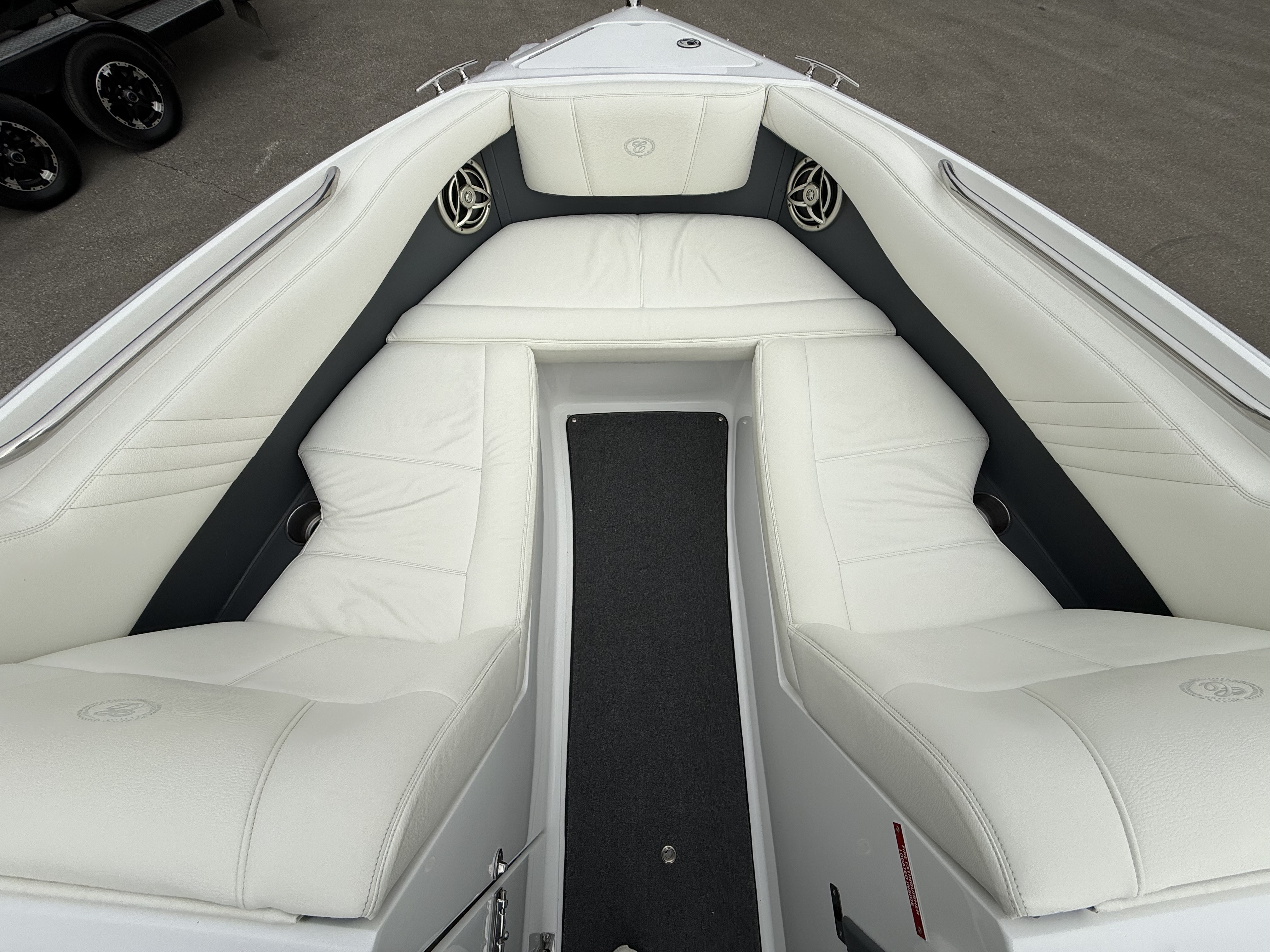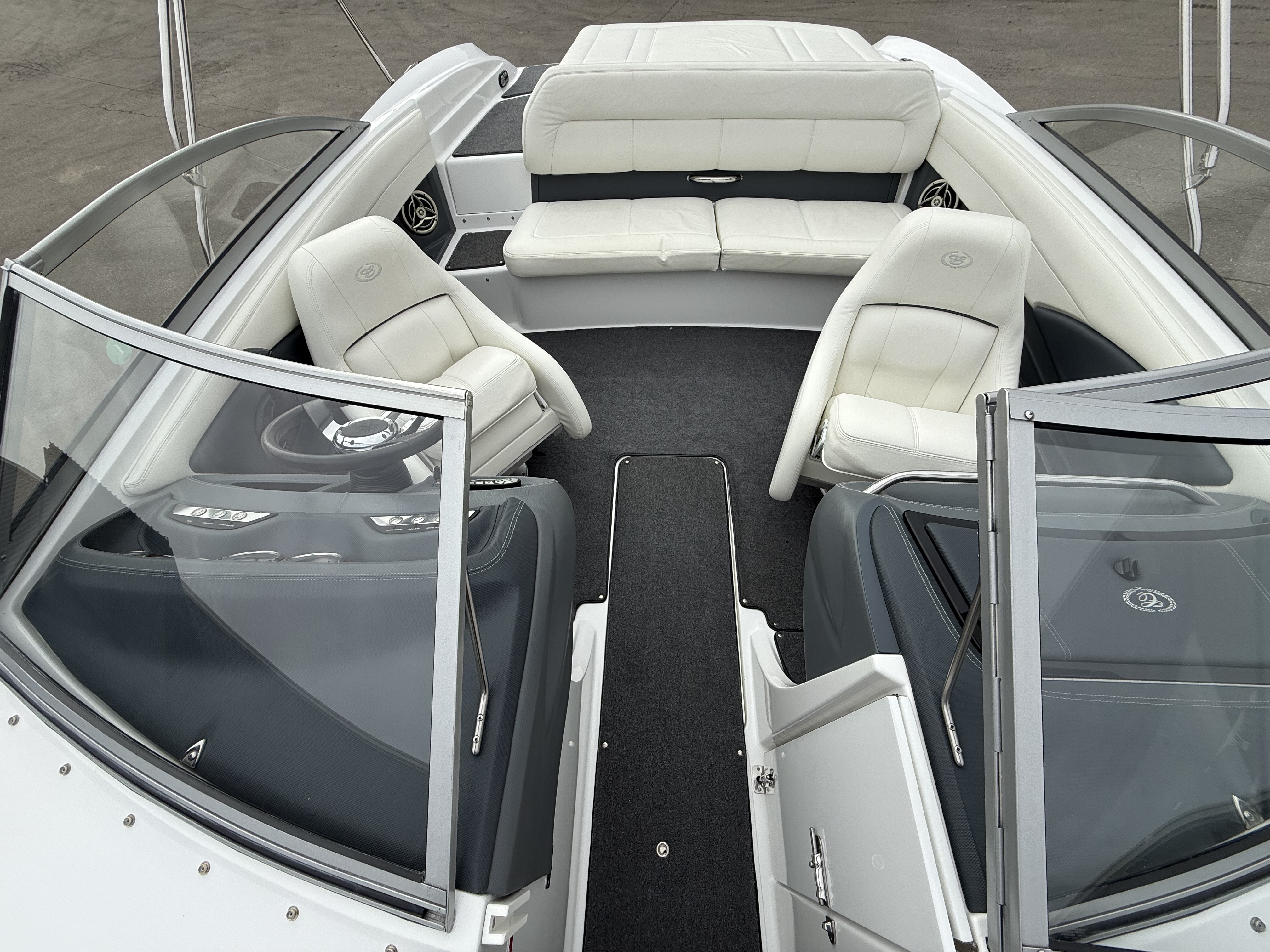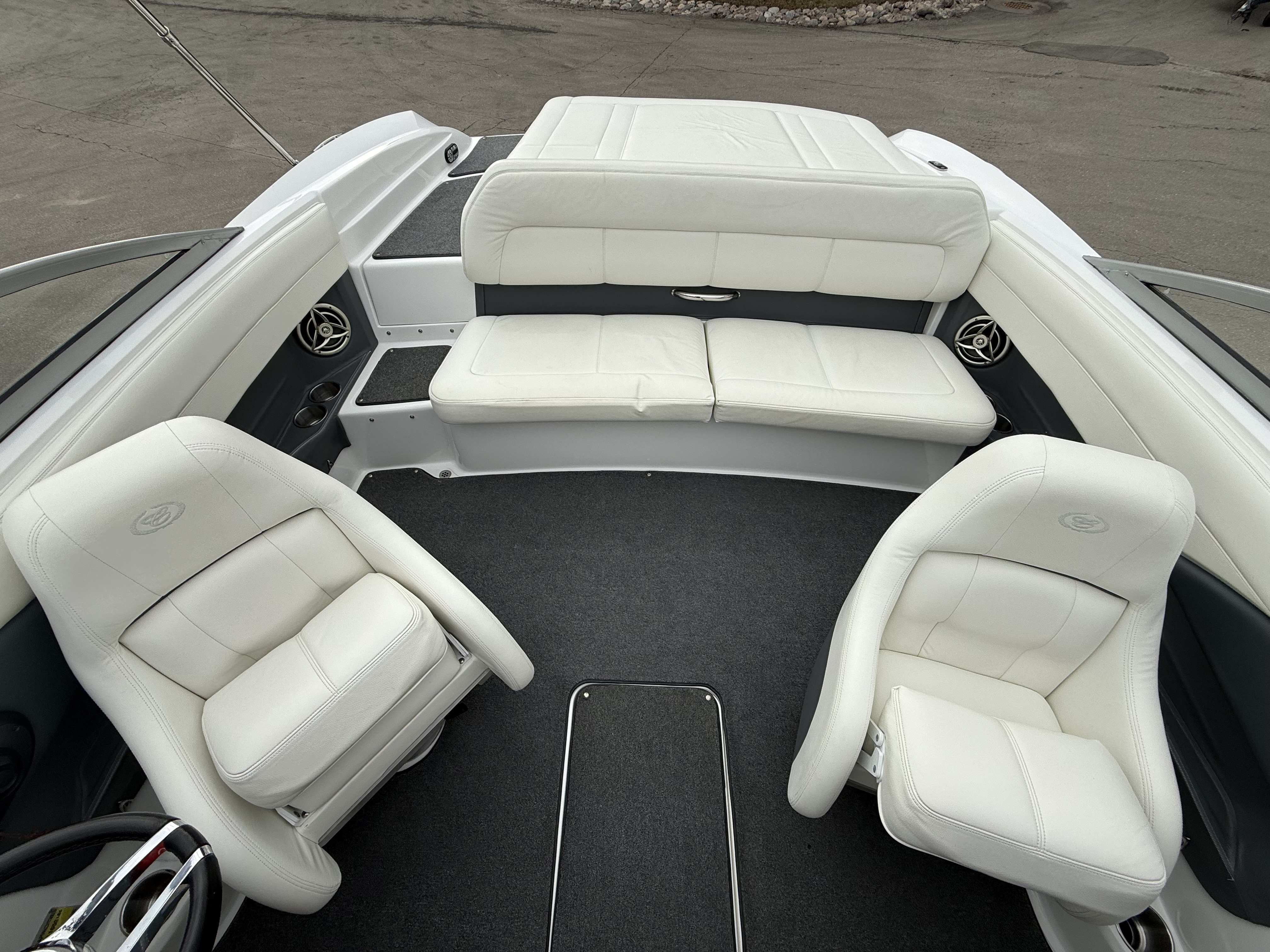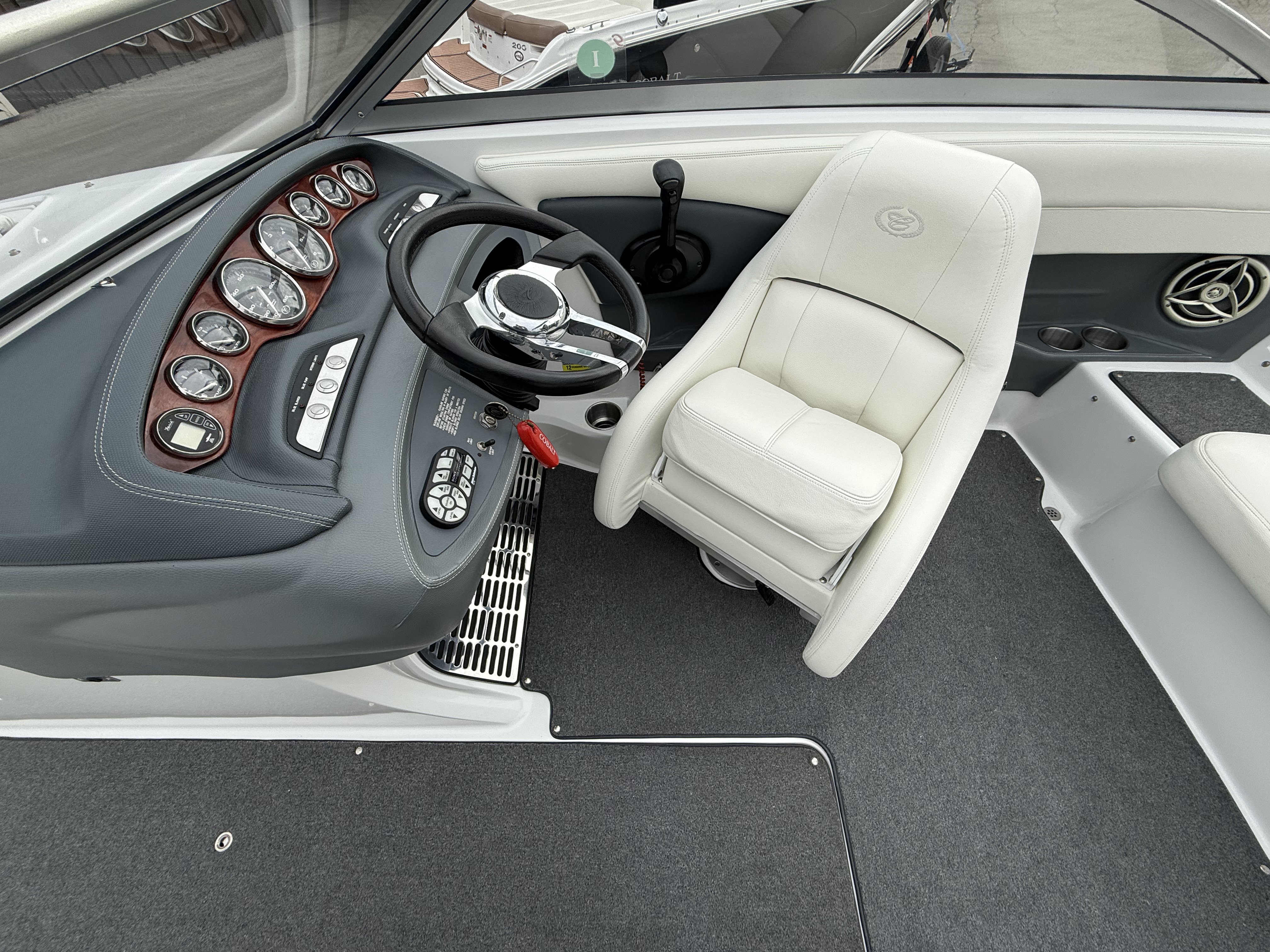 With just 407 hours and powered by a strong 350hp Mercury engine, this 20-foot bowrider delivers impressive performance in a manageable size. It’s quick out of the hole, smooth through chop, and perfectly suited for everything from cruising and watersports to relaxed evenings on the lake. Cobalt’s legendary hull design gives you a solid, confident ride that still feels sporty and responsive at the wheel.