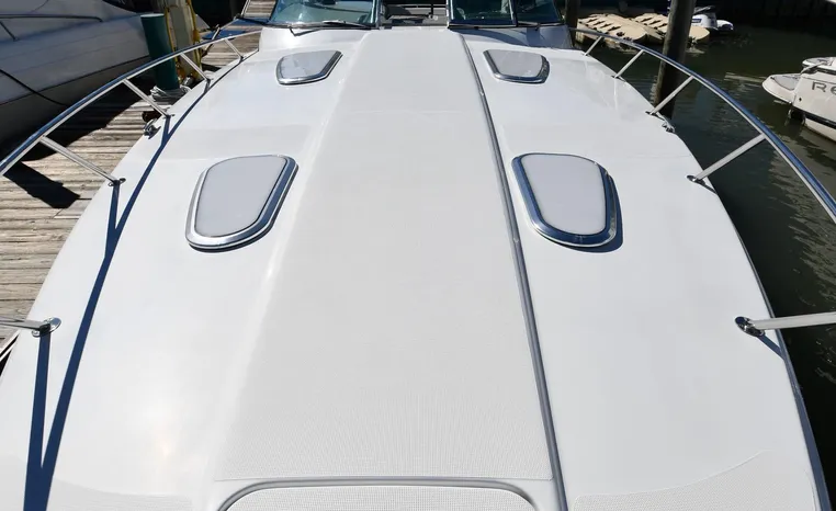 Freshwater / Great Lakes boat since new this vessel features Twin Volvo D6-350 Diesel Engine's with Volvo Pental Duo-Prop Sterndrives and only 815 original hours.. Notable features include but are not limited to the following: Air-Conditioning & Heat, Head (Vacuflush) w/Vanity/Sink/Shower, Windlass Anchor w/Forward Pedal-Controls (Note Forward Freshwater Washdown), Bow-Thruster, Westerbeke Generator (350-Hours), NEW 2022 Complete Electronics Package - (Dual 12" Axiom Raymarine Color / TouchScreen Displays w/48" Raymarine Magnum Open Array Radar, Raymarine P70RS Autopilot, Raymarine i70S Instrument Display, FLIR M232 Night-Vision), NEW Fusion Premium Sound-System w/Updated Back-Lite Speakers / Subwoofer, Cockpit Wet Bar w/Sink/Refrigerator, NEW 2024 Swim-Platform / Cockpit Aquatraction Decking, and MUCH more!