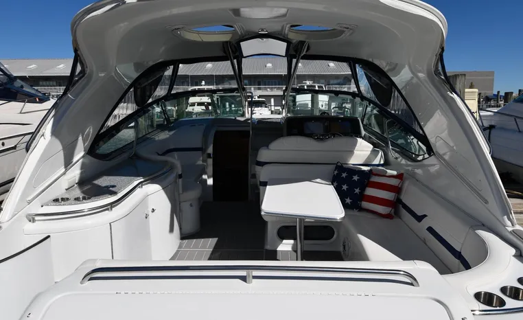 Freshwater / Great Lakes boat since new this vessel features Twin Volvo D6-350 Diesel Engine's with Volvo Pental Duo-Prop Sterndrives and only 815 original hours.. Notable features include but are not limited to the following: Air-Conditioning & Heat, Head (Vacuflush) w/Vanity/Sink/Shower, Windlass Anchor w/Forward Pedal-Controls (Note Forward Freshwater Washdown), Bow-Thruster, Westerbeke Generator (350-Hours), NEW 2022 Complete Electronics Package - (Dual 12" Axiom Raymarine Color / TouchScreen Displays w/48" Raymarine Magnum Open Array Radar, Raymarine P70RS Autopilot, Raymarine i70S Instrument Display, FLIR M232 Night-Vision), NEW Fusion Premium Sound-System w/Updated Back-Lite Speakers / Subwoofer, Cockpit Wet Bar w/Sink/Refrigerator, NEW 2024 Swim-Platform / Cockpit Aquatraction Decking, and MUCH more!