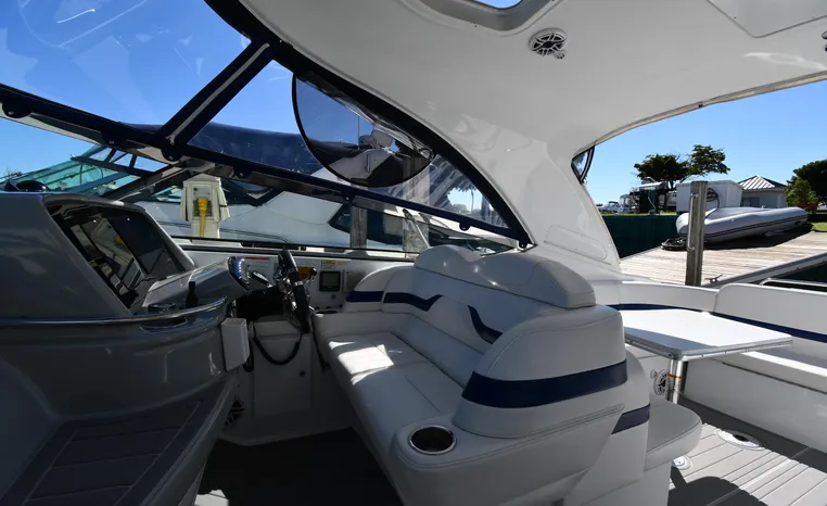 Freshwater / Great Lakes boat since new this vessel features Twin Volvo D6-350 Diesel Engine's with Volvo Pental Duo-Prop Sterndrives and only 815 original hours.. Notable features include but are not limited to the following: Air-Conditioning & Heat, Head (Vacuflush) w/Vanity/Sink/Shower, Windlass Anchor w/Forward Pedal-Controls (Note Forward Freshwater Washdown), Bow-Thruster, Westerbeke Generator (350-Hours), NEW 2022 Complete Electronics Package - (Dual 12" Axiom Raymarine Color / TouchScreen Displays w/48" Raymarine Magnum Open Array Radar, Raymarine P70RS Autopilot, Raymarine i70S Instrument Display, FLIR M232 Night-Vision), NEW Fusion Premium Sound-System w/Updated Back-Lite Speakers / Subwoofer, Cockpit Wet Bar w/Sink/Refrigerator, NEW 2024 Swim-Platform / Cockpit Aquatraction Decking, and MUCH more!