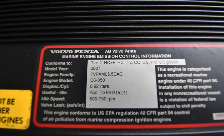 Freshwater / Great Lakes boat since new this vessel features Twin Volvo D6-350 Diesel Engine's with Volvo Pental Duo-Prop Sterndrives and only 815 original hours.. Notable features include but are not limited to the following: Air-Conditioning & Heat, Head (Vacuflush) w/Vanity/Sink/Shower, Windlass Anchor w/Forward Pedal-Controls (Note Forward Freshwater Washdown), Bow-Thruster, Westerbeke Generator (350-Hours), NEW 2022 Complete Electronics Package - (Dual 12" Axiom Raymarine Color / TouchScreen Displays w/48" Raymarine Magnum Open Array Radar, Raymarine P70RS Autopilot, Raymarine i70S Instrument Display, FLIR M232 Night-Vision), NEW Fusion Premium Sound-System w/Updated Back-Lite Speakers / Subwoofer, Cockpit Wet Bar w/Sink/Refrigerator, NEW 2024 Swim-Platform / Cockpit Aquatraction Decking, and MUCH more!
