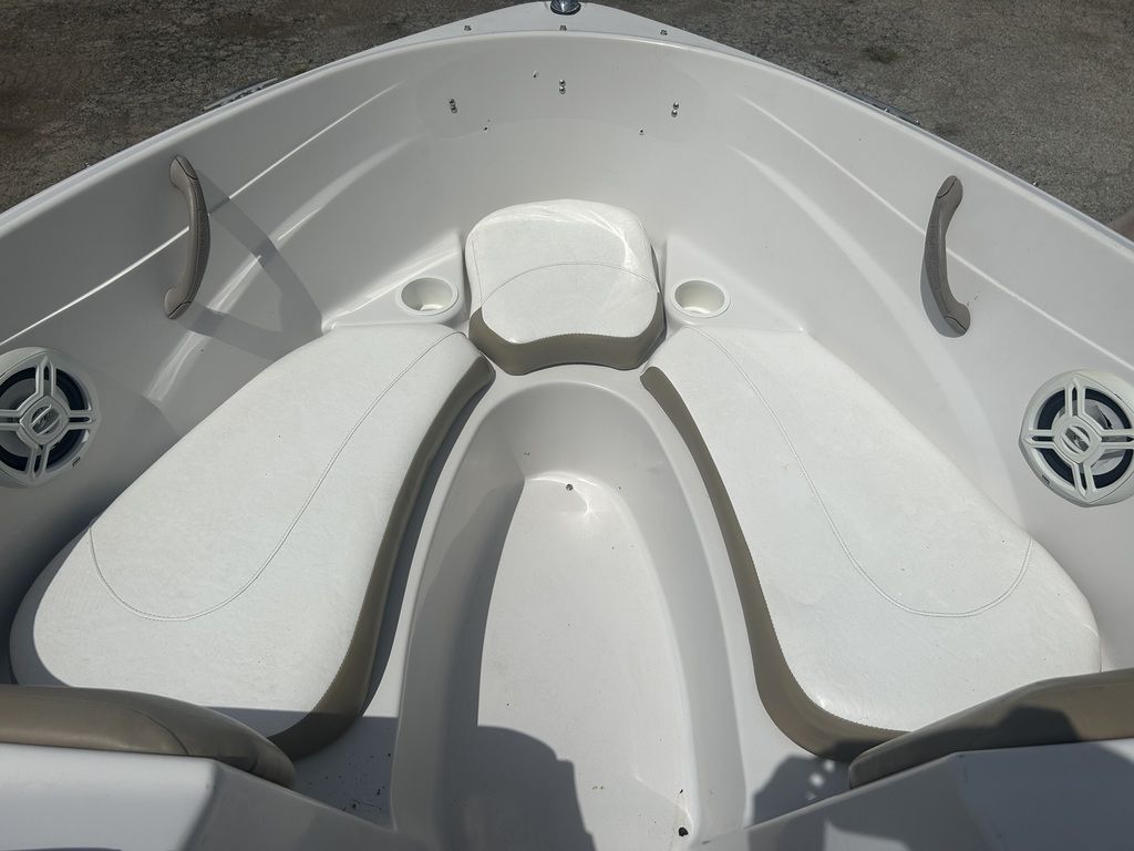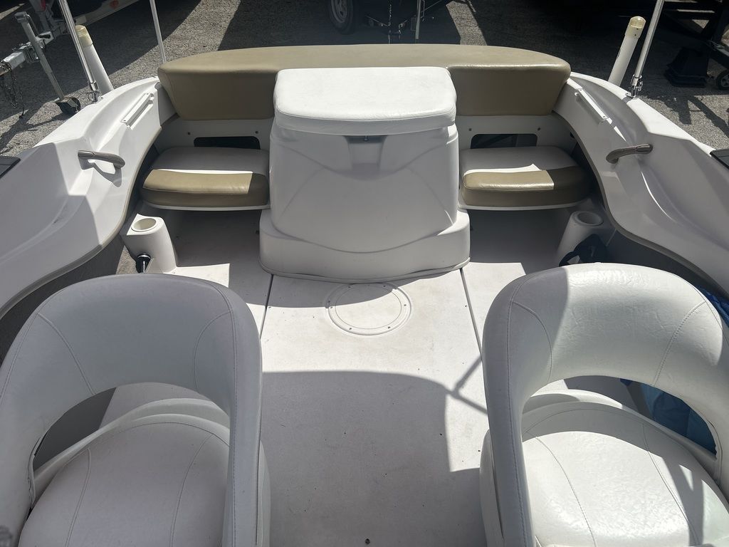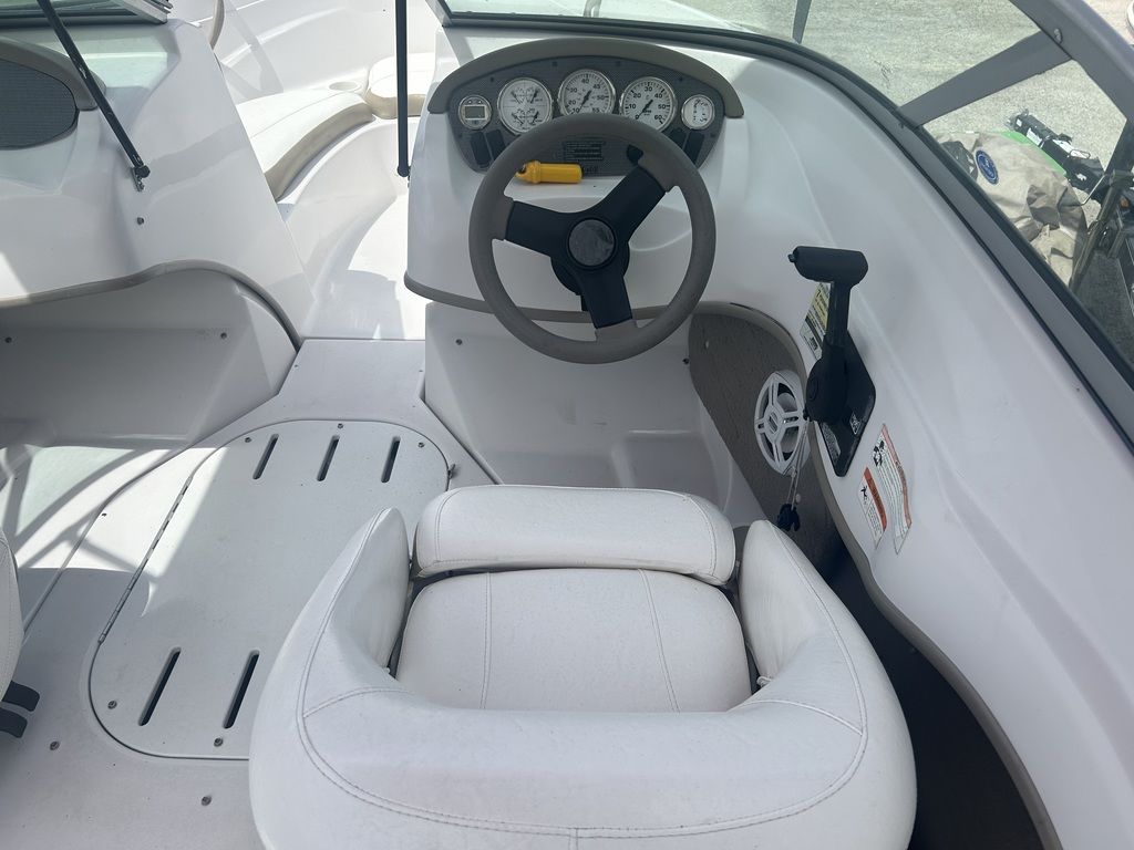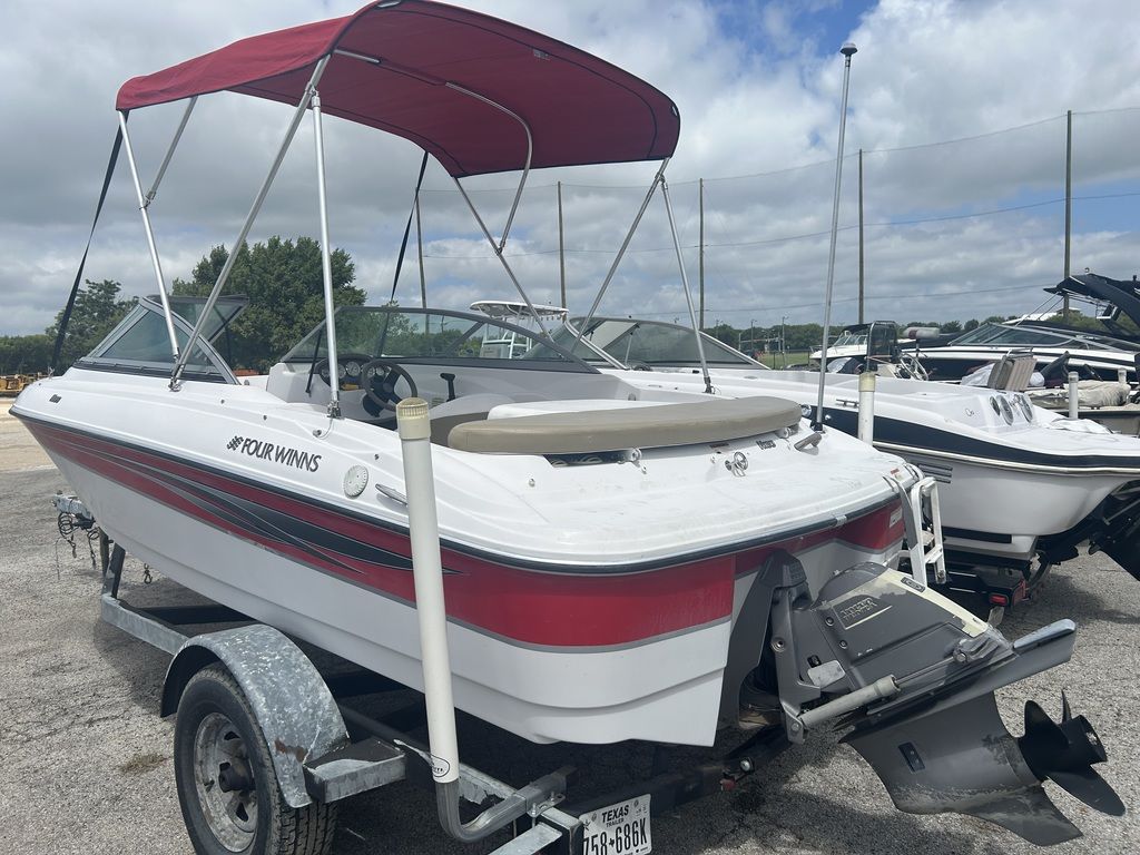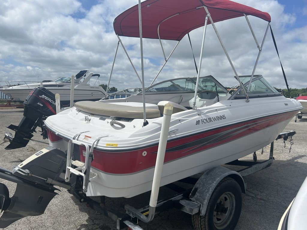The 2008 Four Winns H180 is an 18-foot fiberglass bowrider designed for day-cruising and watersports, featuring a patented Stable-Vee hull for stable handling and powered by a gasoline stern drive engine like a Volvo Penta or MerCruiser. It offers ample seating for up to seven, with standard bucket seats, jump seats, and an optional SunSport package with a sun pad and full bench. Standard amenities include tilt steering, an iPod/MP3 port, and a full fiberglass liner with snap-in marine carpet, while optional features include a wakeboard tower and an extended swim platform.