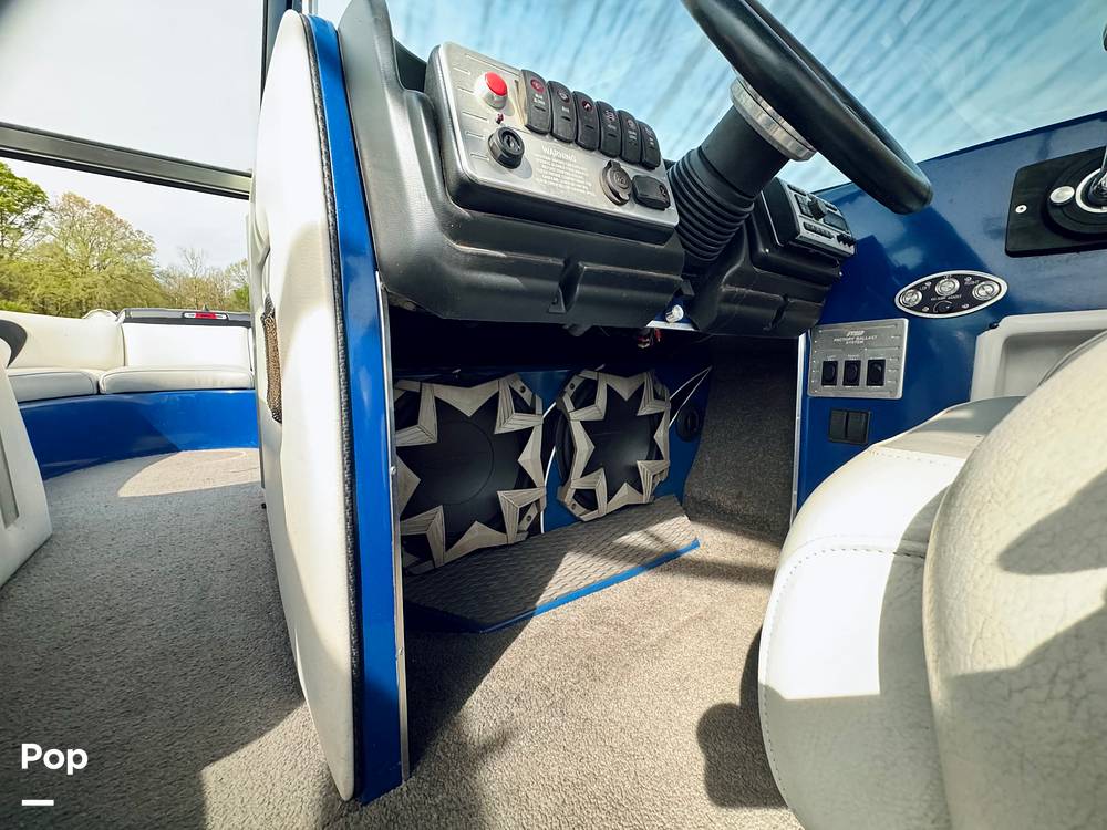 Built for fun on the water, it is equipped with a GSA surf system to help shape the wave, a custom XL bimini top for added shade and comfort, and an upgraded stereo system with 14 speakers and two 12-inch subwoofers for a big on-the-water sound experience.