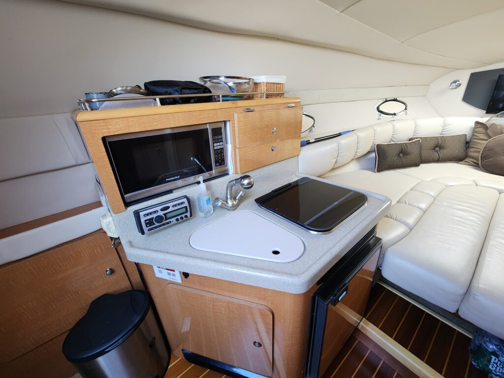Galley is fully loaded with a stove, microwave, refrigerator, tv, and more!