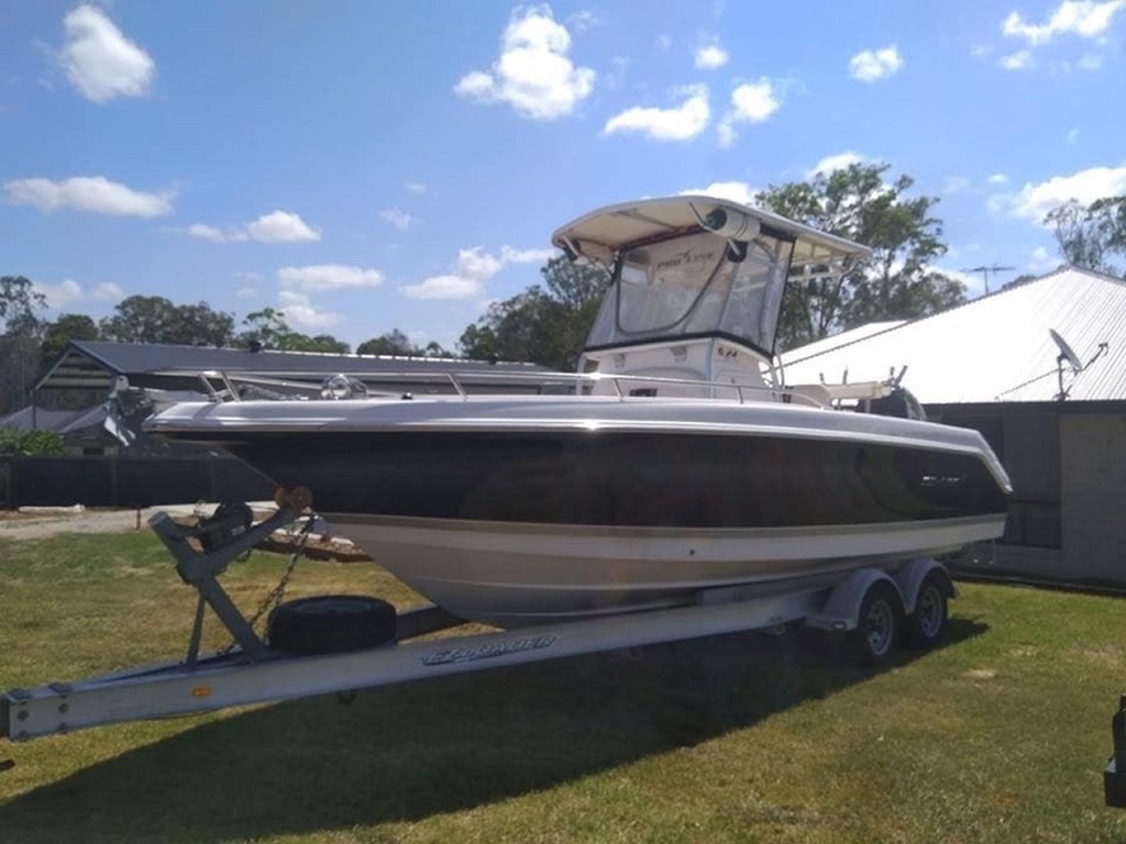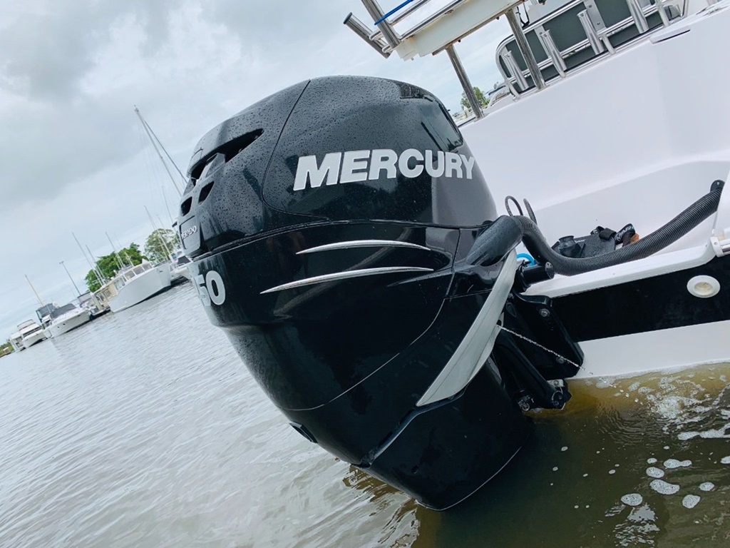 Powered by a 250 HP Mercury 4-stroke engine and sitting on a 2015 EZ Loader alloy tandem trailer, it's the perfect boat for fishing, spearfishing, or cruising the Broadwater.