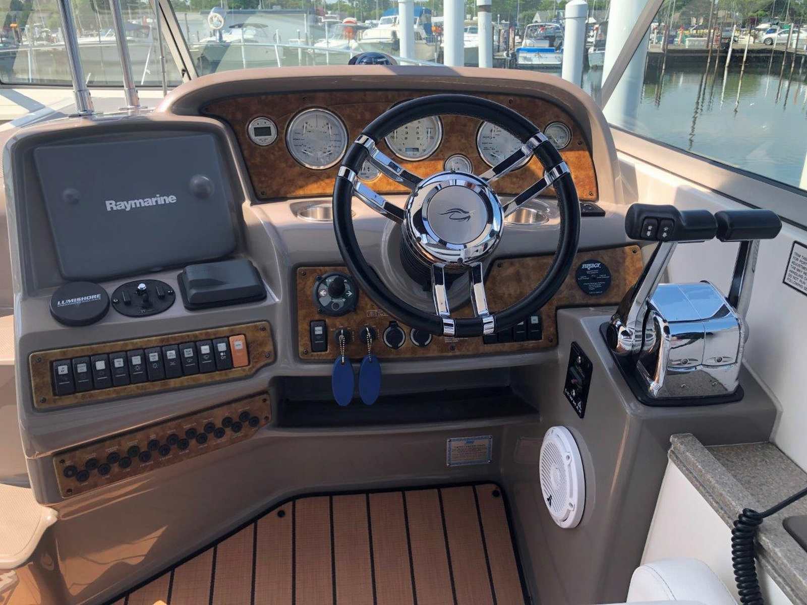New to the market and seriously for sale…don’t miss this clean and well-equipped Rinker Express! She has been enjoyed in freshwater and has low hours on her twin Volvo V-8’s. Other highlights include generator, air & heat, GPS / plotter & radar, VacuFlush head, anchor windlass, bow thruster, camper canvas, underwater lighting, cockpit wetbar with fridge & icemaker, and upgraded Fusion / JL Audio stereo system with remotes. Please inquire for more details regarding this fun and ultra-functional cruiser!