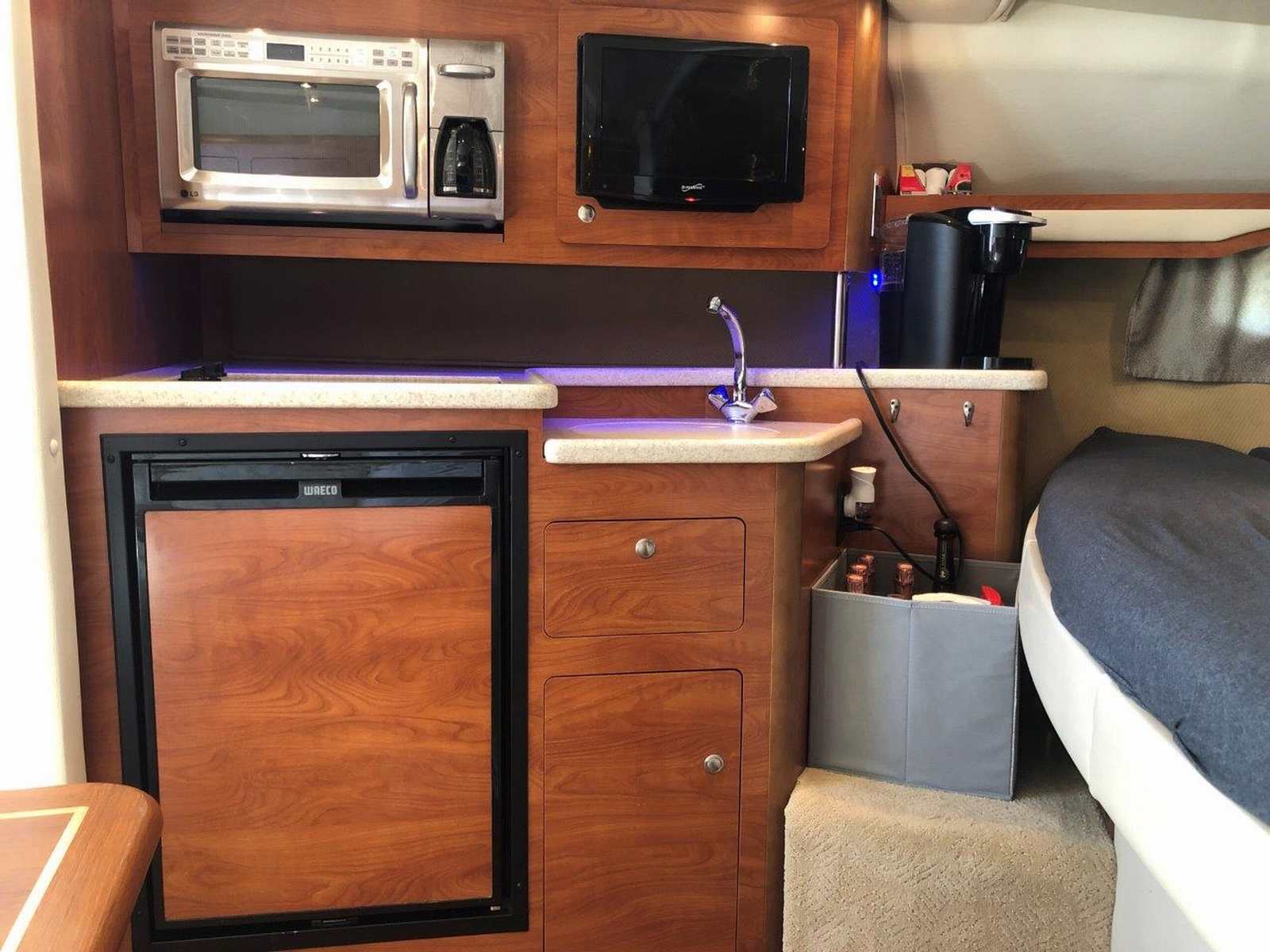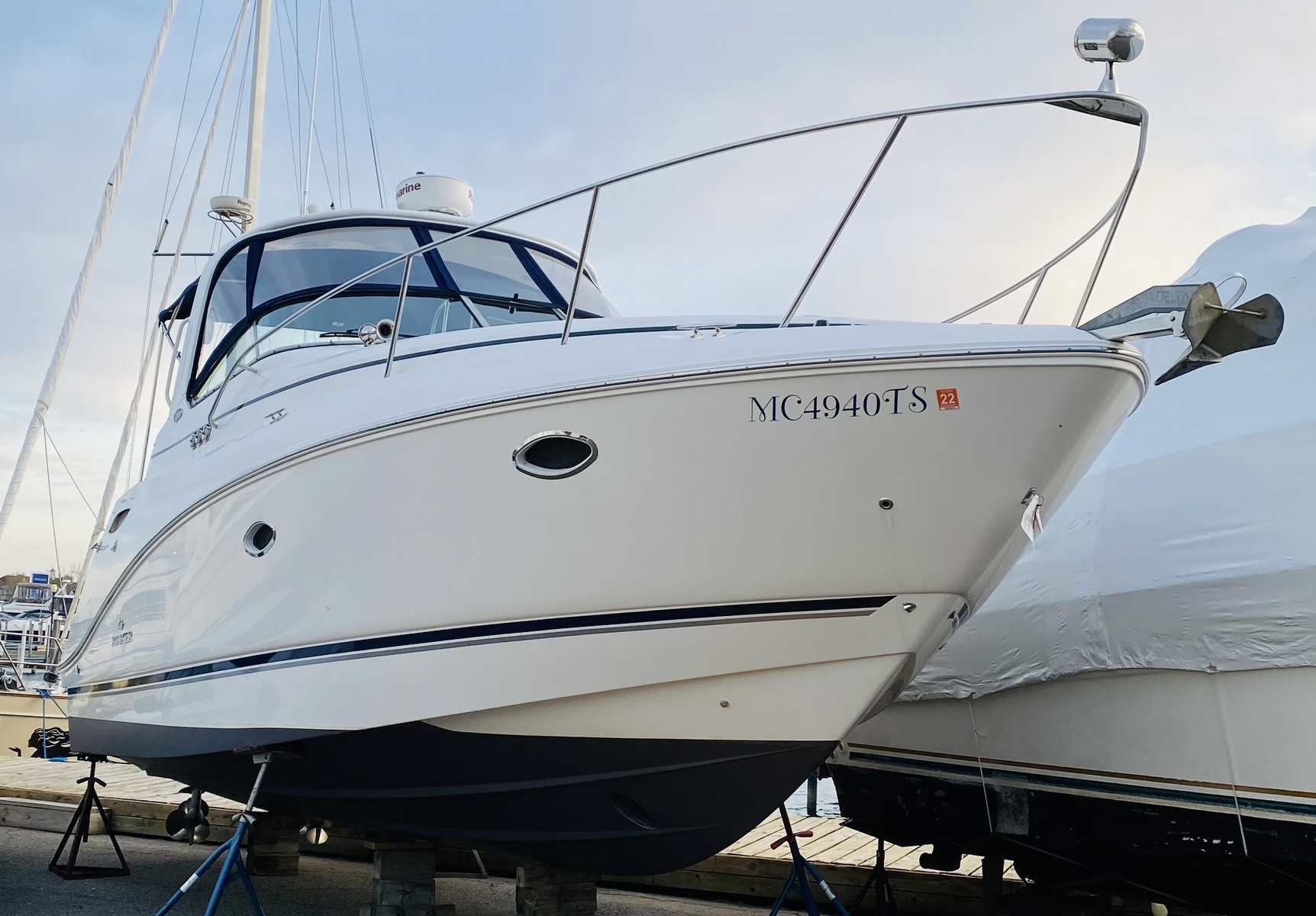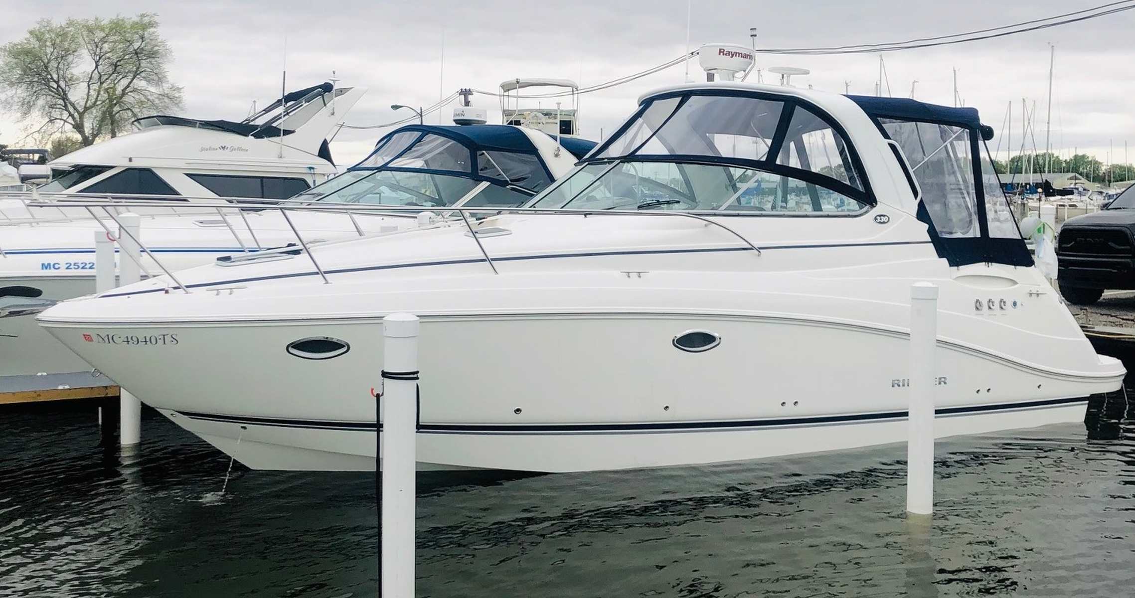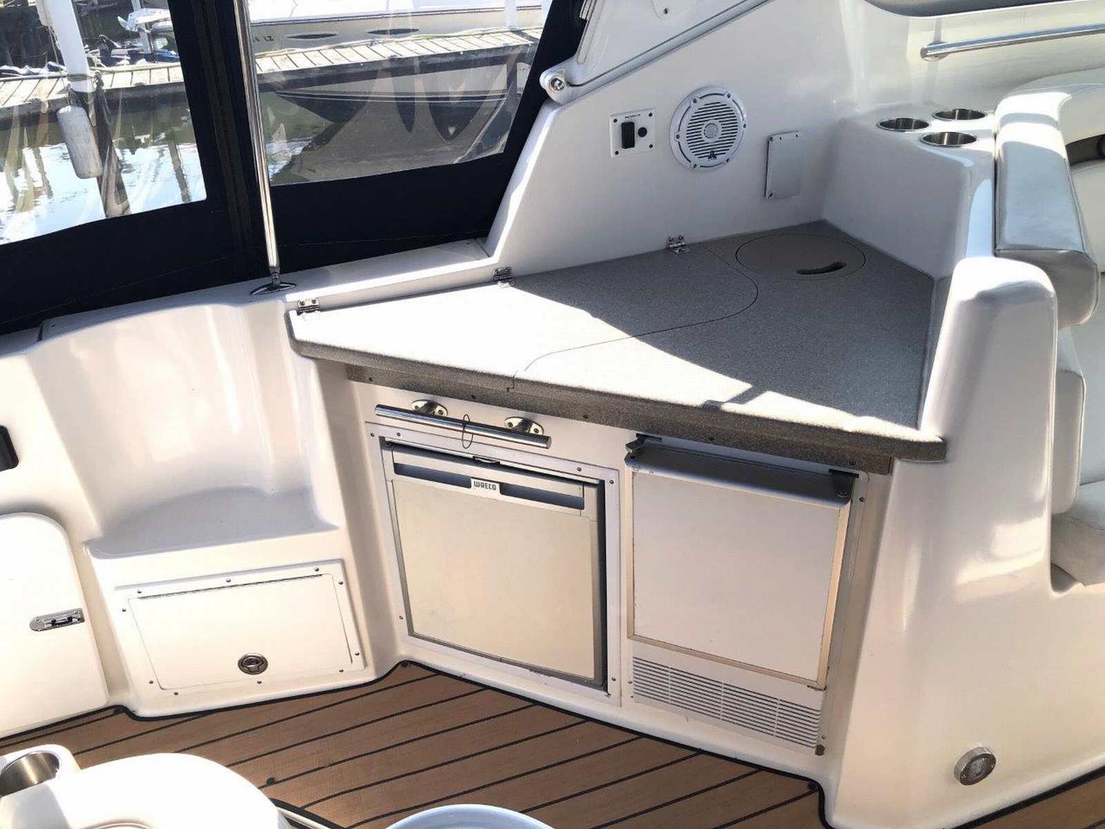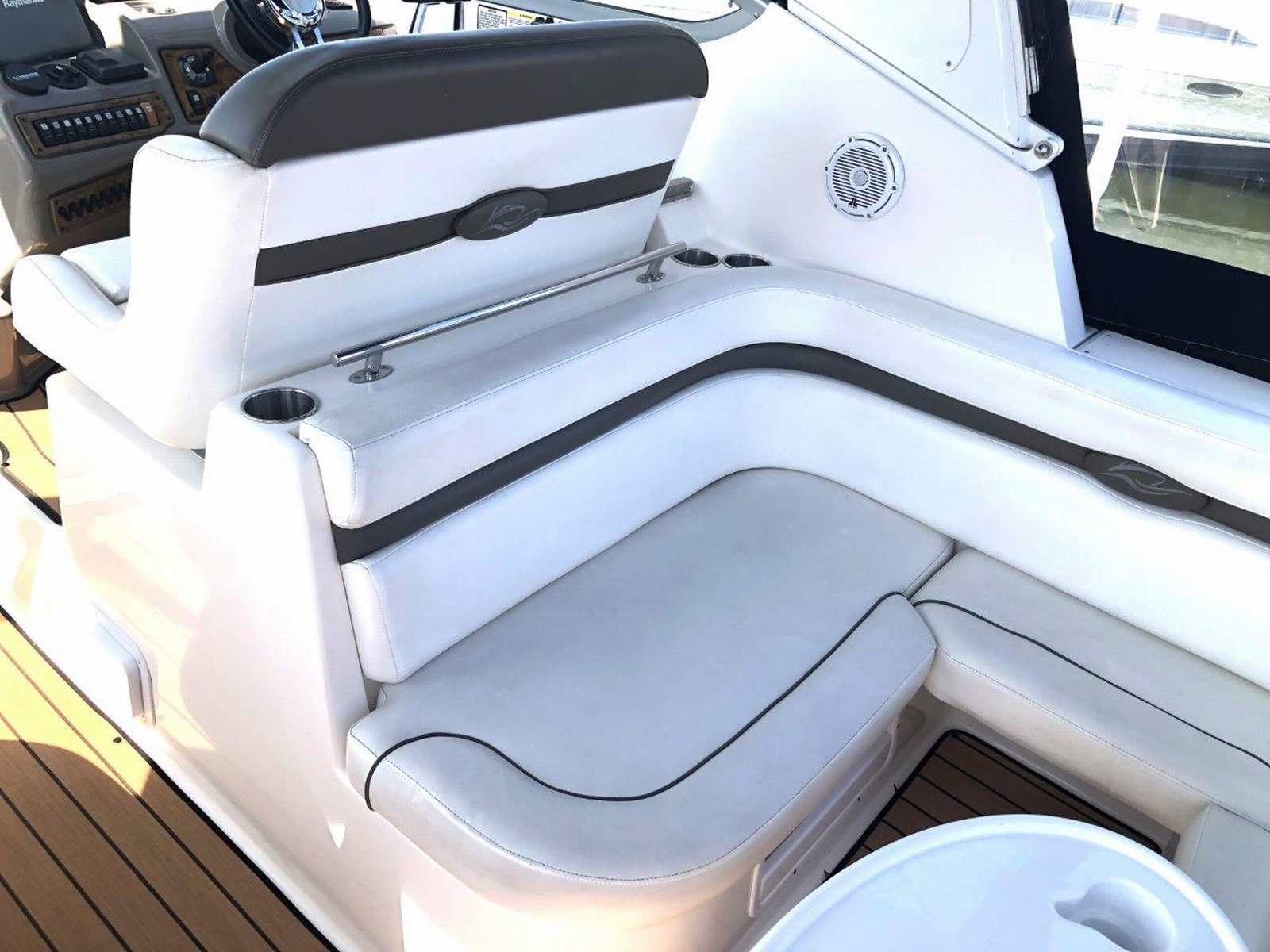 New to the market and seriously for sale…don’t miss this clean and well-equipped Rinker Express! She has been enjoyed in freshwater and has low hours on her twin Volvo V-8’s. Other highlights include generator, air & heat, GPS / plotter & radar, VacuFlush head, anchor windlass, bow thruster, camper canvas, underwater lighting, cockpit wetbar with fridge & icemaker, and upgraded Fusion / JL Audio stereo system with remotes. Please inquire for more details regarding this fun and ultra-functional cruiser!