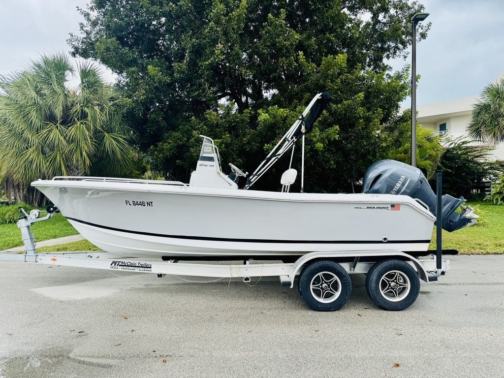 Powered by a Yamaha 150 HP four-stroke with 550 hours, the 196 delivers impressive hole-shot, efficient cruising, and Yamaha’s unmatched long-term dependability. At an overall length of 19’6” with a beam of 8’0”, the Triton 196 offers a stable, dry ride supported by Sea Hunt’s classic Carolina flare and hand-laid fiberglass construction. Every detail — from the self-bailing cockpit to the stainless-steel hardware — reflects Sea Hunt’s commitment to durability, value, and on-water confidence. Whether fishing from the bow, manning the helm, or relaxing aft, this boat adapts seamlessly to your day on the water.