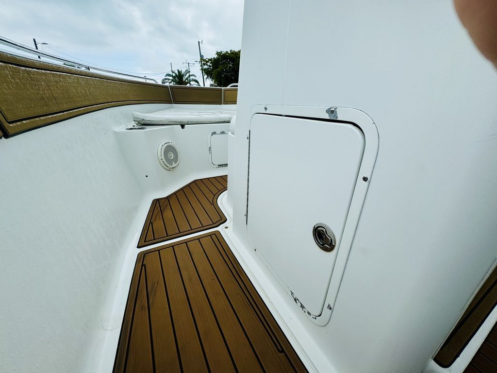 -Integrated anchor locker and molded non-skid deck surfaces for safety.