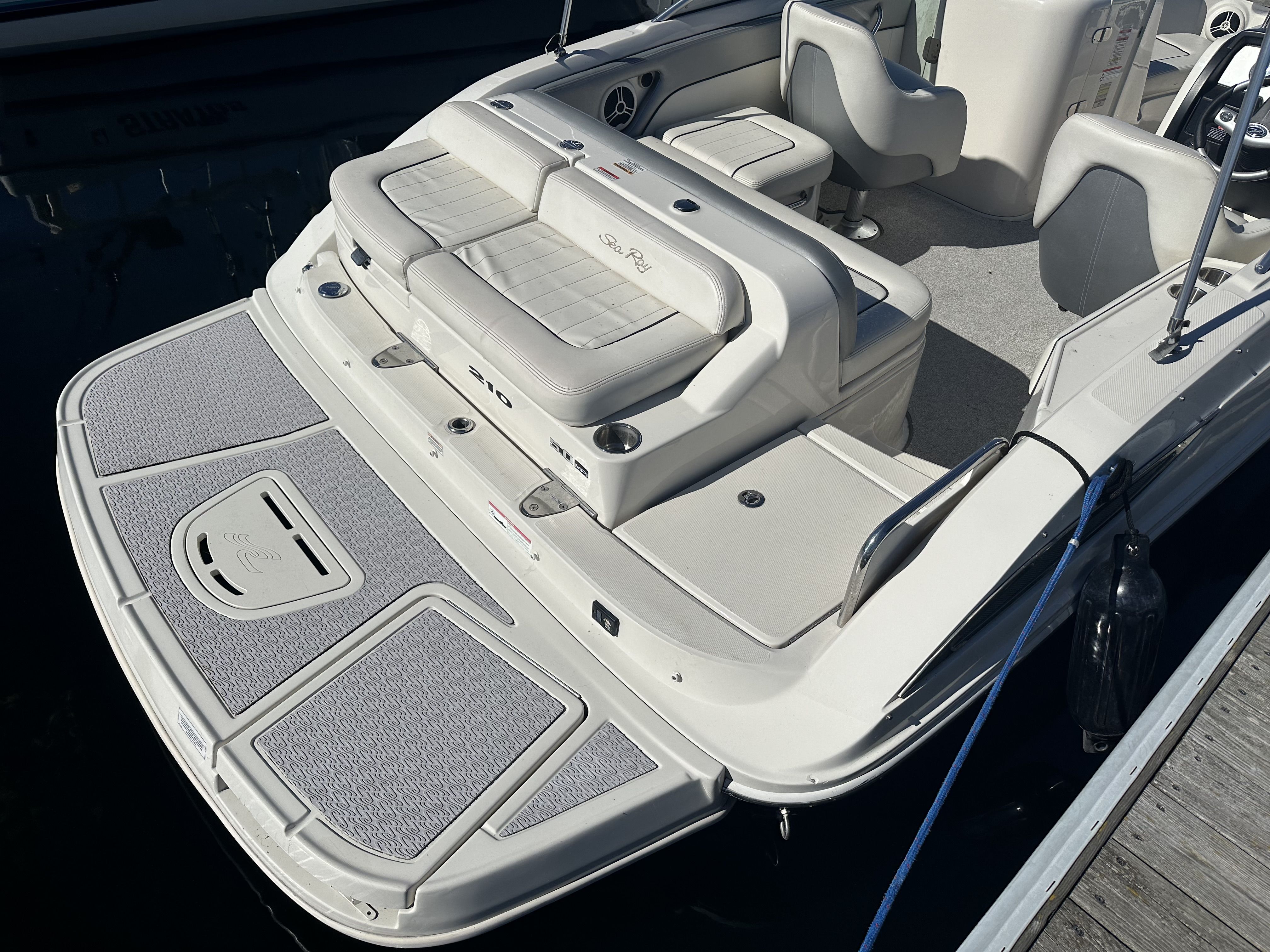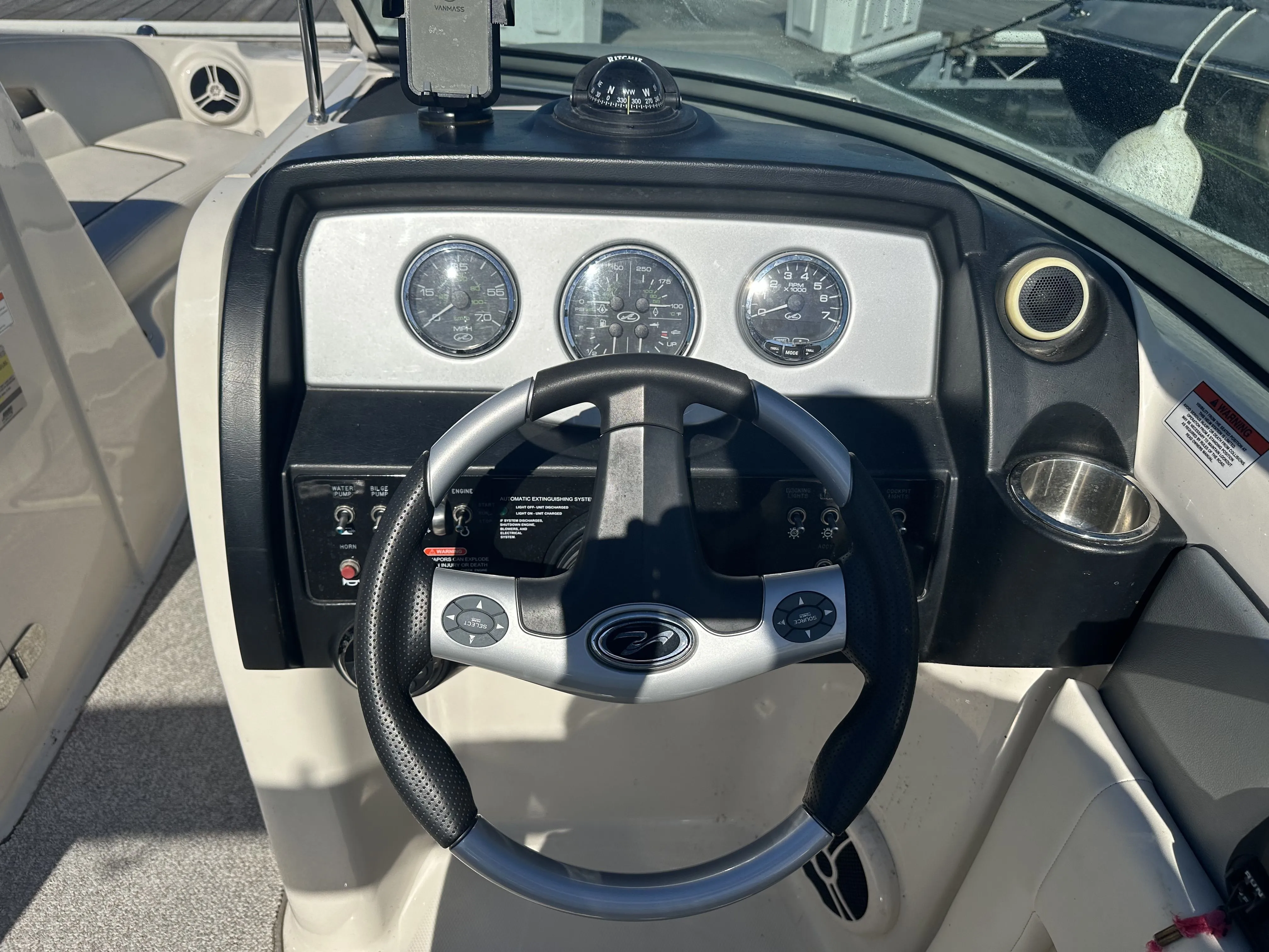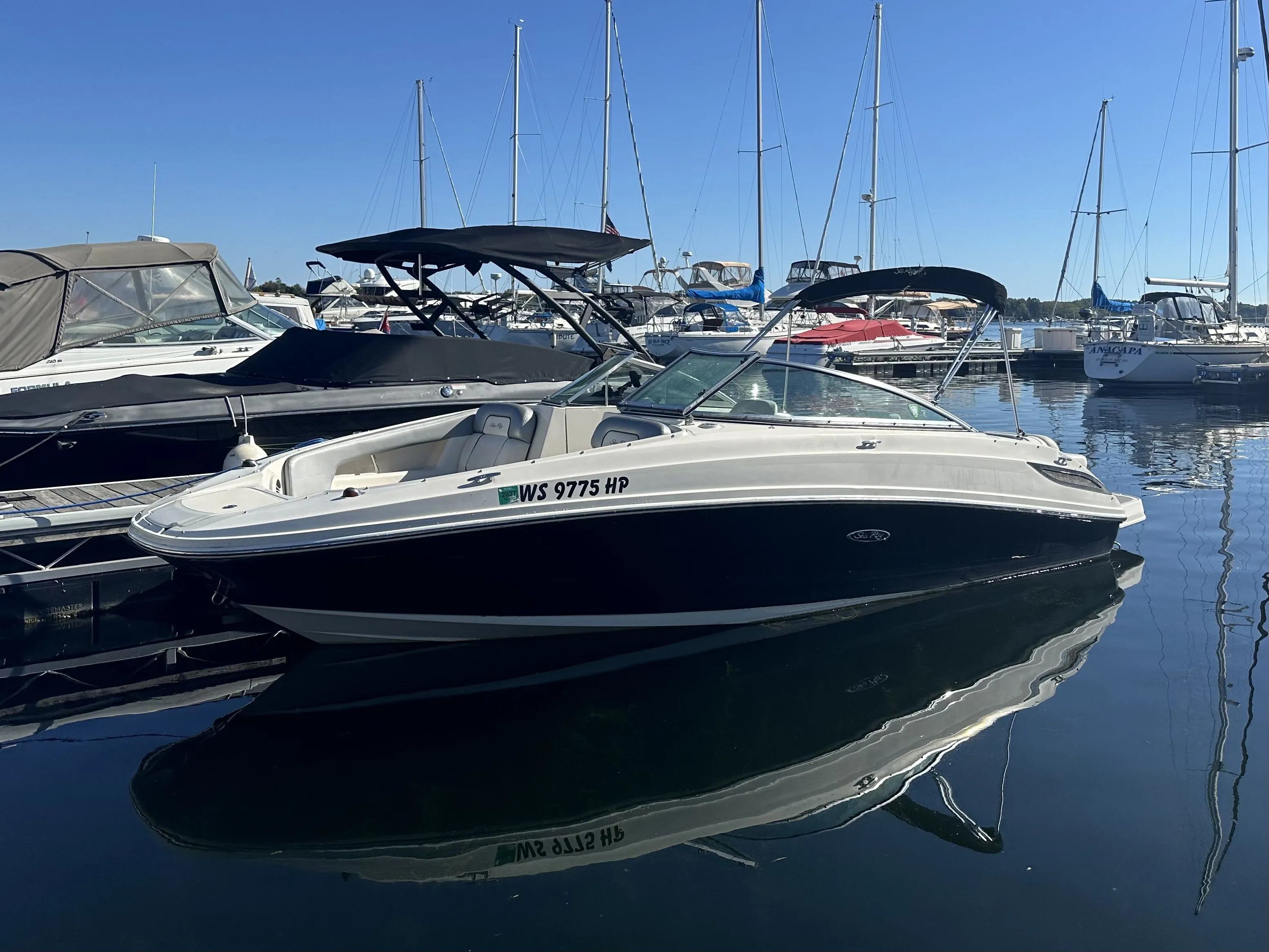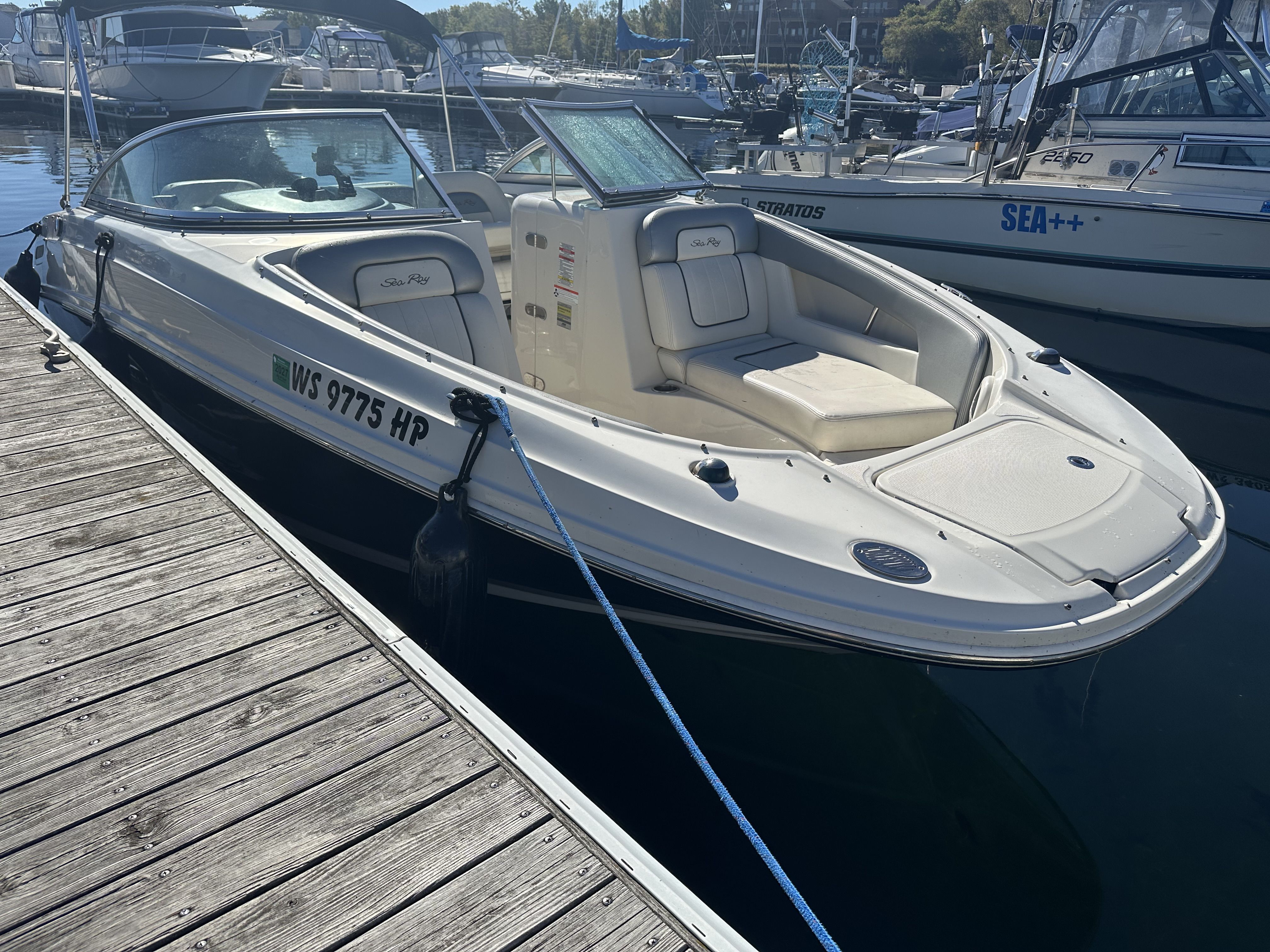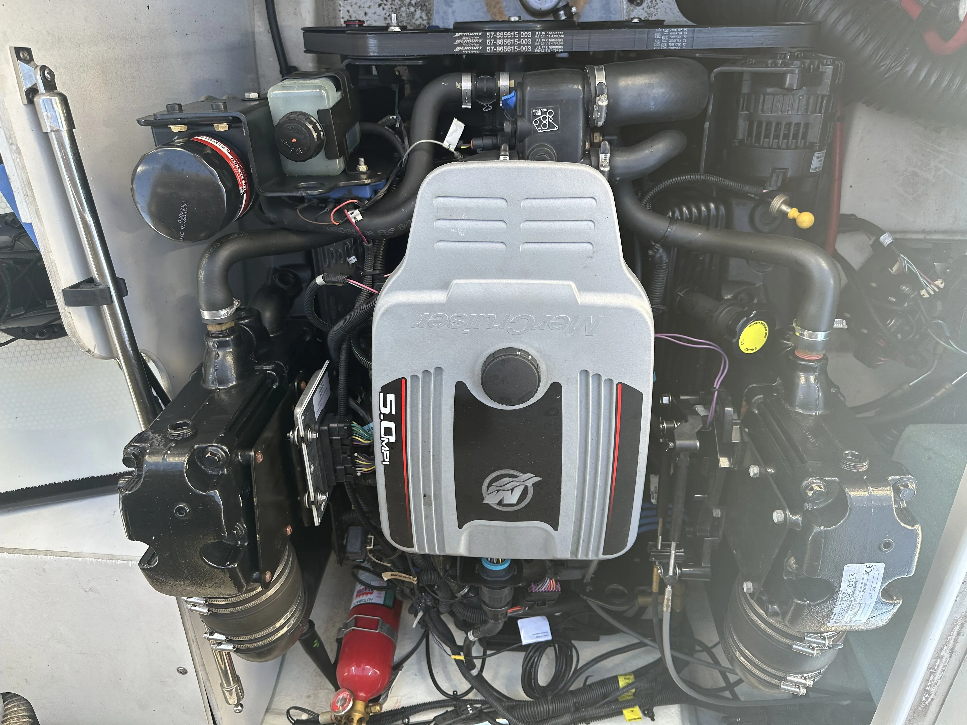 The perfect sport boat for inland lakes or big-water cruising. Plenty of power with the fuel injected V8 Mercruiser with bravo III outdrive. Other highlights include the oversized extended swim platform and pump out head. Note the cushioned jump seas at the stern with a convenient walkthrough transom so you don't have to step on your furniture to get into the boat. Inside storage and easily showable- call to schedule your showing today! Trades considered.