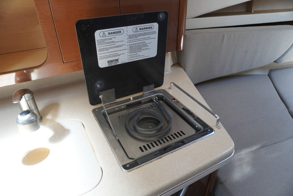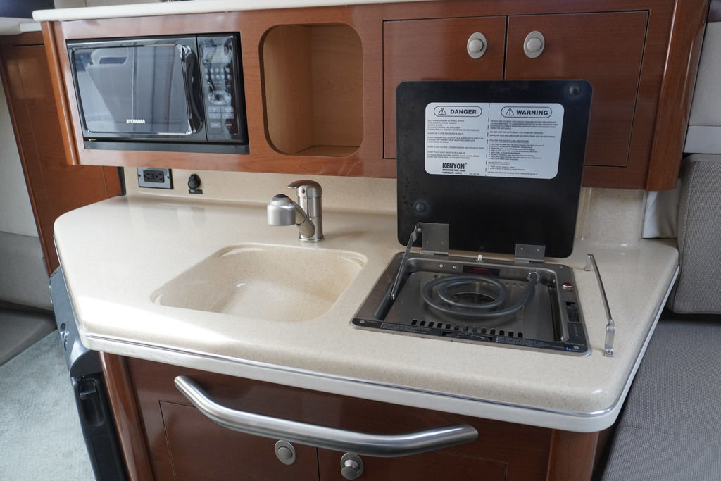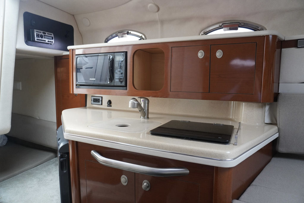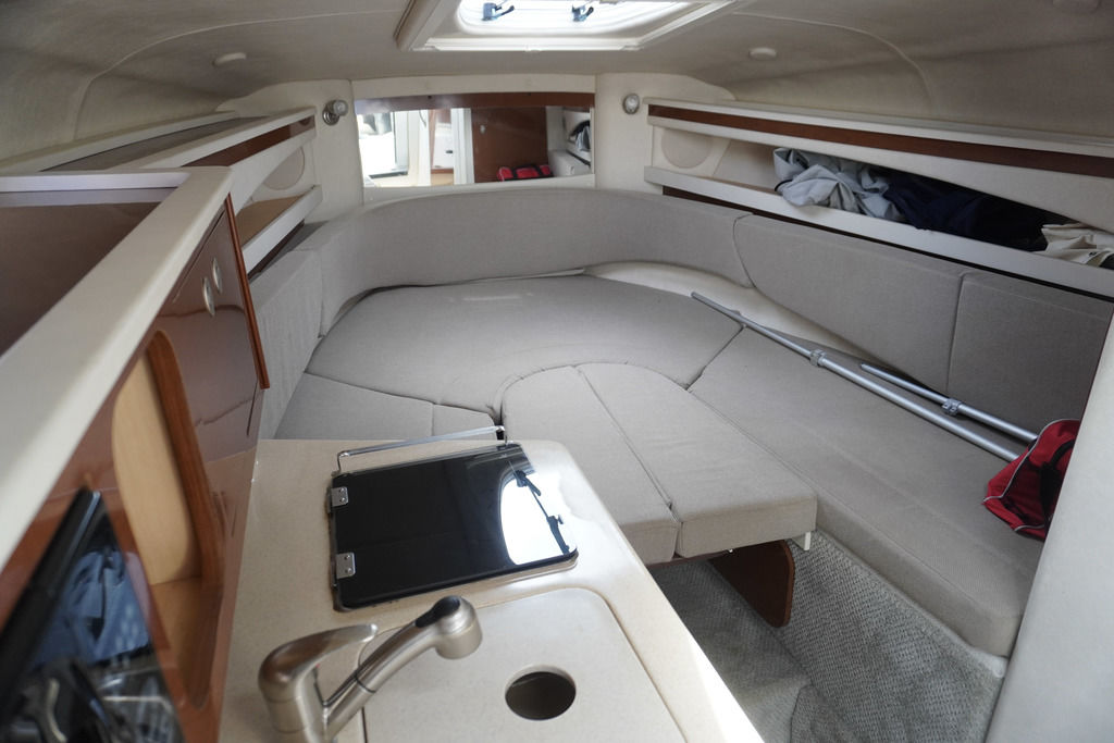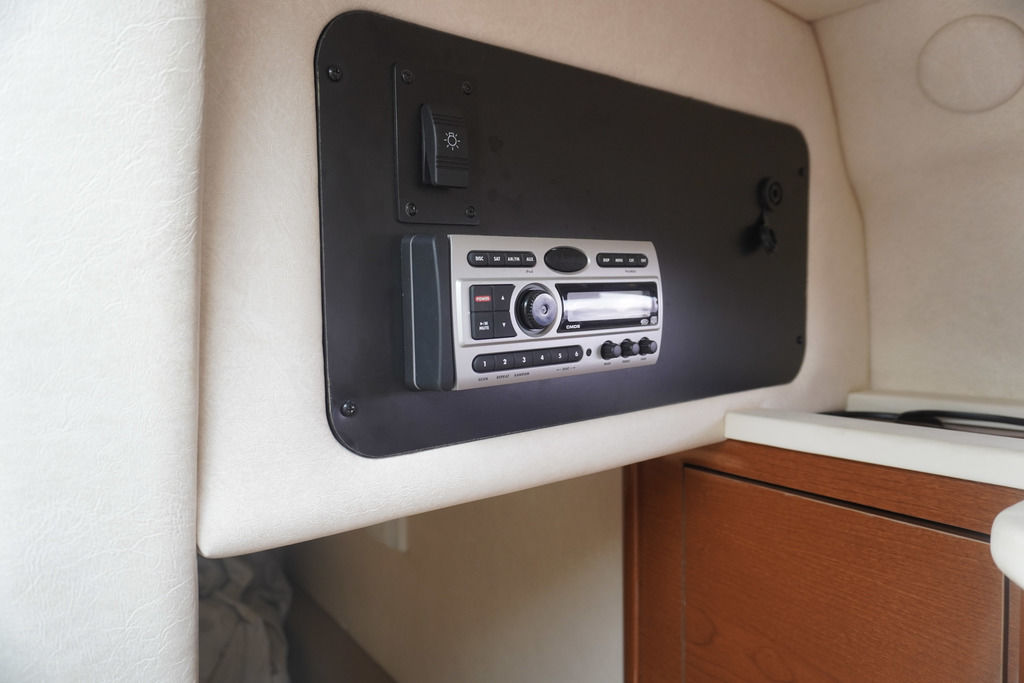 Below deck, the cabin layout is designed for comfort and convenience, with sleeping accommodations for up to four, a full galley, and a private head—making overnight stays relaxing and easy. The onboard generator allows you to enjoy time away from the dock without sacrificing comfort.