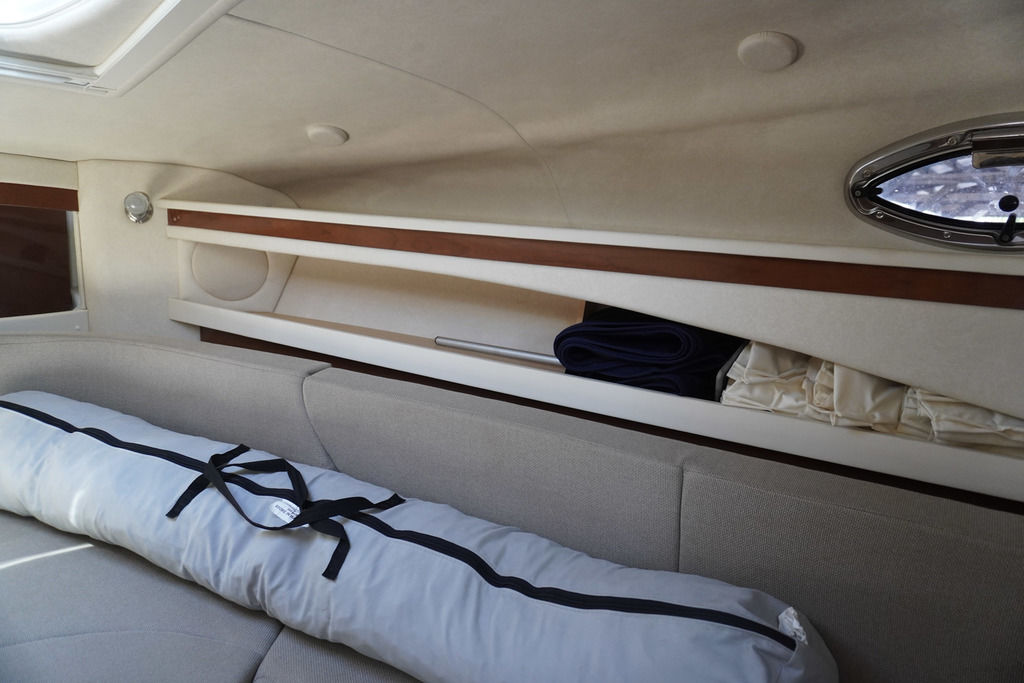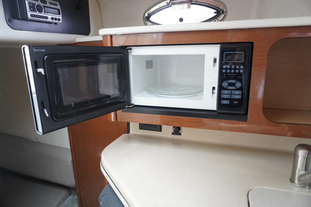 Below deck, the cabin layout is designed for comfort and convenience, with sleeping accommodations for up to four, a full galley, and a private head—making overnight stays relaxing and easy. The onboard generator allows you to enjoy time away from the dock without sacrificing comfort.