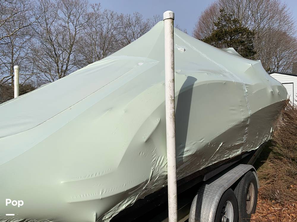 Its decks are covered in SeaDek. Bow cushions have been replaced, as have the batteries. It also has an extended Bimini top.