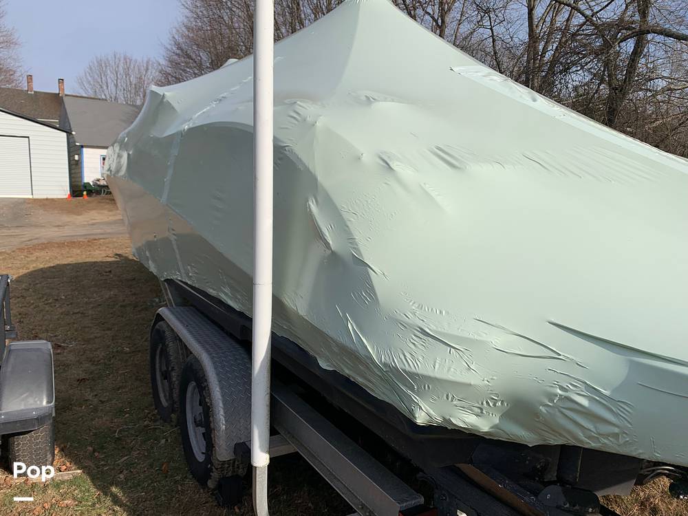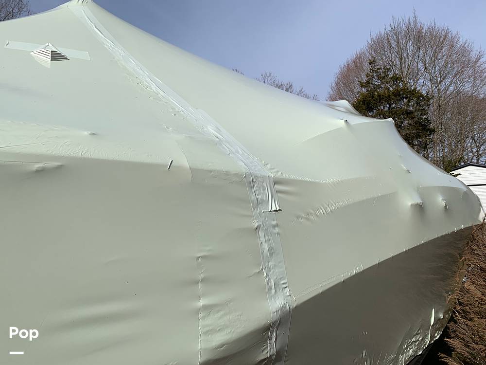 It has a head with pump out, a single berth, and barbeque grill with refrigerator. It has dual Raymarine GPS units, a stereo including subwoofer, and a VHS radio with antenna.