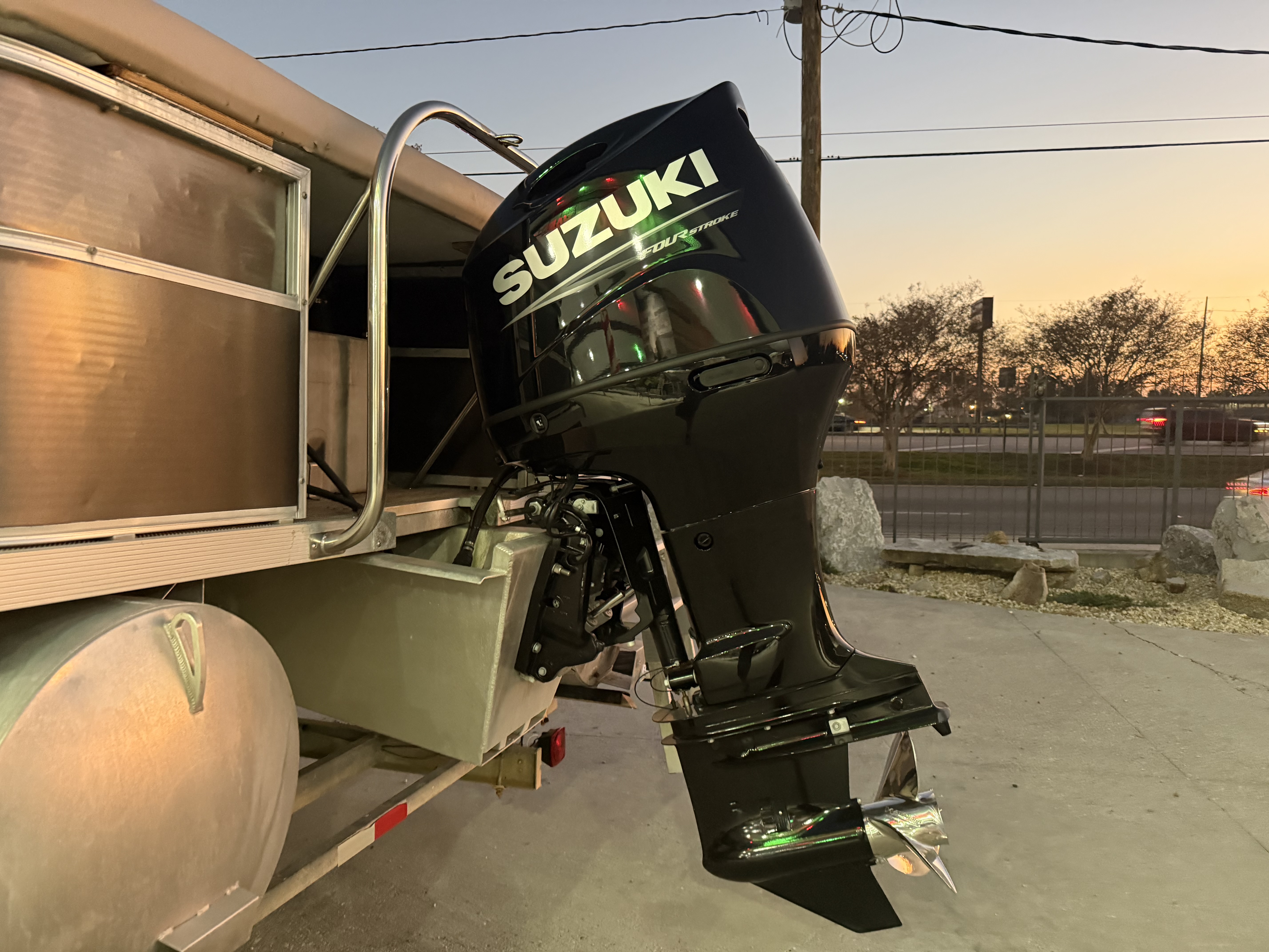 Experience smooth cruising and reliable performance with this clean 25’ South Bay pontoon — upgraded with a brand-new 2023 Suzuki 150 HP Four-Stroke. Whether for relaxing family days or entertaining on the water, this setup offers power, efficiency, and comfort.
