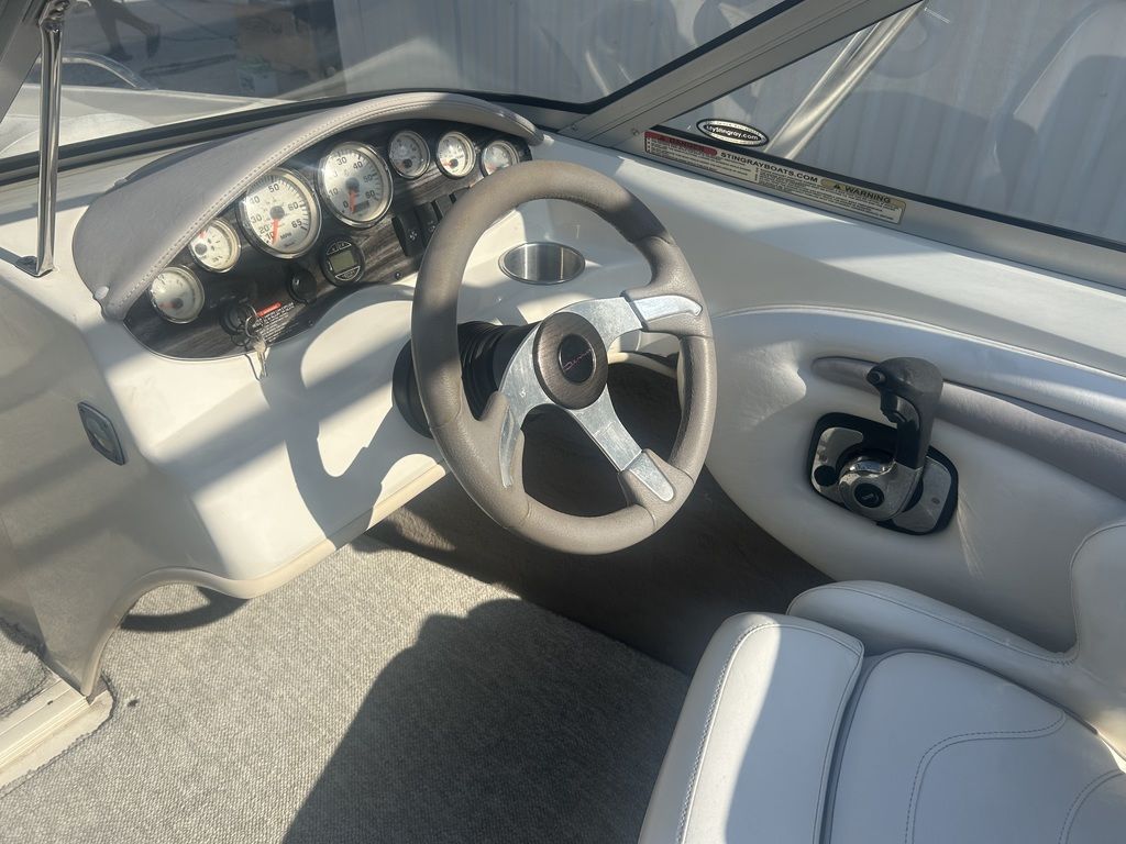 The 2008 Stingray 195LX is a 20-foot runabout powerboat designed for family outings, water sports, and cruising on lakes and calm coastal waters. It features a fiberglass modified-vee hull for performance, a sporty LX configuration with a sundeck and bench seating, and a Volvo Penta stern drive. Key amenities include a spacious contoured bow, large swim platform with a recessed ladder, and a high-power audio system.