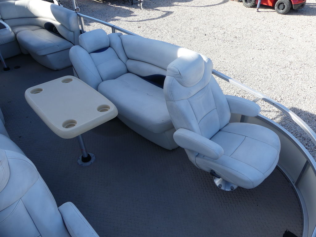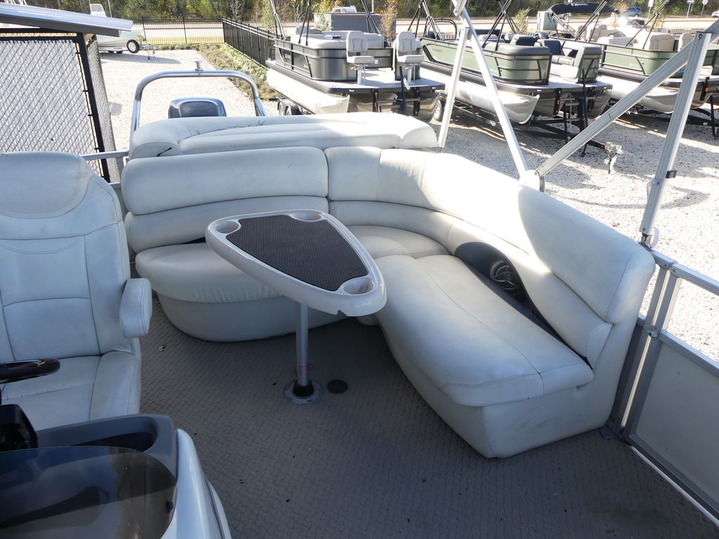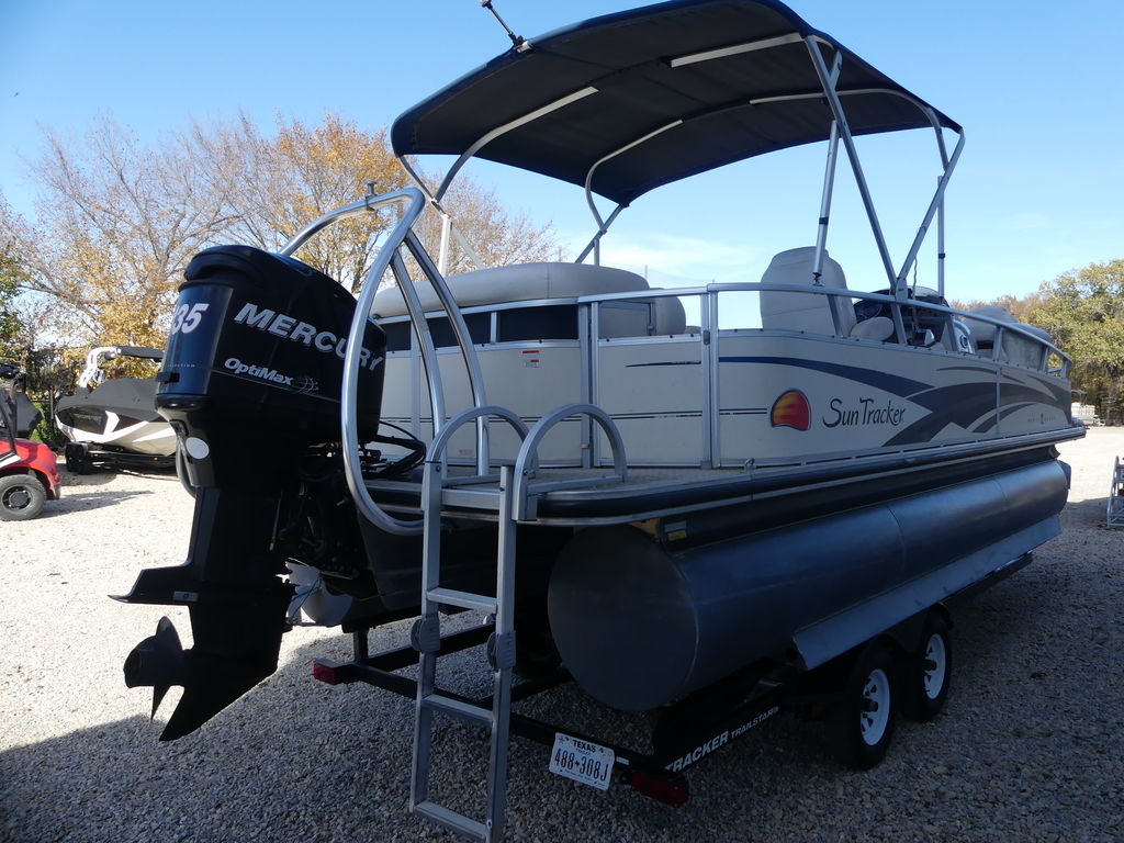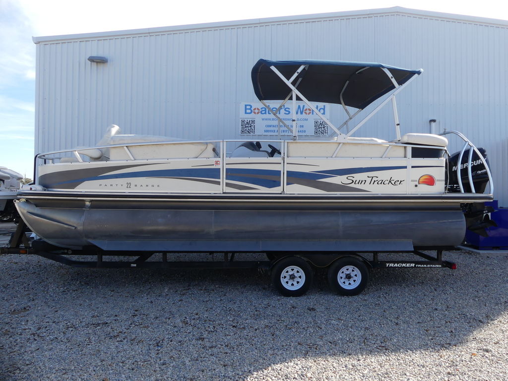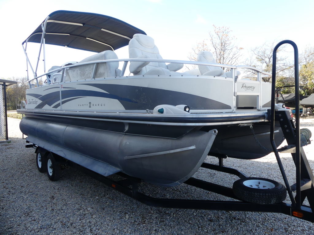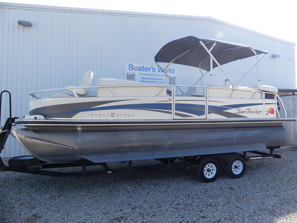 The 2008 Sun Tracker Party Barge 22 is a popular pontoon boat designed for family fun, offering a spacious layout with plush lounge seating, ample storage (like STOW MORE™), and amenities such as cup holders and a sound system, making it great for cruising, fishing, and watersports, often featuring a rear swim platform and powered by a Mercury outboard for a stable, comfortable ride on inland waters. Key features often include durable marine-grade upholstery, a helm station with a swiveling seat, and sometimes an optional XP3 tritoon package for better performance.
