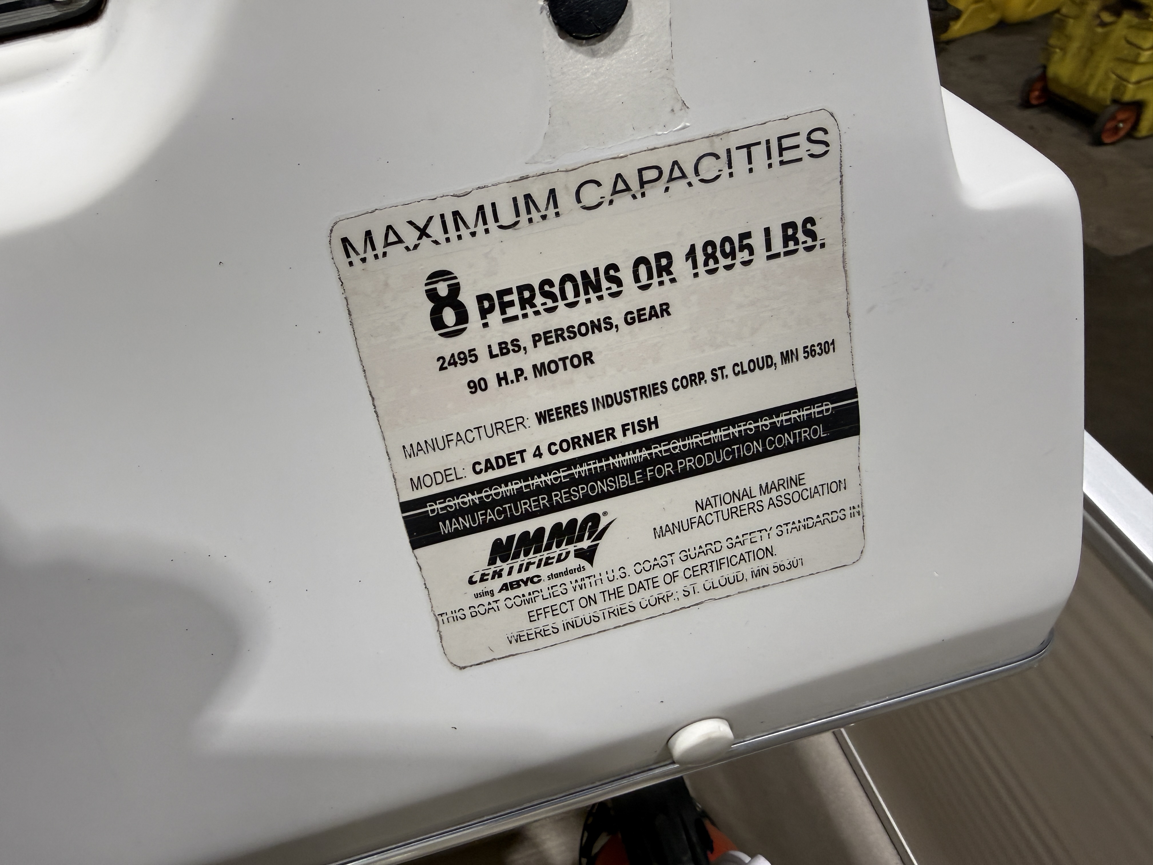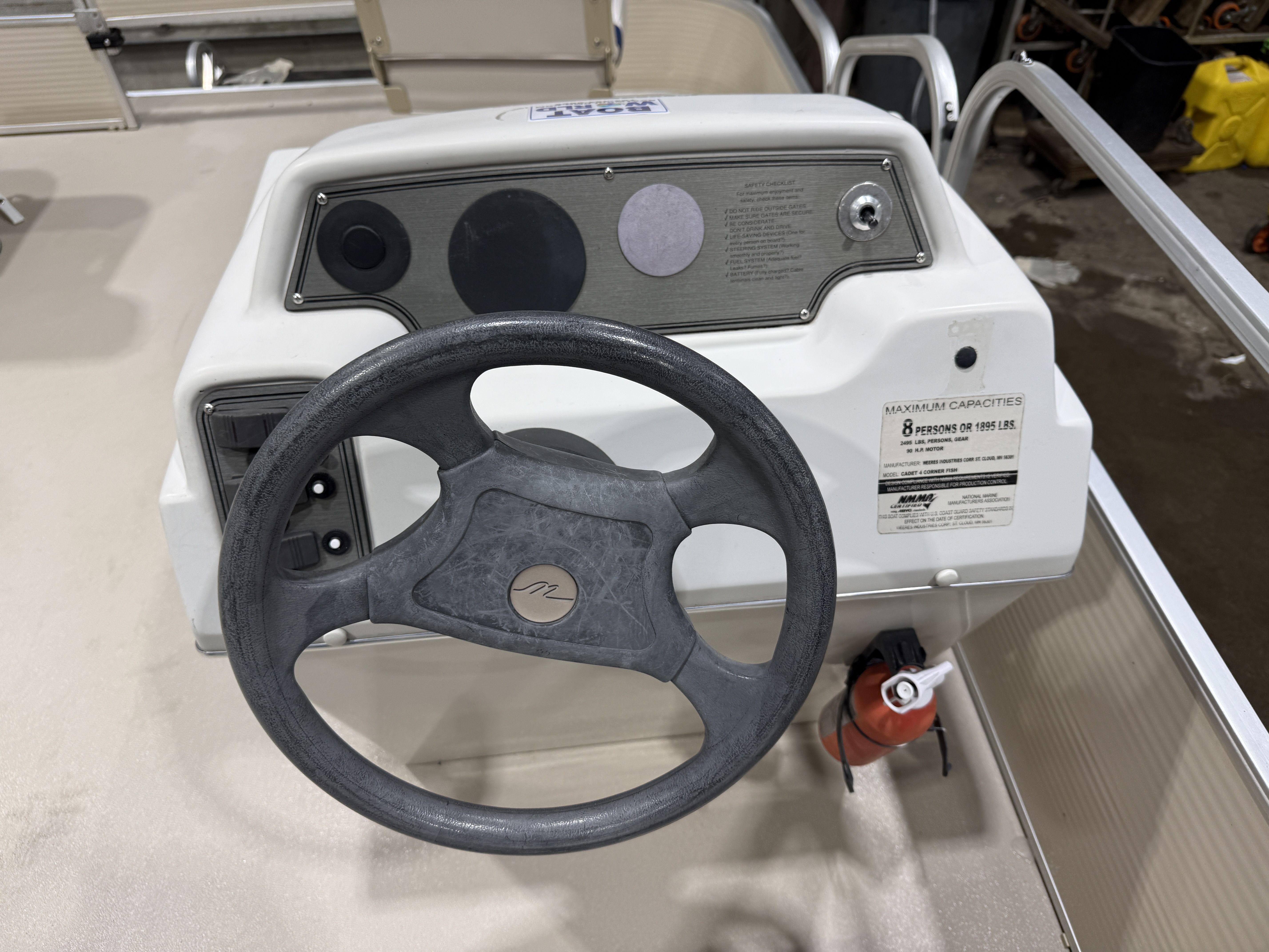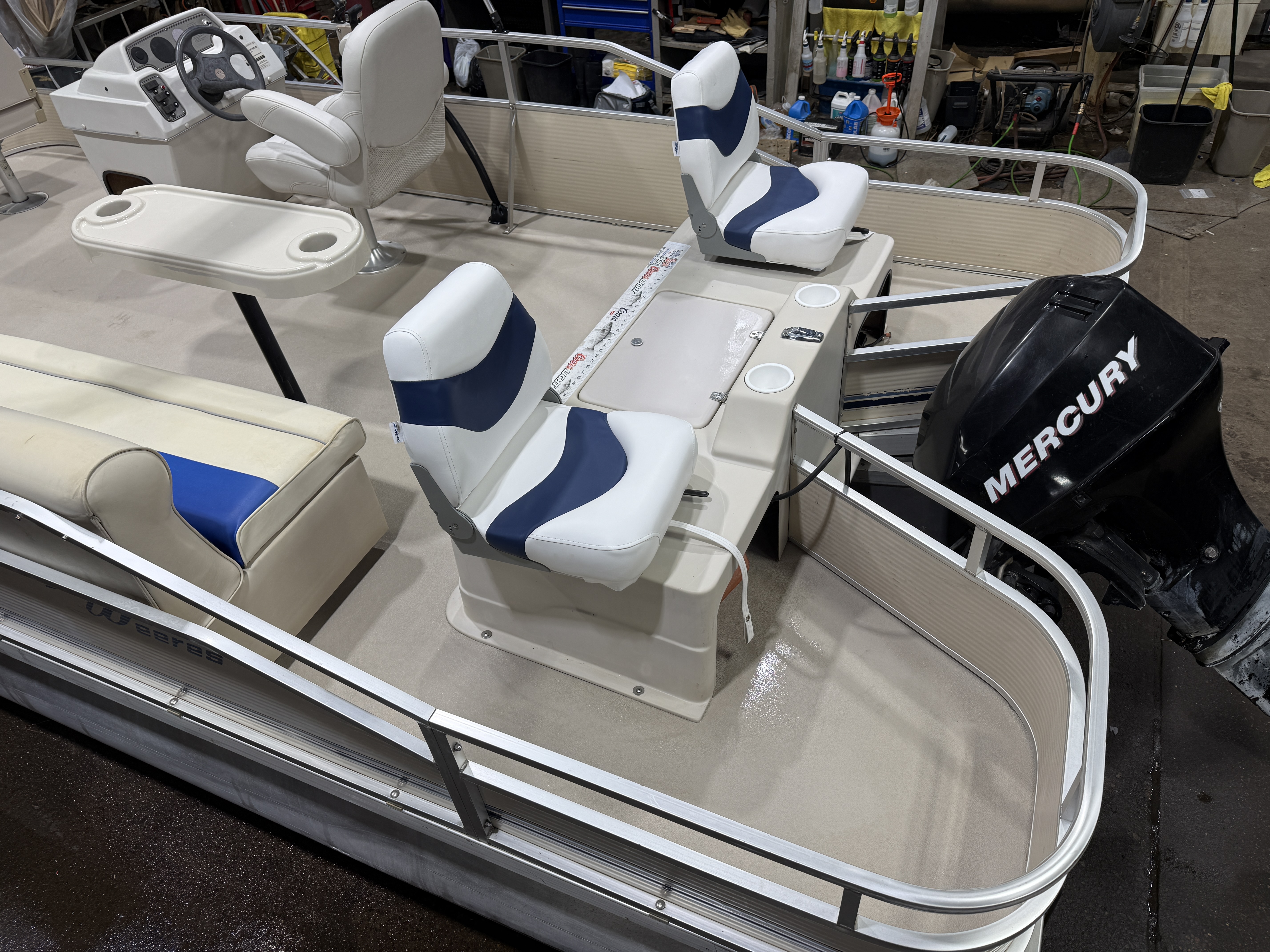 2008 Weeres 180 Cadet Quad Fish Pontoon & Mercury 40HP 4-Stroke EFI. This 18' Quad Fish Pontoon Has 2 Fishing Seats Up Front, Portside Bench Seating With Storage, Captain's Chair, Two Rear Fishing Seats, Rear Livewell, All Vinyl Floor, Front 1/2 Gate, Port & Starboard Side Entry Gates, Bimini Top, Helm Storage, Table, NAV Lights, Docking Lights, Gas Tank, New Starting Battery.