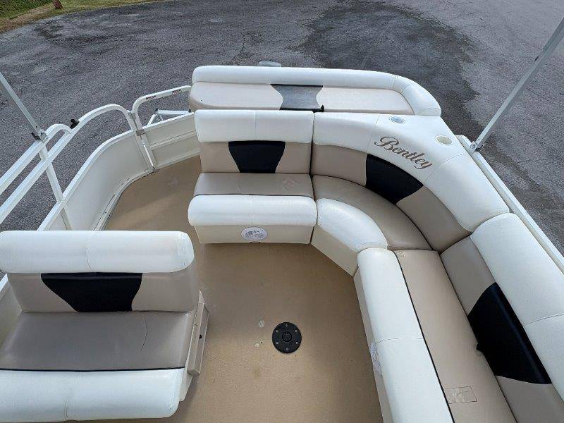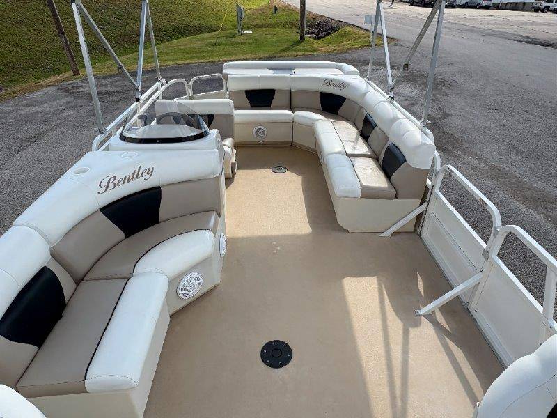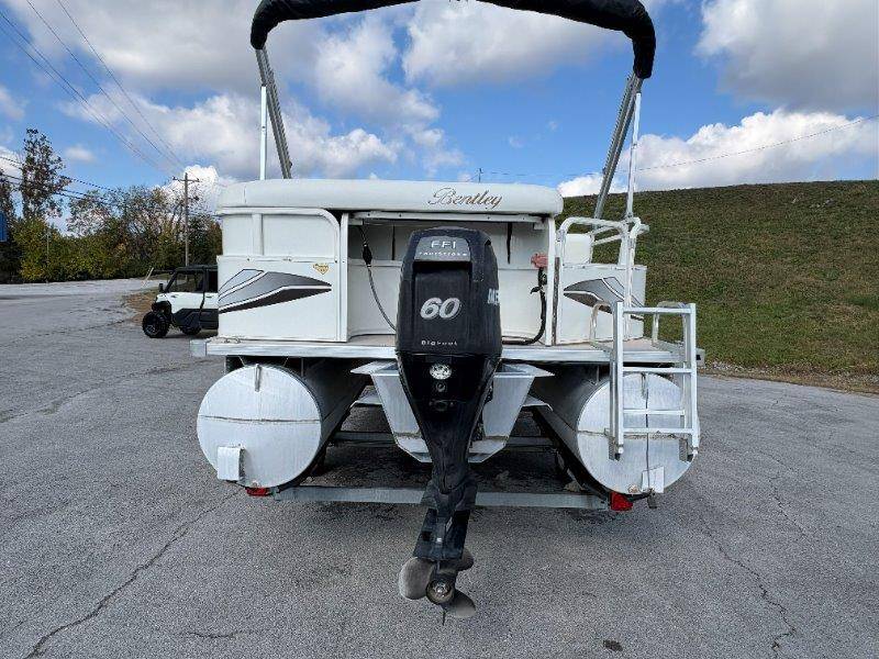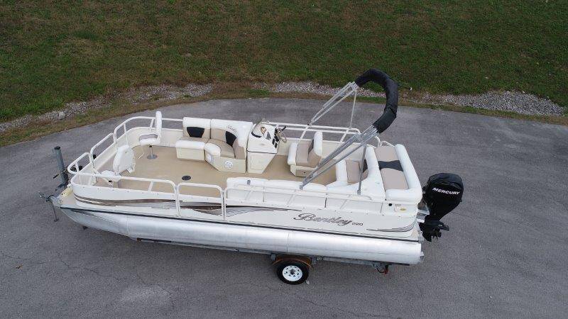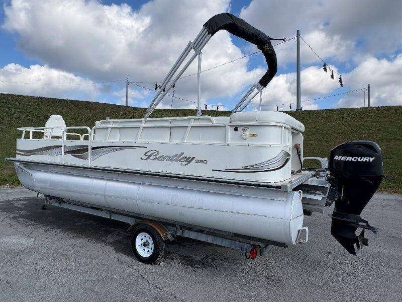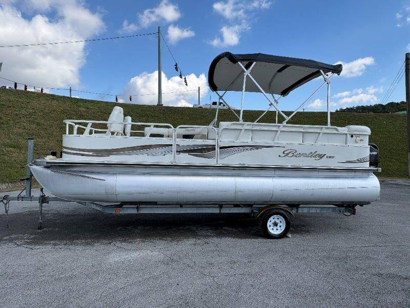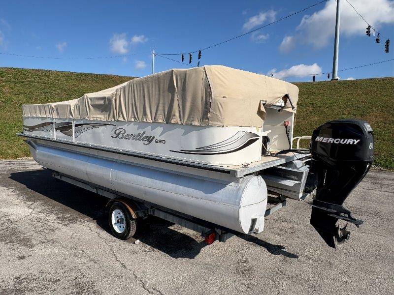 2009 Bentley 220 Fish Mercury Bigfoot 60 Engine is showing 359.8 hours Rear Boarding Ladder Bimini Top with Boot Full Cover Battery On-Off Switch 28.5 Gallon Fuel Capacity 12 Person Capacity Fuel, MPH, RPM and Voltmeter Docking Lights Bow Fishing Seats Single Axle Galvanized Trailer
