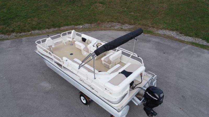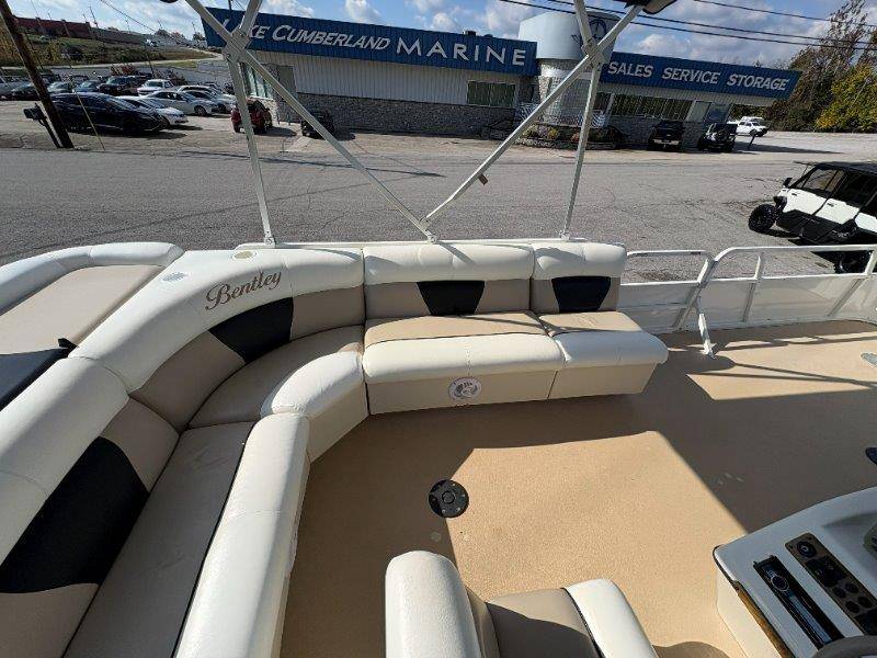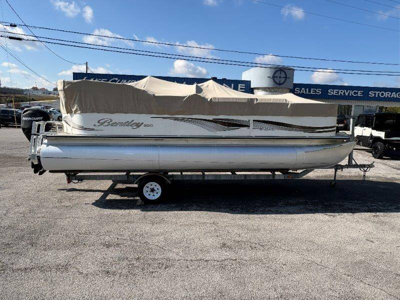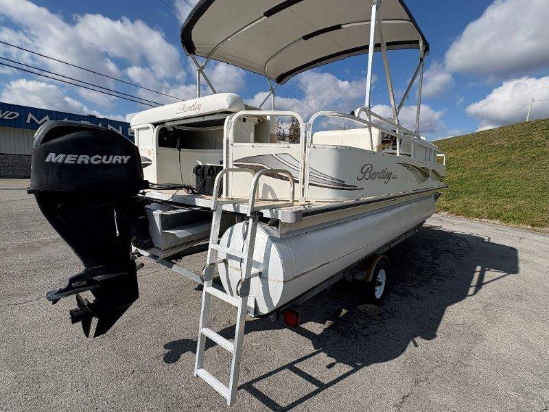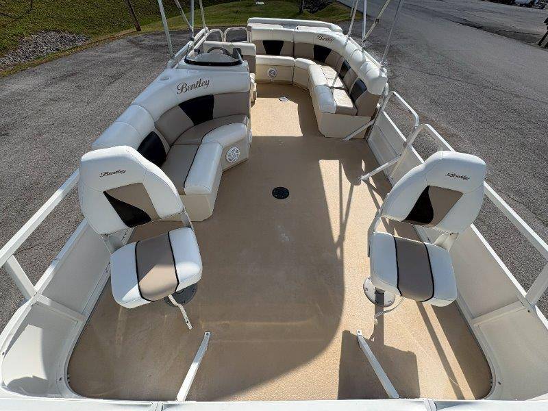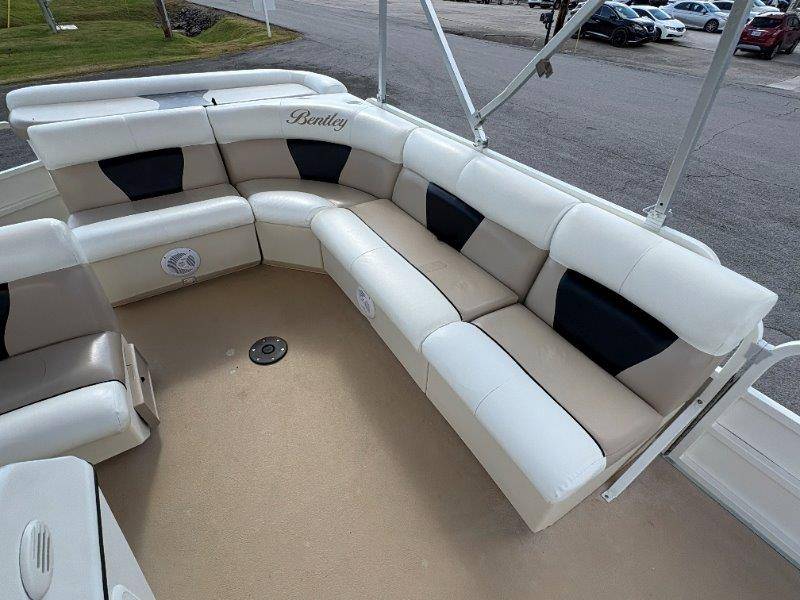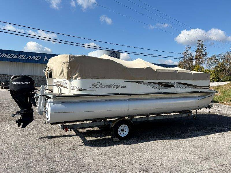 2009 Bentley 220 Fish Mercury Bigfoot 60 Engine is showing 359.8 hours Rear Boarding Ladder Bimini Top with Boot Full Cover Battery On-Off Switch 28.5 Gallon Fuel Capacity 12 Person Capacity Fuel, MPH, RPM and Voltmeter Docking Lights Bow Fishing Seats Single Axle Galvanized Trailer