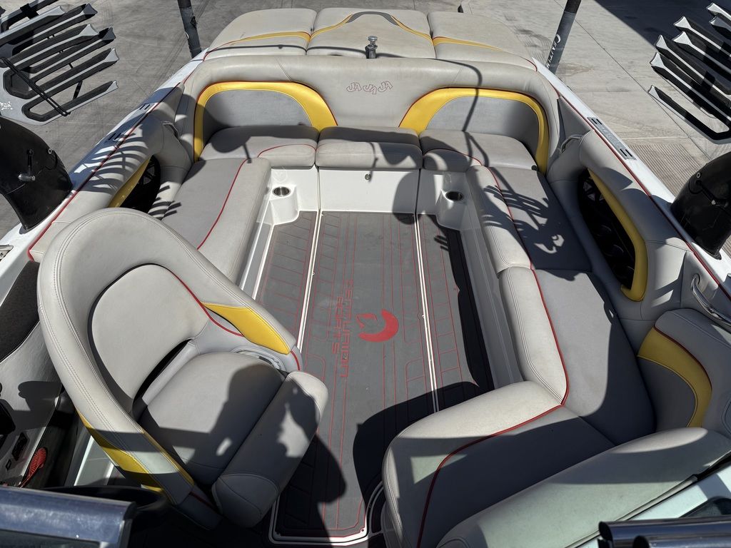 Centurion Boats is perhaps wakesurfing’s biggest champion. That commitment radiates from the Centurion Enzo SV240, the company’s flagship and the official tow boat of the World Wakesurfing Championships. Wakesurf-centric features are everywhere, from the new Skylon wakesurf rack to the Sideswipe Exhaust, which channels fumes to either side of the boat, letting riders tuck into barrels without worry. While the Centurion SV240 can stake a fair claim to the title of world’s best wakesurf boat, it’s also a pro-level wakeboard ride. Thanks to the new colored billet dash and the mirror polish of the bling-bling billet kit, our test boat was the most well-put-together Centurion we’ve been in. With a five-tank, 1,250-pound ballast system, our test boat threw a clean and meaty wake with comfortable transitions and a lot of straight-up pop. This almost-25-footer can handle a lot of weight, so load it up with the sixth available tank and 16 people for one of the best wakesurf sessions you’ll find inland.