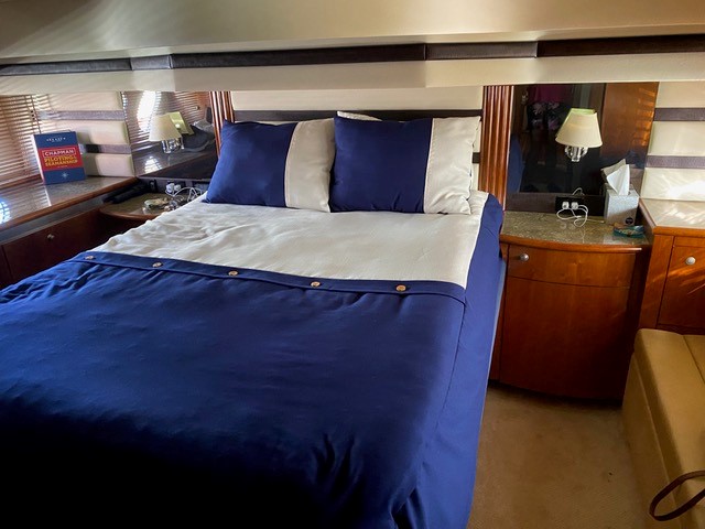 Inside, you’ll find a full-beam master stateroom that offers exceptional space and comfort, along with a versatile salon designed to accommodate family and guests with ease. The interior is thoughtfully appointed, creating a warm and inviting atmosphere throughout.