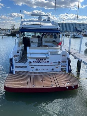 Freshwater / Great Lakes boat since new this vessel features Twin Volvo Penta VIPS 550G 8.1 Liter 496 CID Engines (477 HP each) with only 588 original hours and IPS-C Drives! Docking is a Breeze, thanks to the Volvo Penta Electronic Controls & the EVC Joystick. Notable features include but are not limited to the following: Air-Conditioning & Heat (3-Units) (2) Heads (Vacuflush) w/Vanity/Sink/Stall Showers, Halogen Lights Throughout Vessel, Central Vacuum System, Kohler 7.3kw Generator (330 hours), Windlass Anchor w/Lewmar Polished Stainless Anchor, Bow Thruster, Complete Electronics Package (Raymarine Hybrid Touchscreen Radar/ GPS / Charplotter, Raymarine ST70 Autopilot, Raymarine Speed Log and Depth Sounder, Raymarine Ray240 VHF Marine Radio, Danforth Compass, and Volvo Penta Engine Monitor and Multi-Function Display), Flir Marine Thermal Night Vision Camera, Professionally Installed Fusion Bluetooth Stereo System w/Fusion Head & 2 Control Heads w/JL Speakers, (4) NEW LCD-Flat Screen Televisions, Massive Power Sunroof, Large Refrigerator/Freezer in Salon, Smaller Refrigerators with Drawers in Cockpit, Convenient On-Board Grill in Cockpit, Rear-Facing Cockpit Seat, Underwater Lighting, and MUCH more!