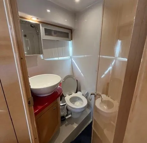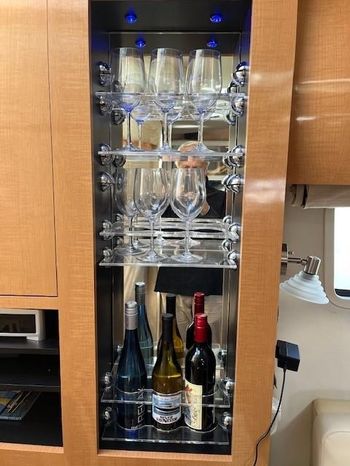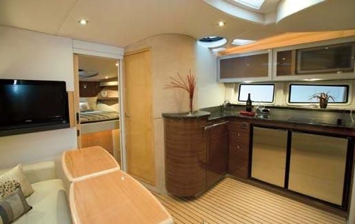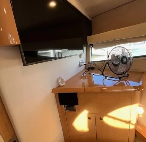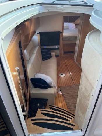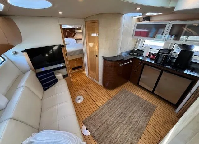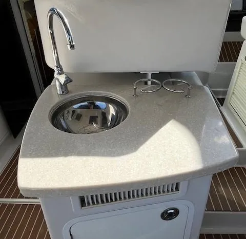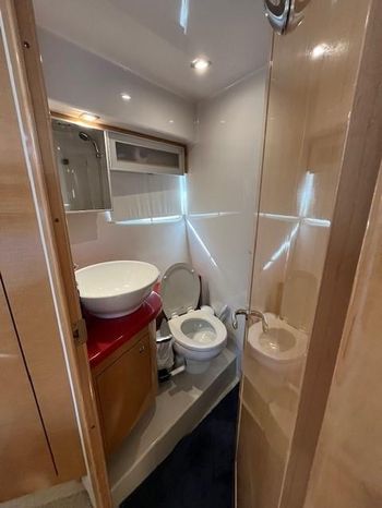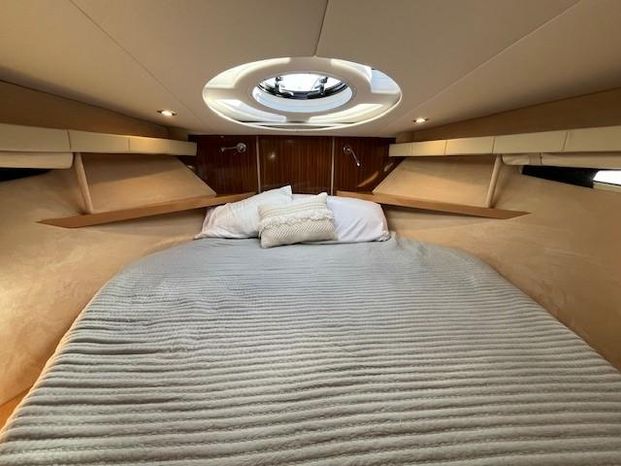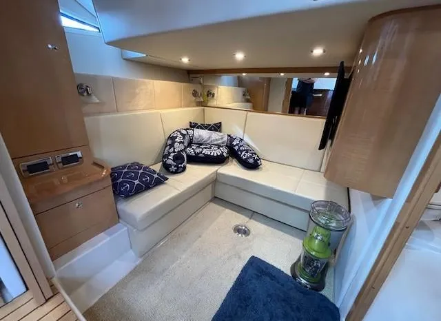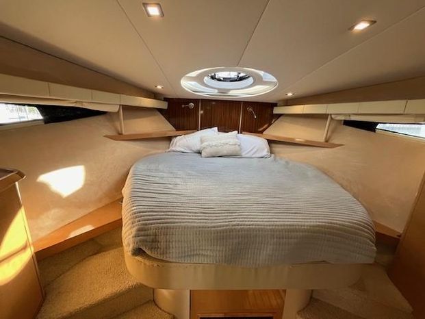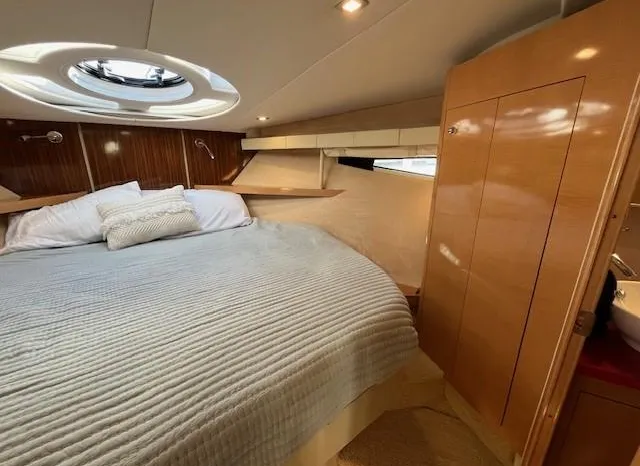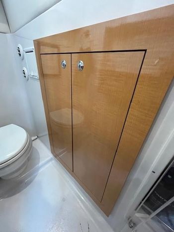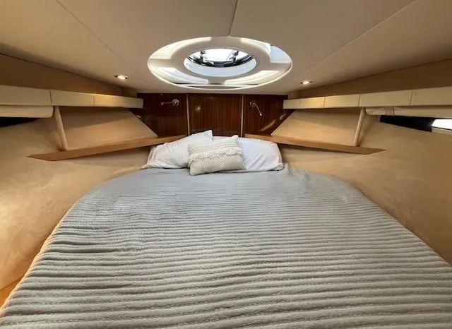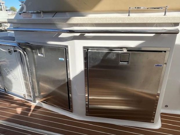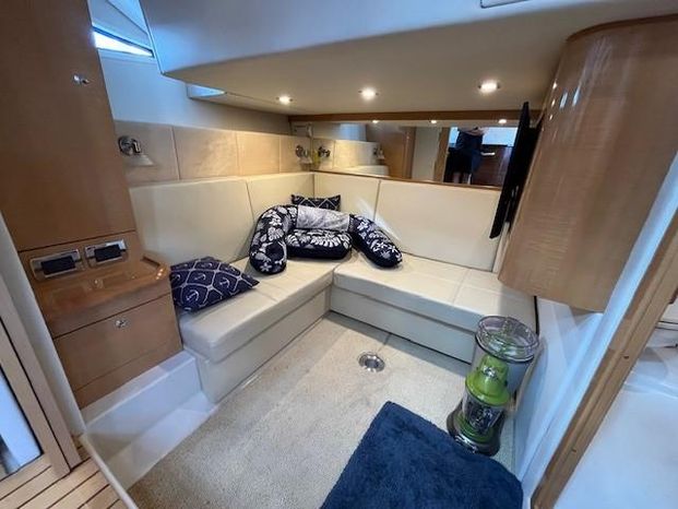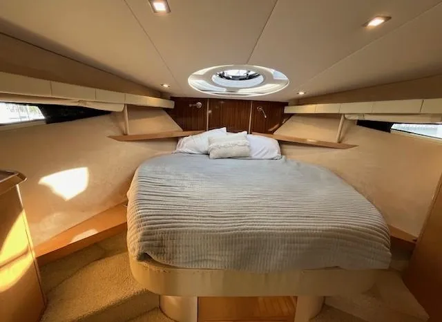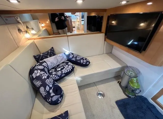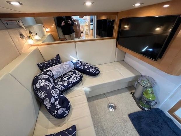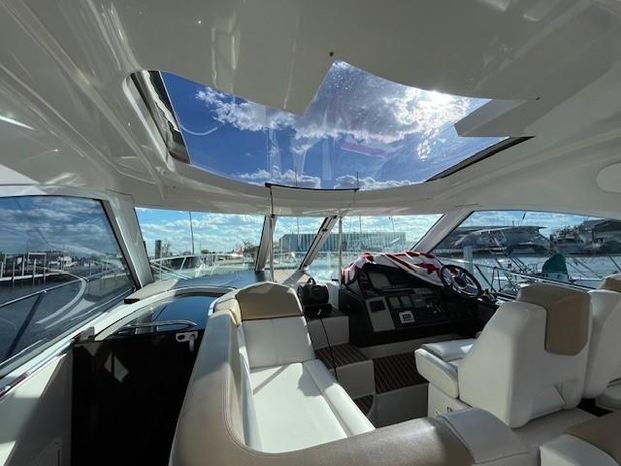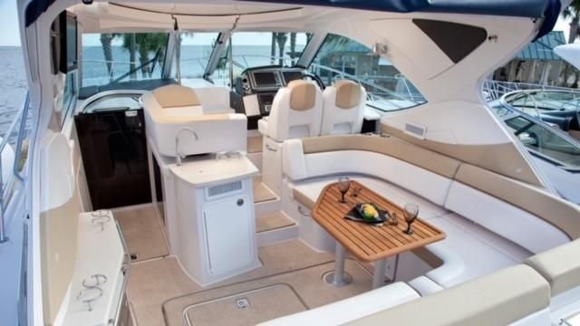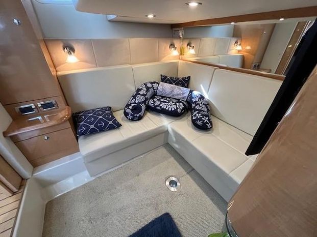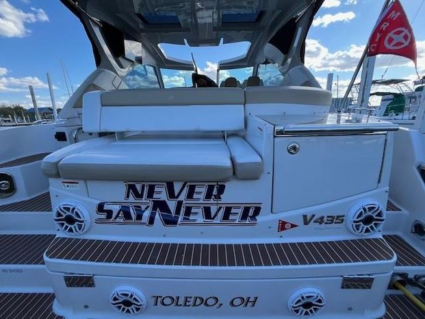 Broker Notes: Four Winns V435 fulfills the long day on the water mission, plus it can serve as a weekend cottage. It is a "big" 40-footer. Its enclosed hardtop with electric sunroof offers a high-end patio/sunroom wherever you drop the hook. It has an accommodation plan that's ideal for entertaining, and it's full of standard conveniences.