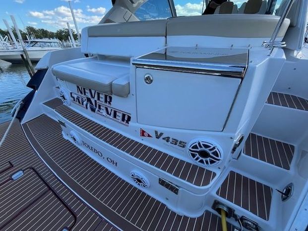 Freshwater / Great Lakes boat since new this vessel features Twin Volvo Penta VIPS 550G 8.1 Liter 496 CID Engines (477 HP each) with only 588 original hours and IPS-C Drives! Docking is a Breeze, thanks to the Volvo Penta Electronic Controls & the EVC Joystick. Notable features include but are not limited to the following: Air-Conditioning & Heat (3-Units) (2) Heads (Vacuflush) w/Vanity/Sink/Stall Showers, Halogen Lights Throughout Vessel, Central Vacuum System, Kohler 7.3kw Generator (330 hours), Windlass Anchor w/Lewmar Polished Stainless Anchor, Bow Thruster, Complete Electronics Package (Raymarine Hybrid Touchscreen Radar/ GPS / Charplotter, Raymarine ST70 Autopilot, Raymarine Speed Log and Depth Sounder, Raymarine Ray240 VHF Marine Radio, Danforth Compass, and Volvo Penta Engine Monitor and Multi-Function Display), Flir Marine Thermal Night Vision Camera, Professionally Installed Fusion Bluetooth Stereo System w/Fusion Head & 2 Control Heads w/JL Speakers, (4) NEW LCD-Flat Screen Televisions, Massive Power Sunroof, Large Refrigerator/Freezer in Salon, Smaller Refrigerators with Drawers in Cockpit, Convenient On-Board Grill in Cockpit, Rear-Facing Cockpit Seat, Underwater Lighting, and MUCH more!