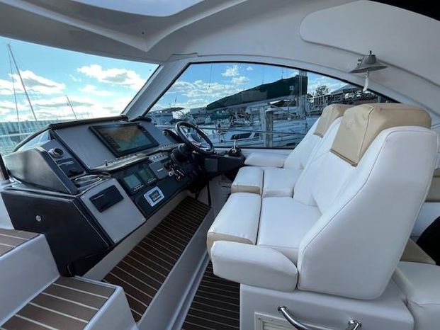 Freshwater / Great Lakes boat since new this vessel features Twin Volvo Penta VIPS 550G 8.1 Liter 496 CID Engines (477 HP each) with only 588 original hours and IPS-C Drives! Docking is a Breeze, thanks to the Volvo Penta Electronic Controls & the EVC Joystick. Notable features include but are not limited to the following: Air-Conditioning & Heat (3-Units) (2) Heads (Vacuflush) w/Vanity/Sink/Stall Showers, Halogen Lights Throughout Vessel, Central Vacuum System, Kohler 7.3kw Generator (330 hours), Windlass Anchor w/Lewmar Polished Stainless Anchor, Bow Thruster, Complete Electronics Package (Raymarine Hybrid Touchscreen Radar/ GPS / Charplotter, Raymarine ST70 Autopilot, Raymarine Speed Log and Depth Sounder, Raymarine Ray240 VHF Marine Radio, Danforth Compass, and Volvo Penta Engine Monitor and Multi-Function Display), Flir Marine Thermal Night Vision Camera, Professionally Installed Fusion Bluetooth Stereo System w/Fusion Head & 2 Control Heads w/JL Speakers, (4) NEW LCD-Flat Screen Televisions, Massive Power Sunroof, Large Refrigerator/Freezer in Salon, Smaller Refrigerators with Drawers in Cockpit, Convenient On-Board Grill in Cockpit, Rear-Facing Cockpit Seat, Underwater Lighting, and MUCH more!