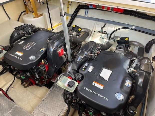 Freshwater / Great Lakes boat since new this vessel features Twin Volvo Penta VIPS 550G 8.1 Liter 496 CID Engines (477 HP each) with only 588 original hours and IPS-C Drives! Docking is a Breeze, thanks to the Volvo Penta Electronic Controls & the EVC Joystick. Notable features include but are not limited to the following: Air-Conditioning & Heat (3-Units) (2) Heads (Vacuflush) w/Vanity/Sink/Stall Showers, Halogen Lights Throughout Vessel, Central Vacuum System, Kohler 7.3kw Generator (330 hours), Windlass Anchor w/Lewmar Polished Stainless Anchor, Bow Thruster, Complete Electronics Package (Raymarine Hybrid Touchscreen Radar/ GPS / Charplotter, Raymarine ST70 Autopilot, Raymarine Speed Log and Depth Sounder, Raymarine Ray240 VHF Marine Radio, Danforth Compass, and Volvo Penta Engine Monitor and Multi-Function Display), Flir Marine Thermal Night Vision Camera, Professionally Installed Fusion Bluetooth Stereo System w/Fusion Head & 2 Control Heads w/JL Speakers, (4) NEW LCD-Flat Screen Televisions, Massive Power Sunroof, Large Refrigerator/Freezer in Salon, Smaller Refrigerators with Drawers in Cockpit, Convenient On-Board Grill in Cockpit, Rear-Facing Cockpit Seat, Underwater Lighting, and MUCH more!