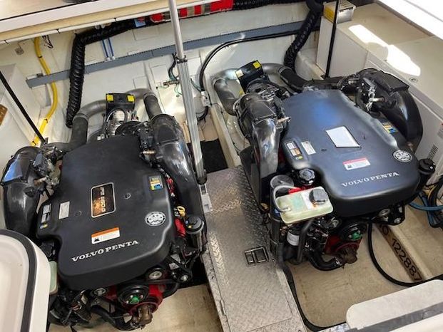 Freshwater / Great Lakes boat since new this vessel features Twin Volvo Penta VIPS 550G 8.1 Liter 496 CID Engines (477 HP each) with only 588 original hours and IPS-C Drives! Docking is a Breeze, thanks to the Volvo Penta Electronic Controls & the EVC Joystick. Notable features include but are not limited to the following: Air-Conditioning & Heat (3-Units) (2) Heads (Vacuflush) w/Vanity/Sink/Stall Showers, Halogen Lights Throughout Vessel, Central Vacuum System, Kohler 7.3kw Generator (330 hours), Windlass Anchor w/Lewmar Polished Stainless Anchor, Bow Thruster, Complete Electronics Package (Raymarine Hybrid Touchscreen Radar/ GPS / Charplotter, Raymarine ST70 Autopilot, Raymarine Speed Log and Depth Sounder, Raymarine Ray240 VHF Marine Radio, Danforth Compass, and Volvo Penta Engine Monitor and Multi-Function Display), Flir Marine Thermal Night Vision Camera, Professionally Installed Fusion Bluetooth Stereo System w/Fusion Head & 2 Control Heads w/JL Speakers, (4) NEW LCD-Flat Screen Televisions, Massive Power Sunroof, Large Refrigerator/Freezer in Salon, Smaller Refrigerators with Drawers in Cockpit, Convenient On-Board Grill in Cockpit, Rear-Facing Cockpit Seat, Underwater Lighting, and MUCH more!