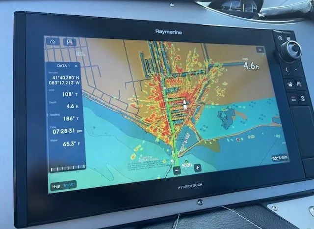Freshwater / Great Lakes boat since new this vessel features Twin Volvo Penta VIPS 550G 8.1 Liter 496 CID Engines (477 HP each) with only 588 original hours and IPS-C Drives! Docking is a Breeze, thanks to the Volvo Penta Electronic Controls & the EVC Joystick. Notable features include but are not limited to the following: Air-Conditioning & Heat (3-Units) (2) Heads (Vacuflush) w/Vanity/Sink/Stall Showers, Halogen Lights Throughout Vessel, Central Vacuum System, Kohler 7.3kw Generator (330 hours), Windlass Anchor w/Lewmar Polished Stainless Anchor, Bow Thruster, Complete Electronics Package (Raymarine Hybrid Touchscreen Radar/ GPS / Charplotter, Raymarine ST70 Autopilot, Raymarine Speed Log and Depth Sounder, Raymarine Ray240 VHF Marine Radio, Danforth Compass, and Volvo Penta Engine Monitor and Multi-Function Display), Flir Marine Thermal Night Vision Camera, Professionally Installed Fusion Bluetooth Stereo System w/Fusion Head & 2 Control Heads w/JL Speakers, (4) NEW LCD-Flat Screen Televisions, Massive Power Sunroof, Large Refrigerator/Freezer in Salon, Smaller Refrigerators with Drawers in Cockpit, Convenient On-Board Grill in Cockpit, Rear-Facing Cockpit Seat, Underwater Lighting, and MUCH more!