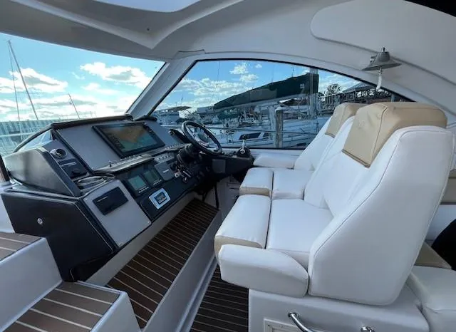 Freshwater / Great Lakes boat since new this vessel features Twin Volvo Penta VIPS 550G 8.1 Liter 496 CID Engines (477 HP each) with only 588 original hours and IPS-C Drives! Docking is a Breeze, thanks to the Volvo Penta Electronic Controls & the EVC Joystick. Notable features include but are not limited to the following: Air-Conditioning & Heat (3-Units) (2) Heads (Vacuflush) w/Vanity/Sink/Stall Showers, Halogen Lights Throughout Vessel, Central Vacuum System, Kohler 7.3kw Generator (330 hours), Windlass Anchor w/Lewmar Polished Stainless Anchor, Bow Thruster, Complete Electronics Package (Raymarine Hybrid Touchscreen Radar/ GPS / Charplotter, Raymarine ST70 Autopilot, Raymarine Speed Log and Depth Sounder, Raymarine Ray240 VHF Marine Radio, Danforth Compass, and Volvo Penta Engine Monitor and Multi-Function Display), Flir Marine Thermal Night Vision Camera, Professionally Installed Fusion Bluetooth Stereo System w/Fusion Head & 2 Control Heads w/JL Speakers, (4) NEW LCD-Flat Screen Televisions, Massive Power Sunroof, Large Refrigerator/Freezer in Salon, Smaller Refrigerators with Drawers in Cockpit, Convenient On-Board Grill in Cockpit, Rear-Facing Cockpit Seat, Underwater Lighting, and MUCH more!