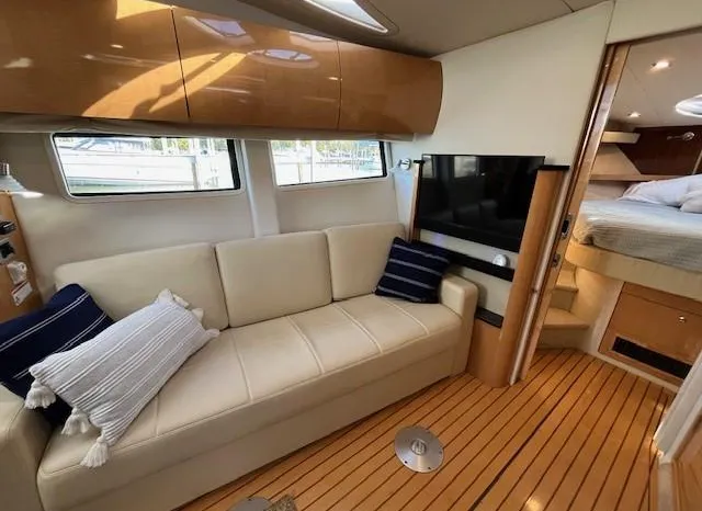 Freshwater / Great Lakes boat since new this vessel features Twin Volvo Penta VIPS 550G 8.1 Liter 496 CID Engines (477 HP each) with only 588 original hours and IPS-C Drives! Docking is a Breeze, thanks to the Volvo Penta Electronic Controls & the EVC Joystick. Notable features include but are not limited to the following: Air-Conditioning & Heat (3-Units) (2) Heads (Vacuflush) w/Vanity/Sink/Stall Showers, Halogen Lights Throughout Vessel, Central Vacuum System, Kohler 7.3kw Generator (330 hours), Windlass Anchor w/Lewmar Polished Stainless Anchor, Bow Thruster, Complete Electronics Package (Raymarine Hybrid Touchscreen Radar/ GPS / Charplotter, Raymarine ST70 Autopilot, Raymarine Speed Log and Depth Sounder, Raymarine Ray240 VHF Marine Radio, Danforth Compass, and Volvo Penta Engine Monitor and Multi-Function Display), Flir Marine Thermal Night Vision Camera, Professionally Installed Fusion Bluetooth Stereo System w/Fusion Head & 2 Control Heads w/JL Speakers, (4) NEW LCD-Flat Screen Televisions, Massive Power Sunroof, Large Refrigerator/Freezer in Salon, Smaller Refrigerators with Drawers in Cockpit, Convenient On-Board Grill in Cockpit, Rear-Facing Cockpit Seat, Underwater Lighting, and MUCH more!