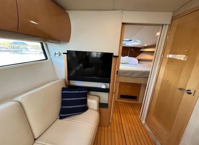 Freshwater / Great Lakes boat since new this vessel features Twin Volvo Penta VIPS 550G 8.1 Liter 496 CID Engines (477 HP each) with only 588 original hours and IPS-C Drives! Docking is a Breeze, thanks to the Volvo Penta Electronic Controls & the EVC Joystick. Notable features include but are not limited to the following: Air-Conditioning & Heat (3-Units) (2) Heads (Vacuflush) w/Vanity/Sink/Stall Showers, Halogen Lights Throughout Vessel, Central Vacuum System, Kohler 7.3kw Generator (330 hours), Windlass Anchor w/Lewmar Polished Stainless Anchor, Bow Thruster, Complete Electronics Package (Raymarine Hybrid Touchscreen Radar/ GPS / Charplotter, Raymarine ST70 Autopilot, Raymarine Speed Log and Depth Sounder, Raymarine Ray240 VHF Marine Radio, Danforth Compass, and Volvo Penta Engine Monitor and Multi-Function Display), Flir Marine Thermal Night Vision Camera, Professionally Installed Fusion Bluetooth Stereo System w/Fusion Head & 2 Control Heads w/JL Speakers, (4) NEW LCD-Flat Screen Televisions, Massive Power Sunroof, Large Refrigerator/Freezer in Salon, Smaller Refrigerators with Drawers in Cockpit, Convenient On-Board Grill in Cockpit, Rear-Facing Cockpit Seat, Underwater Lighting, and MUCH more!