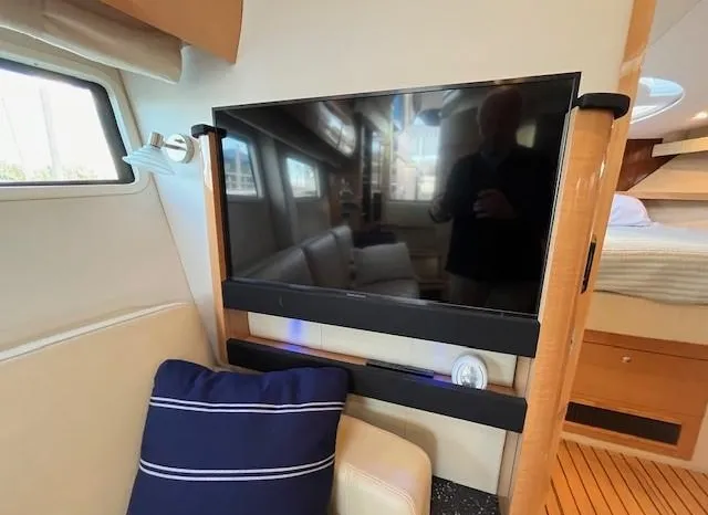 Freshwater / Great Lakes boat since new this vessel features Twin Volvo Penta VIPS 550G 8.1 Liter 496 CID Engines (477 HP each) with only 588 original hours and IPS-C Drives! Docking is a Breeze, thanks to the Volvo Penta Electronic Controls & the EVC Joystick. Notable features include but are not limited to the following: Air-Conditioning & Heat (3-Units) (2) Heads (Vacuflush) w/Vanity/Sink/Stall Showers, Halogen Lights Throughout Vessel, Central Vacuum System, Kohler 7.3kw Generator (330 hours), Windlass Anchor w/Lewmar Polished Stainless Anchor, Bow Thruster, Complete Electronics Package (Raymarine Hybrid Touchscreen Radar/ GPS / Charplotter, Raymarine ST70 Autopilot, Raymarine Speed Log and Depth Sounder, Raymarine Ray240 VHF Marine Radio, Danforth Compass, and Volvo Penta Engine Monitor and Multi-Function Display), Flir Marine Thermal Night Vision Camera, Professionally Installed Fusion Bluetooth Stereo System w/Fusion Head & 2 Control Heads w/JL Speakers, (4) NEW LCD-Flat Screen Televisions, Massive Power Sunroof, Large Refrigerator/Freezer in Salon, Smaller Refrigerators with Drawers in Cockpit, Convenient On-Board Grill in Cockpit, Rear-Facing Cockpit Seat, Underwater Lighting, and MUCH more!