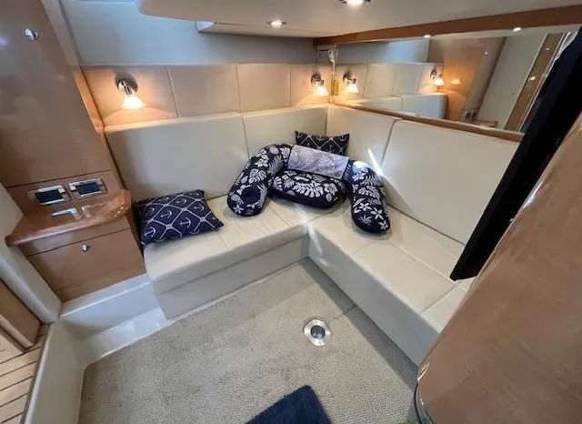 Freshwater / Great Lakes boat since new this vessel features Twin Volvo Penta VIPS 550G 8.1 Liter 496 CID Engines (477 HP each) with only 588 original hours and IPS-C Drives! Docking is a Breeze, thanks to the Volvo Penta Electronic Controls & the EVC Joystick. Notable features include but are not limited to the following: Air-Conditioning & Heat (3-Units) (2) Heads (Vacuflush) w/Vanity/Sink/Stall Showers, Halogen Lights Throughout Vessel, Central Vacuum System, Kohler 7.3kw Generator (330 hours), Windlass Anchor w/Lewmar Polished Stainless Anchor, Bow Thruster, Complete Electronics Package (Raymarine Hybrid Touchscreen Radar/ GPS / Charplotter, Raymarine ST70 Autopilot, Raymarine Speed Log and Depth Sounder, Raymarine Ray240 VHF Marine Radio, Danforth Compass, and Volvo Penta Engine Monitor and Multi-Function Display), Flir Marine Thermal Night Vision Camera, Professionally Installed Fusion Bluetooth Stereo System w/Fusion Head & 2 Control Heads w/JL Speakers, (4) NEW LCD-Flat Screen Televisions, Massive Power Sunroof, Large Refrigerator/Freezer in Salon, Smaller Refrigerators with Drawers in Cockpit, Convenient On-Board Grill in Cockpit, Rear-Facing Cockpit Seat, Underwater Lighting, and MUCH more!