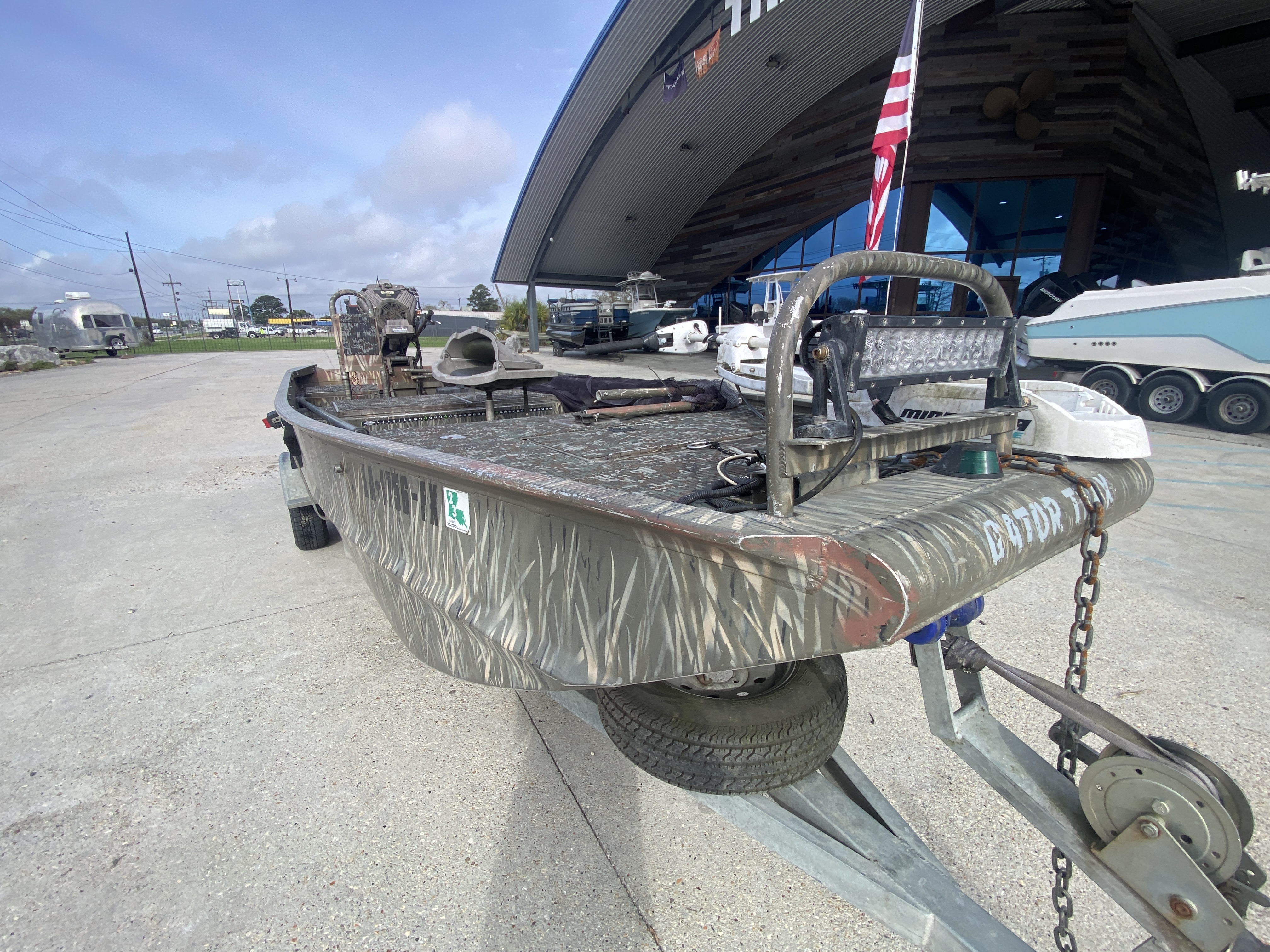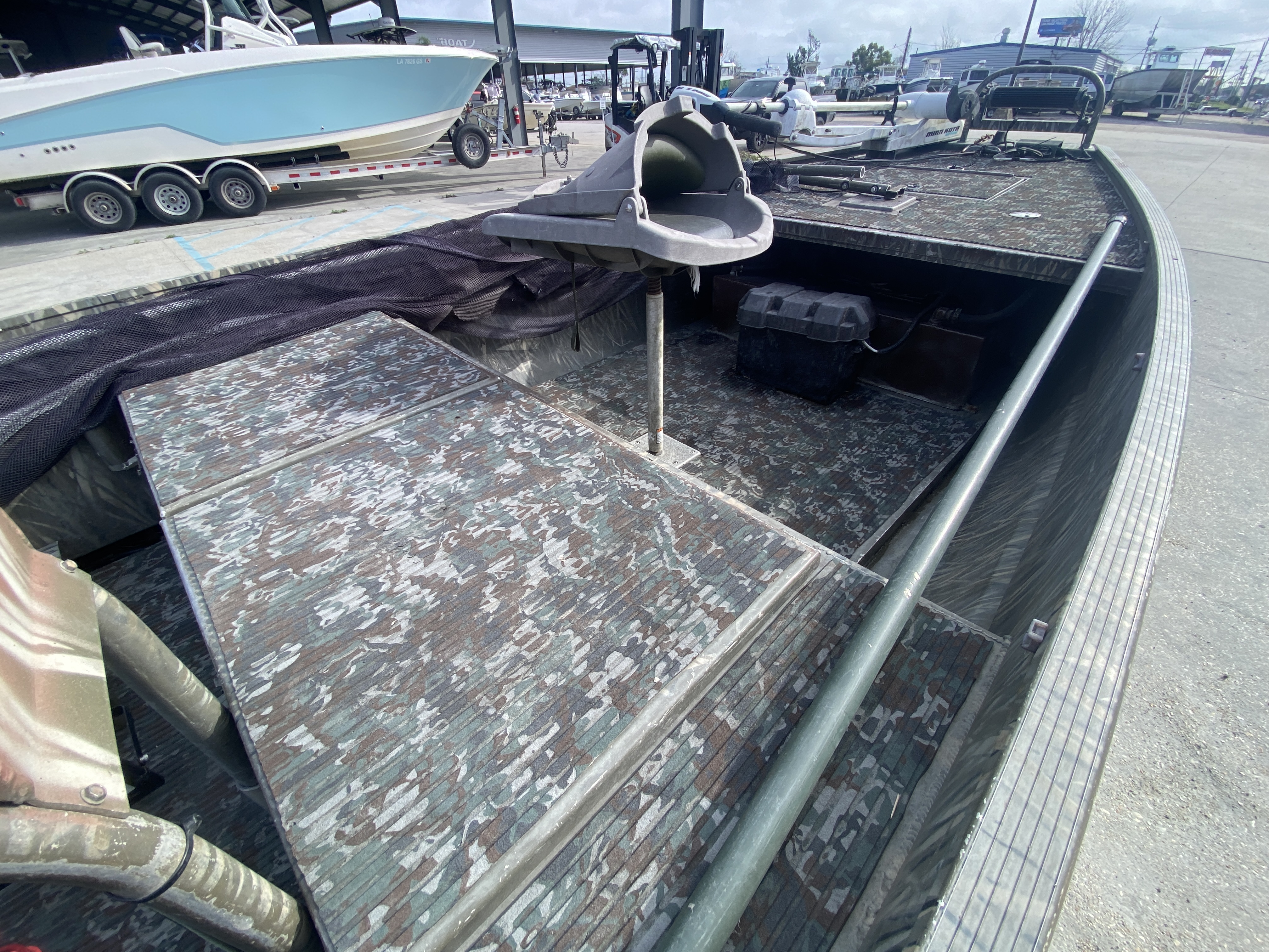 Great setup for duck hunting, bowfishing, or running shallow marsh and ponds. Gator Trax boats have a reputation for being some of the toughest aluminum hulls out there.