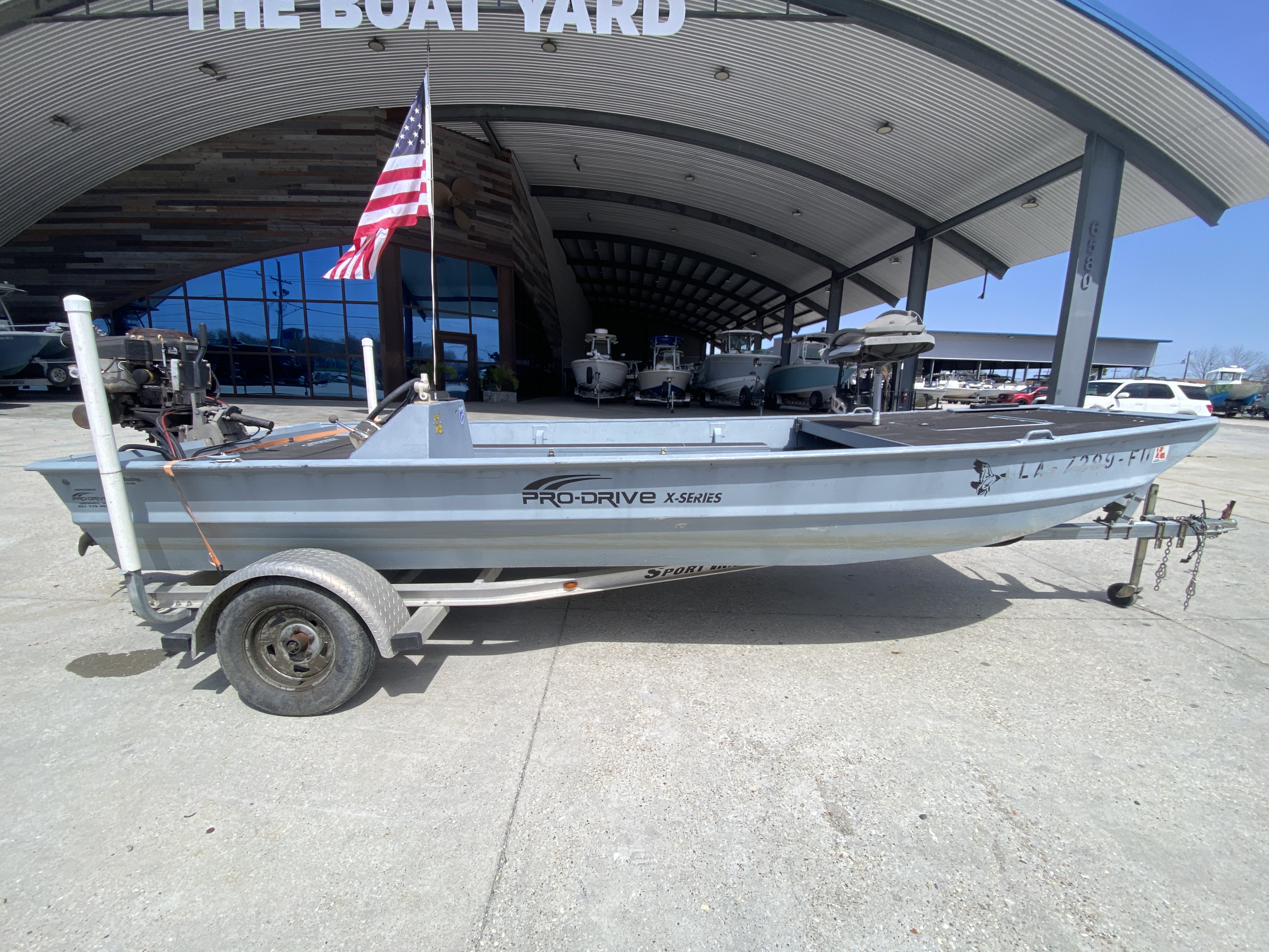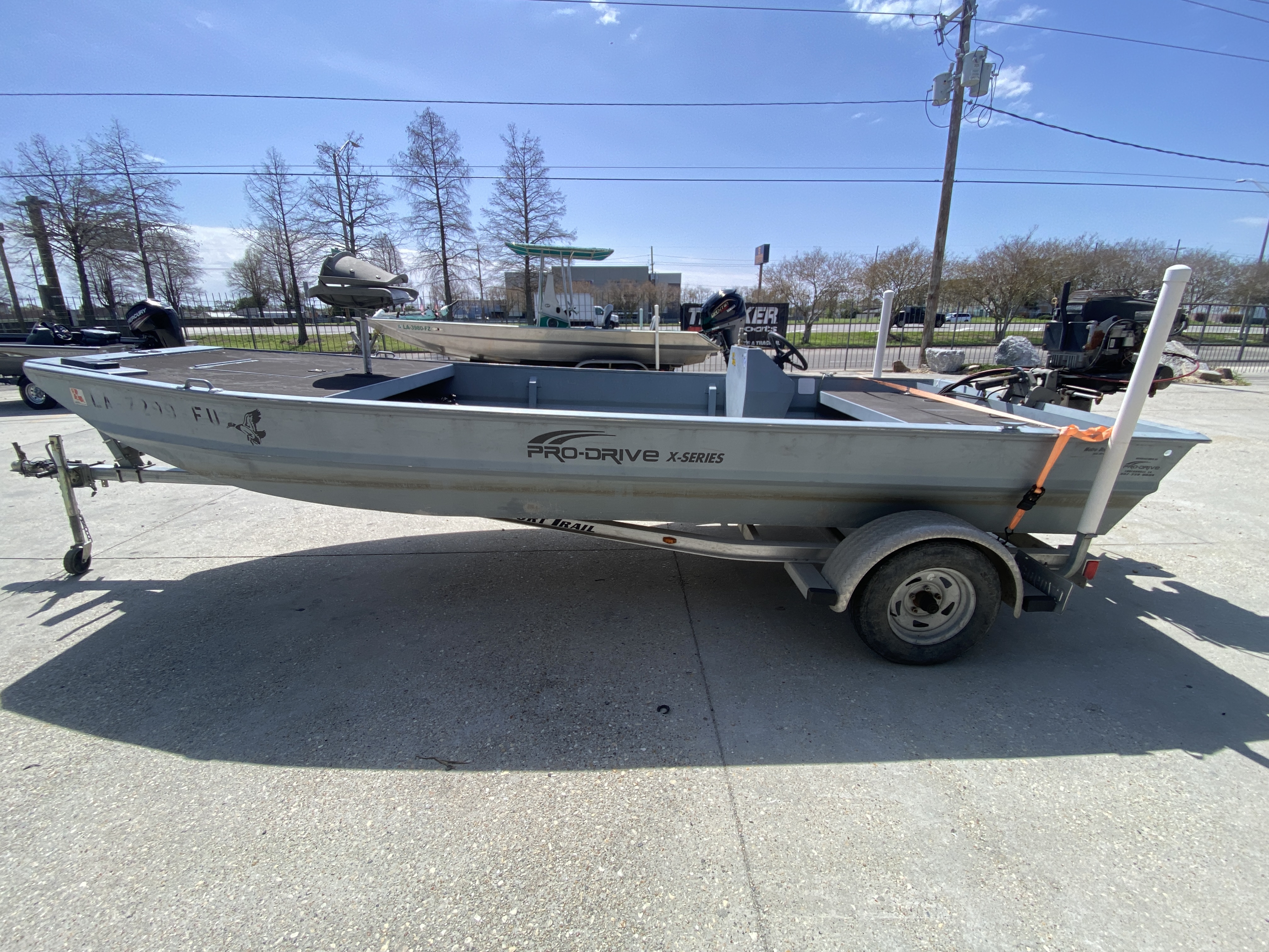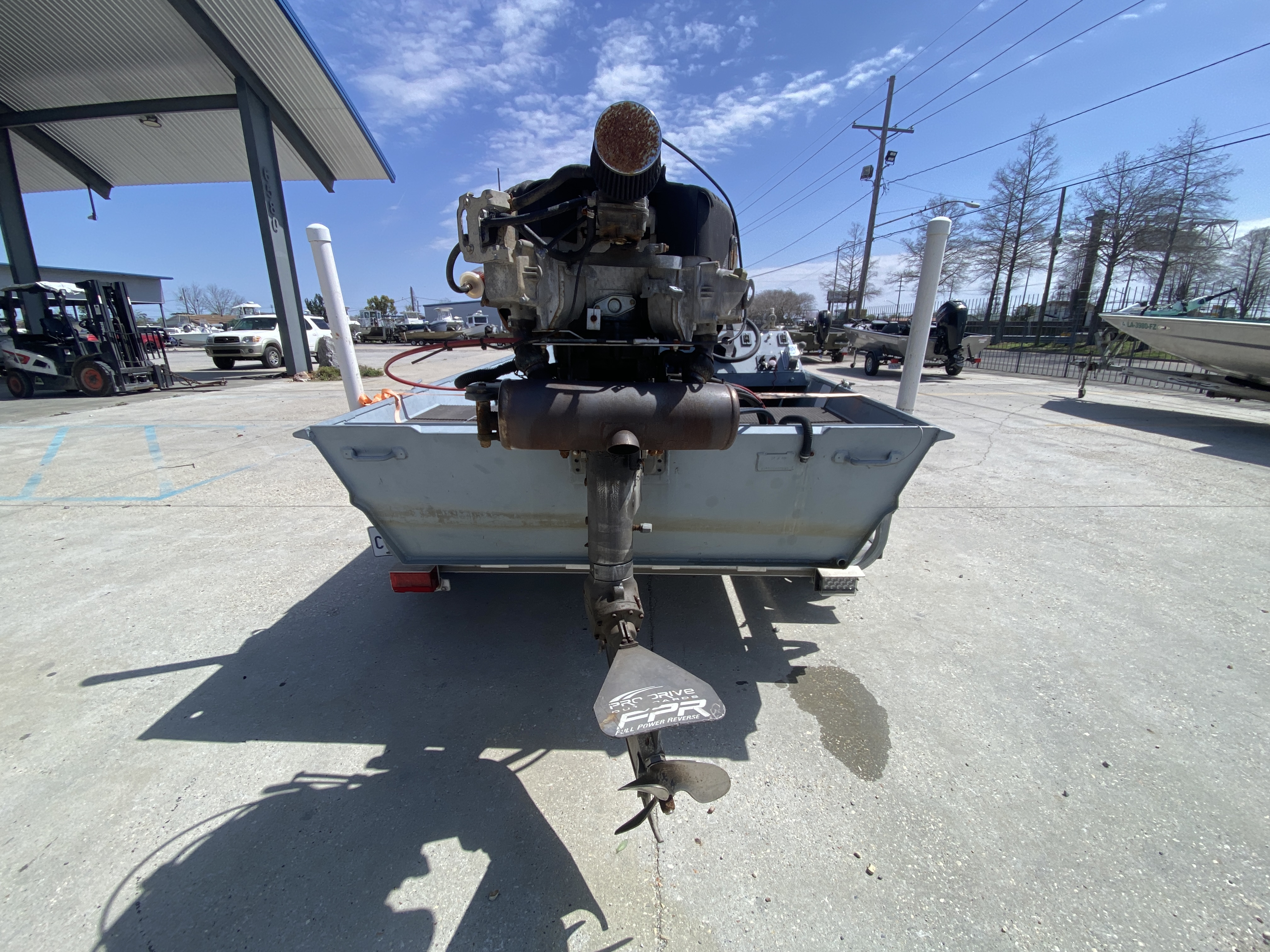 This 2009 17x60 Pro-Drive hull is a solid mud boat setup that’s ready for the marsh, shallow water, and duck hunting. Tough aluminum hull paired with a dependable surface drive motor makes it a great rig for running shallow areas where other boats can’t go.