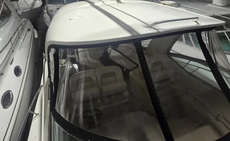 Freshwater/Great Lakes boat since new. This vessel features Twin 8.1-litre 370-hp MerCruiser Horizon Gas Engines with only 390 original hours. Notable features include but are not limited to the following: Air-Conditioning & Heat, Head (Vacuflush) w/Vanity/Sink/Shower, Hardwood flooring in cabin, Electronics Package (VHF Marine Radio, GPS/Chartplotter, MerCrusier SmartCraft, etc.), Kohler Generator, Cockpit Wet Bar w/Sink/Refrigerator, Windlass Anchor, Hardtop w/ Canvas Camper Top, Premium Sound System in cockpit, and MUCH more!