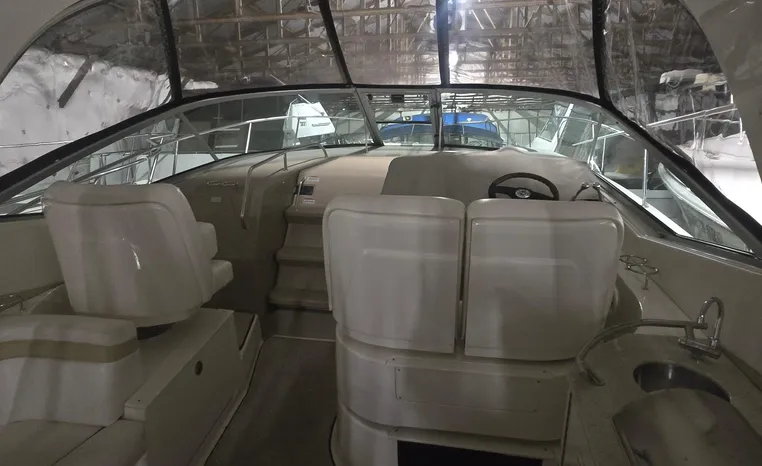 Freshwater/Great Lakes boat since new. This vessel features Twin 8.1-litre 370-hp MerCruiser Horizon Gas Engines with only 390 original hours. Notable features include but are not limited to the following: Air-Conditioning & Heat, Head (Vacuflush) w/Vanity/Sink/Shower, Hardwood flooring in cabin, Electronics Package (VHF Marine Radio, GPS/Chartplotter, MerCrusier SmartCraft, etc.), Kohler Generator, Cockpit Wet Bar w/Sink/Refrigerator, Windlass Anchor, Hardtop w/ Canvas Camper Top, Premium Sound System in cockpit, and MUCH more!